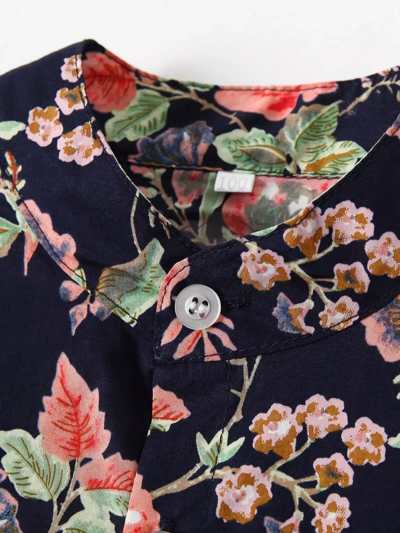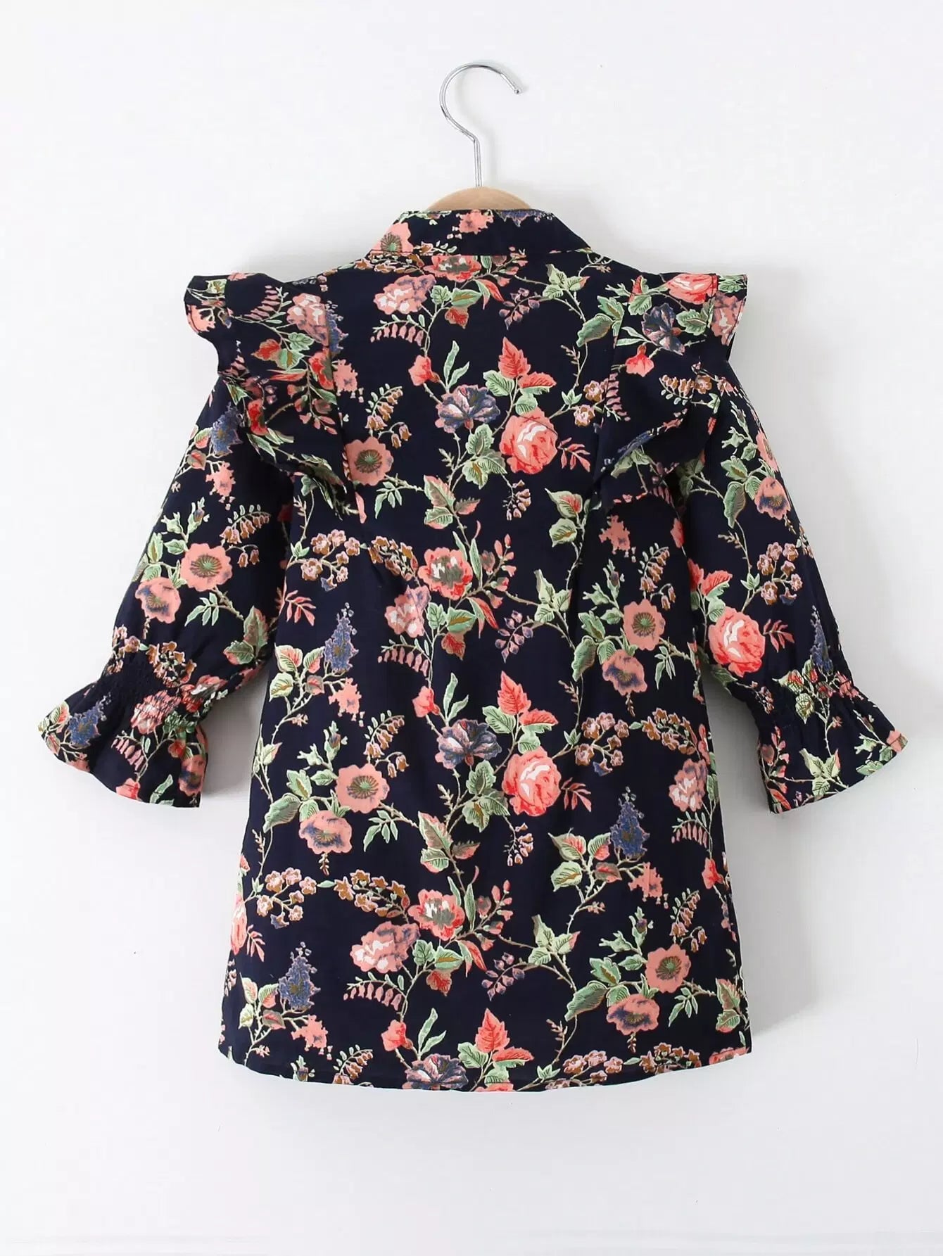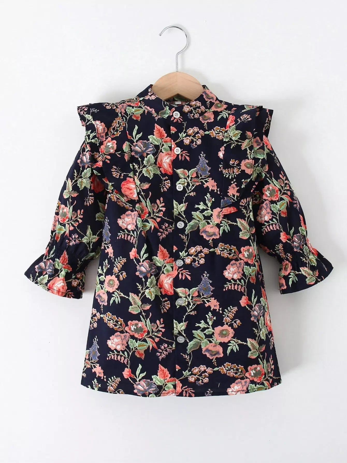 فستان بناتي صغيرات بطبعة زهور مزين بكشكش مزركش