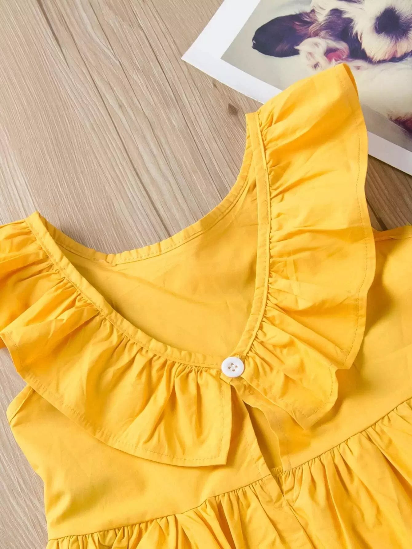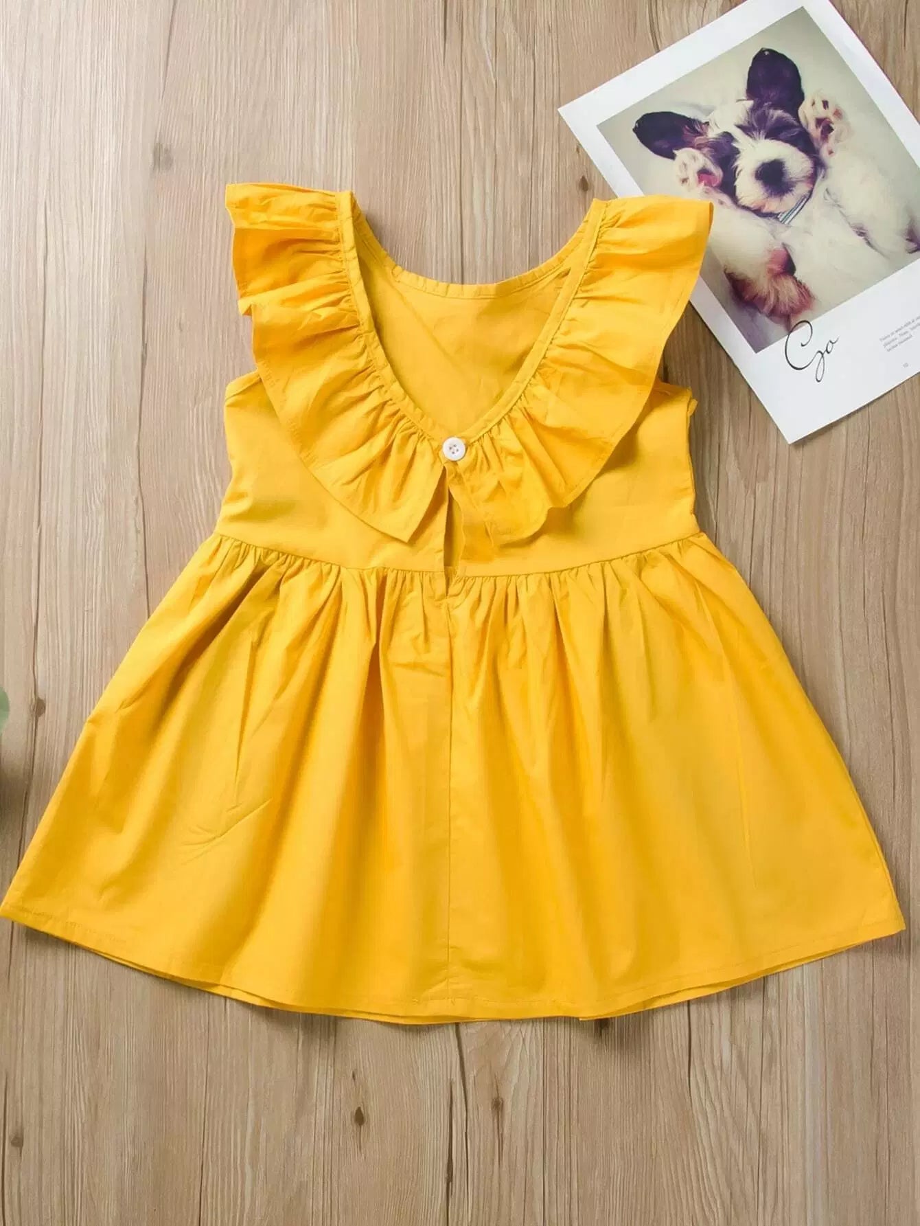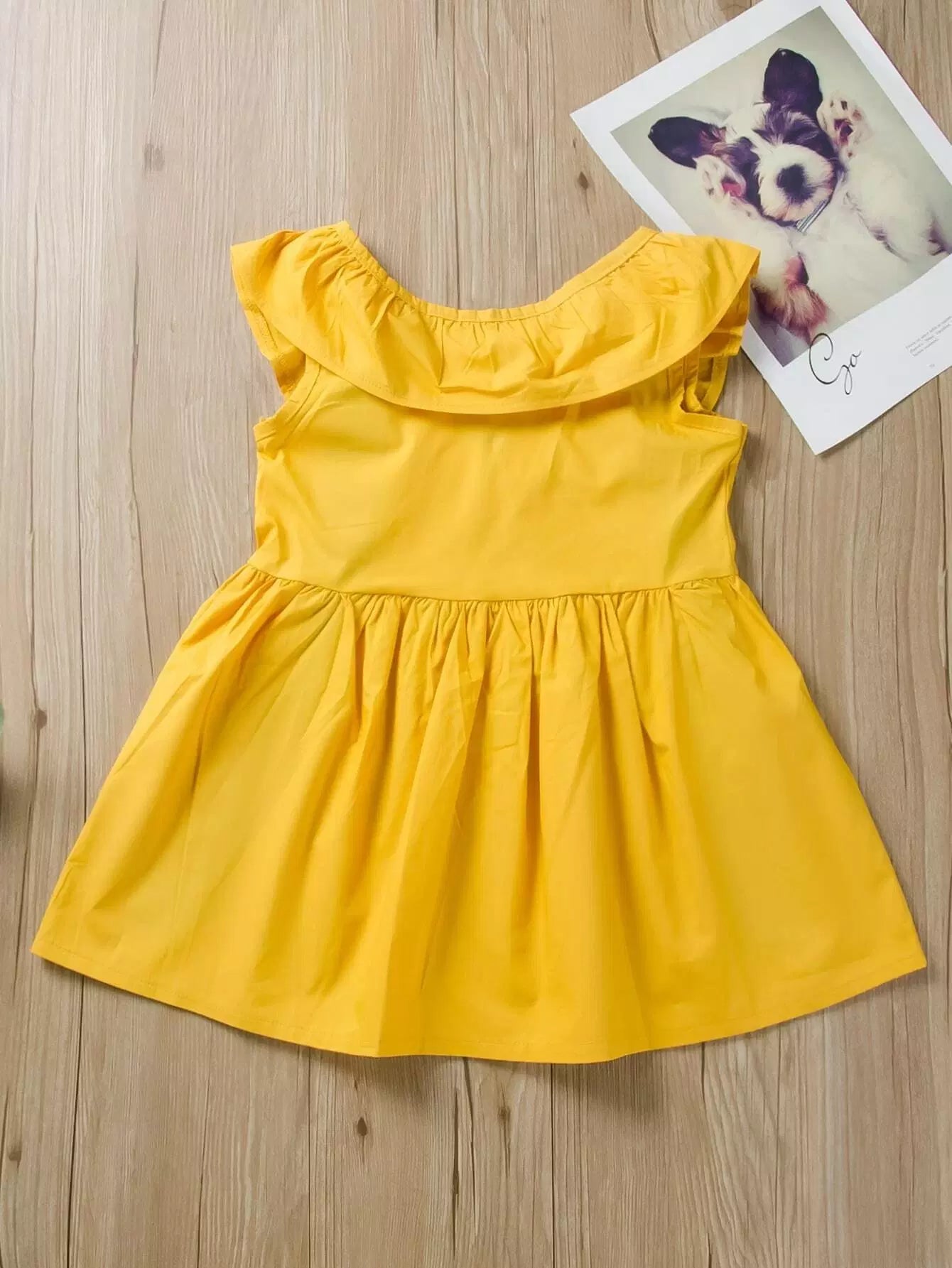 الأطفال - فستان بعقدة أمامية مكشكشة للفتيات الصغيرات
