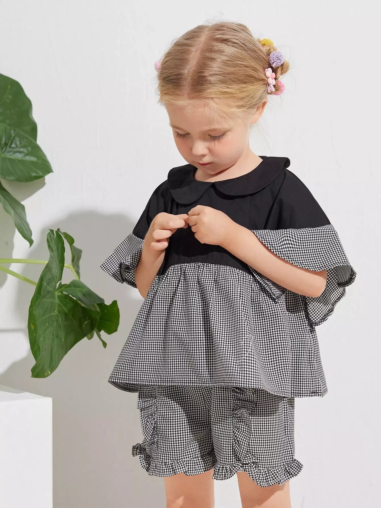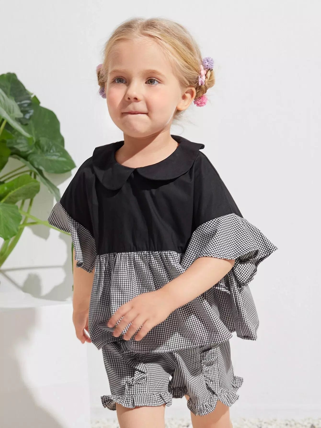 بلوزة بأكمام منفوشة بأكمام ملونة وقماش قطني بأكمام منفوشة للبنات الصغار