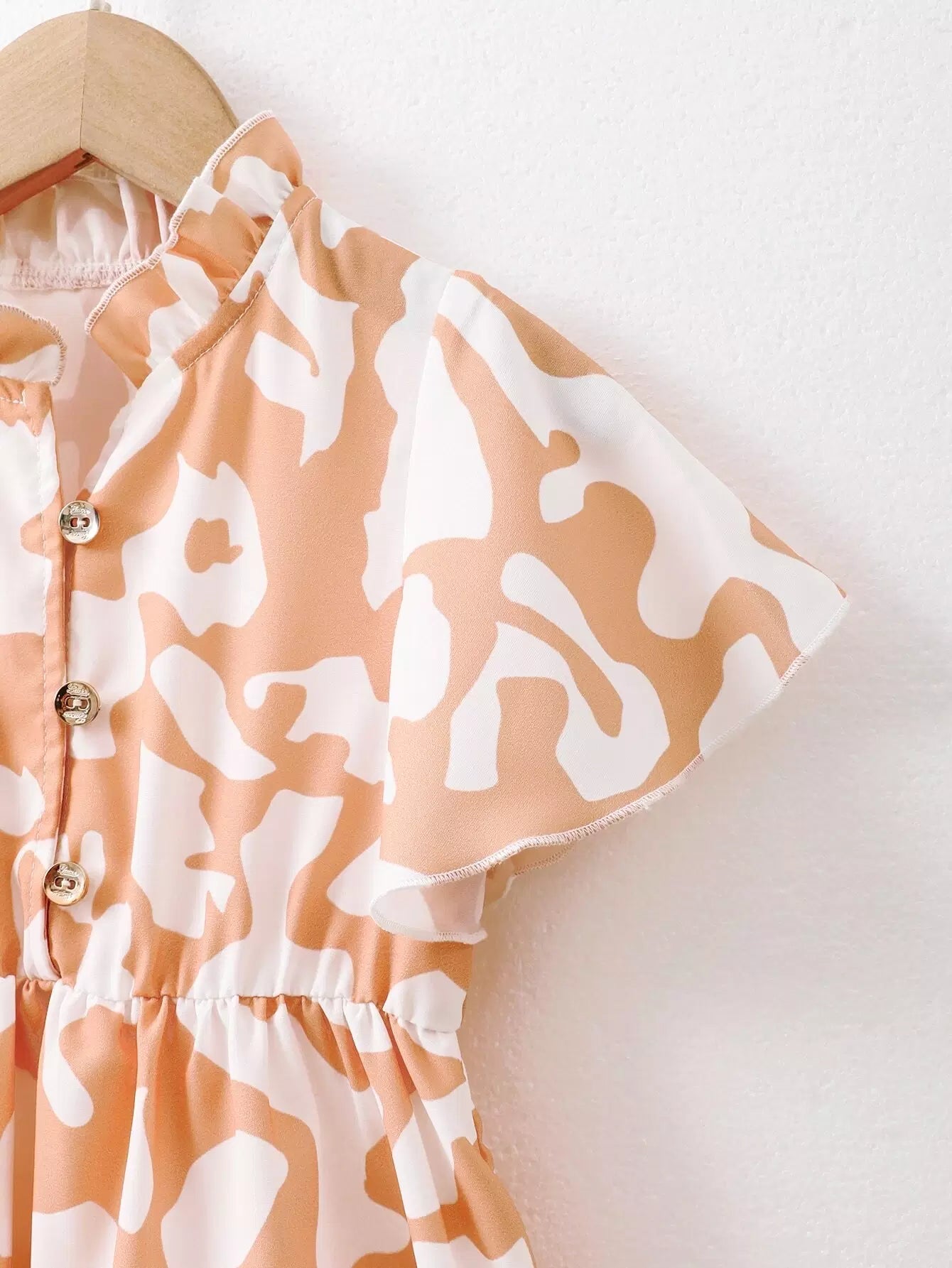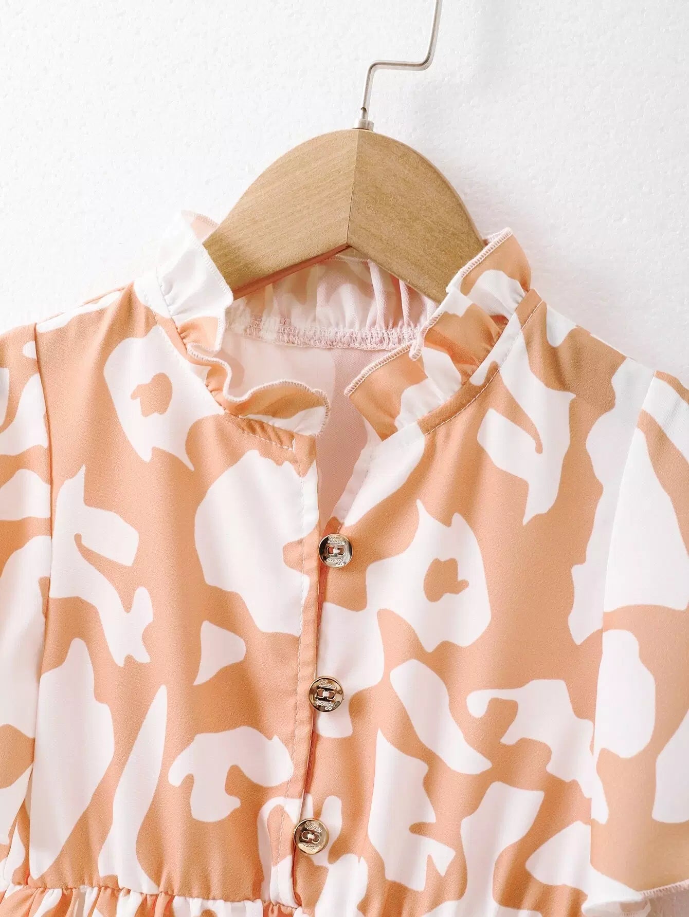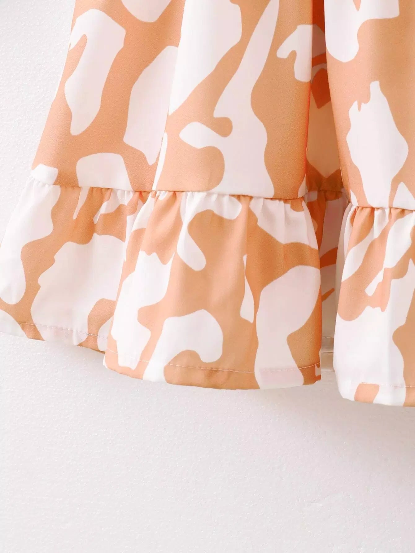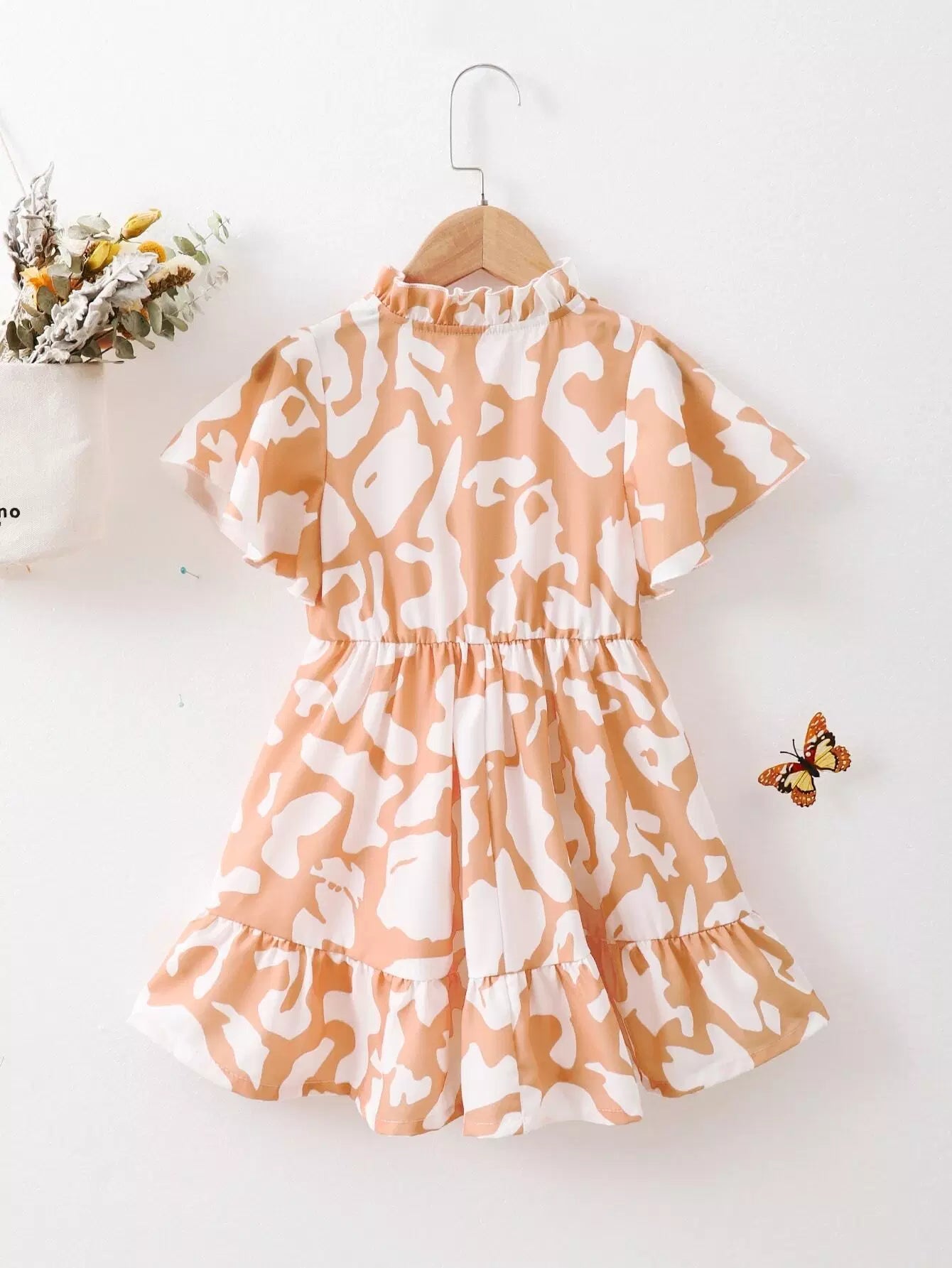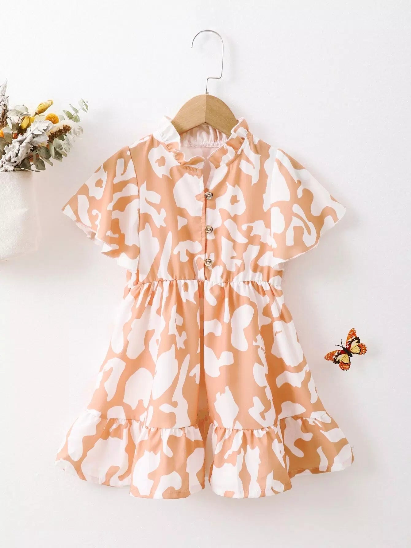 فستان بنات صغيرات بأكمام كشكش بحافة كشكش فستان قصير مكشكش
