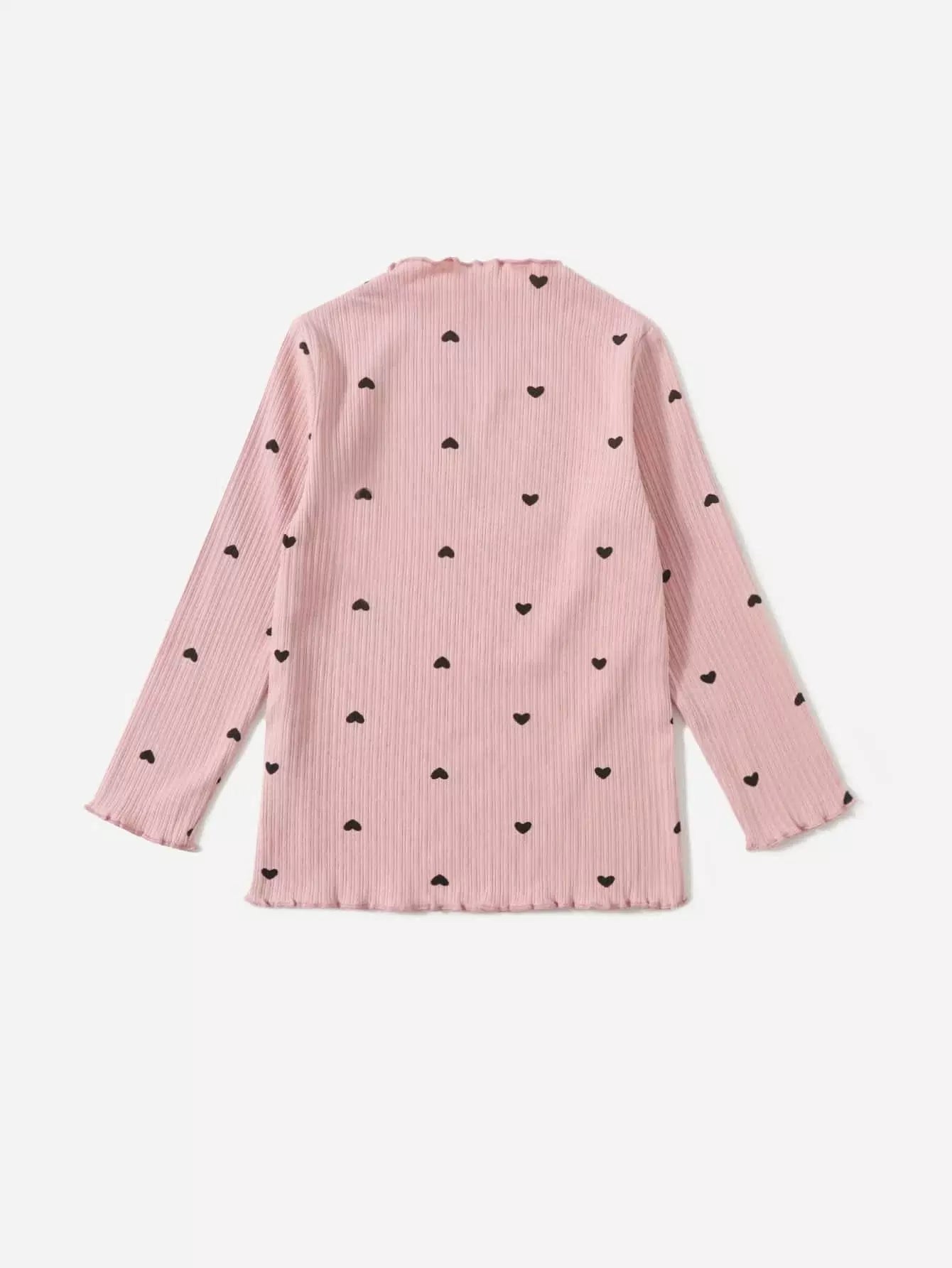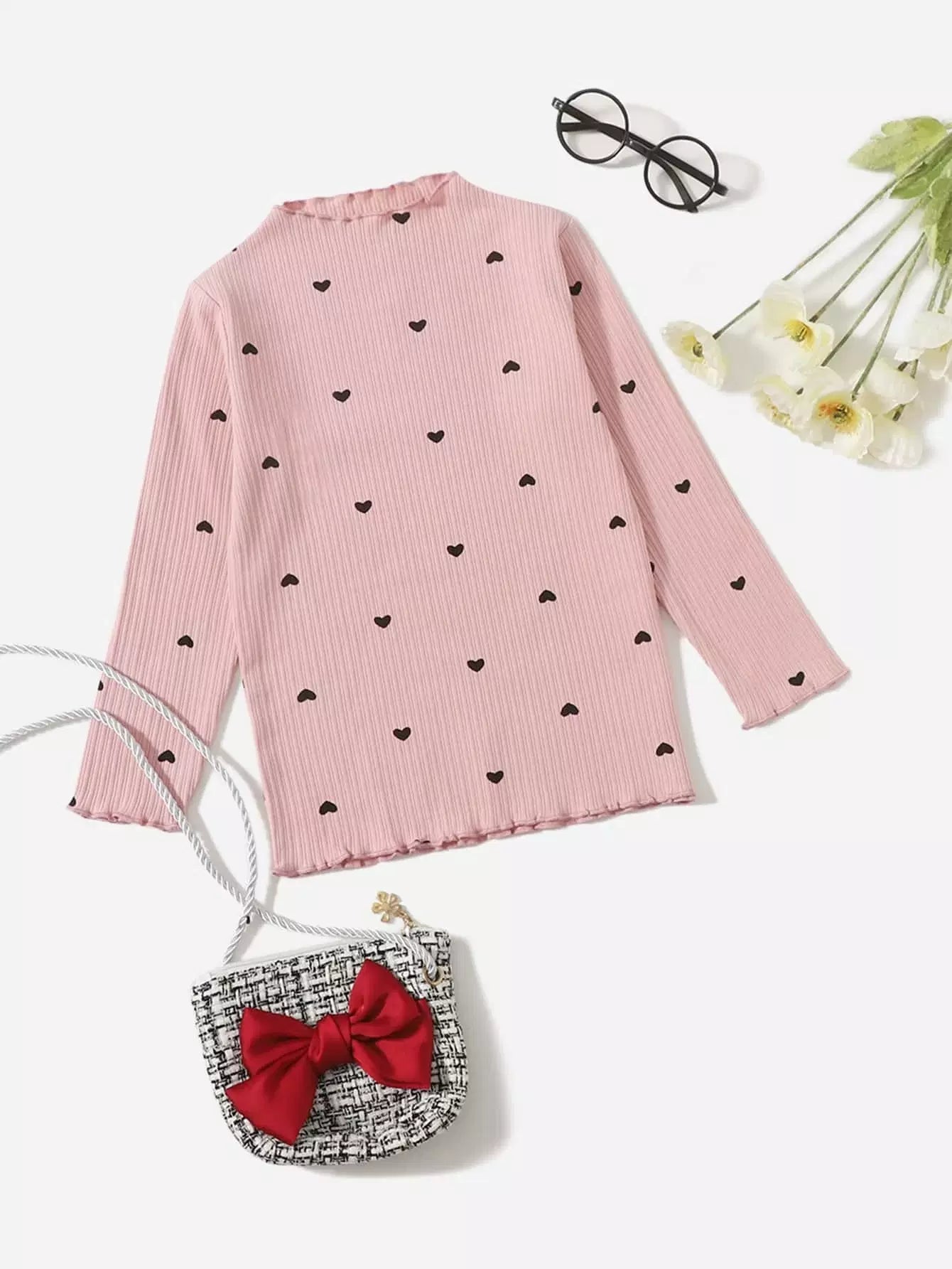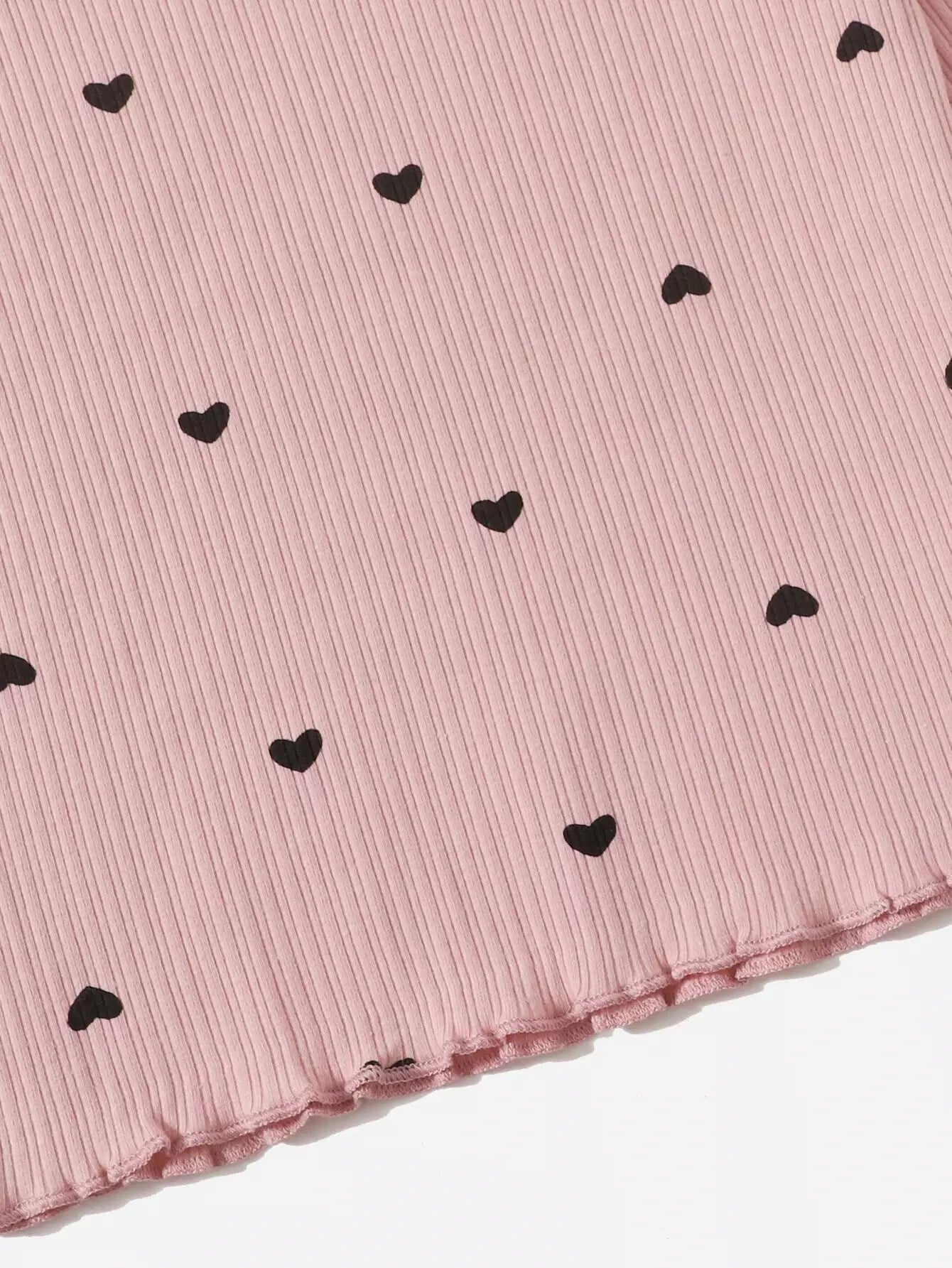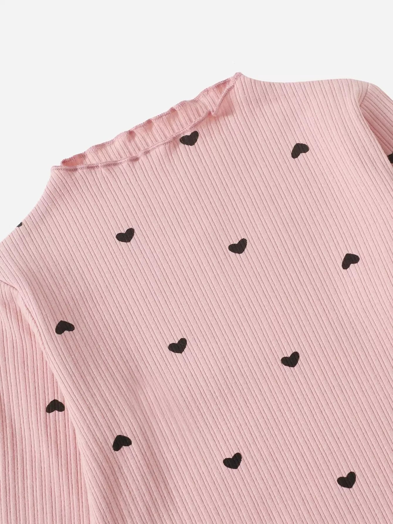 تي شيرت بحواف بطبعة قلب للبنات الصغار