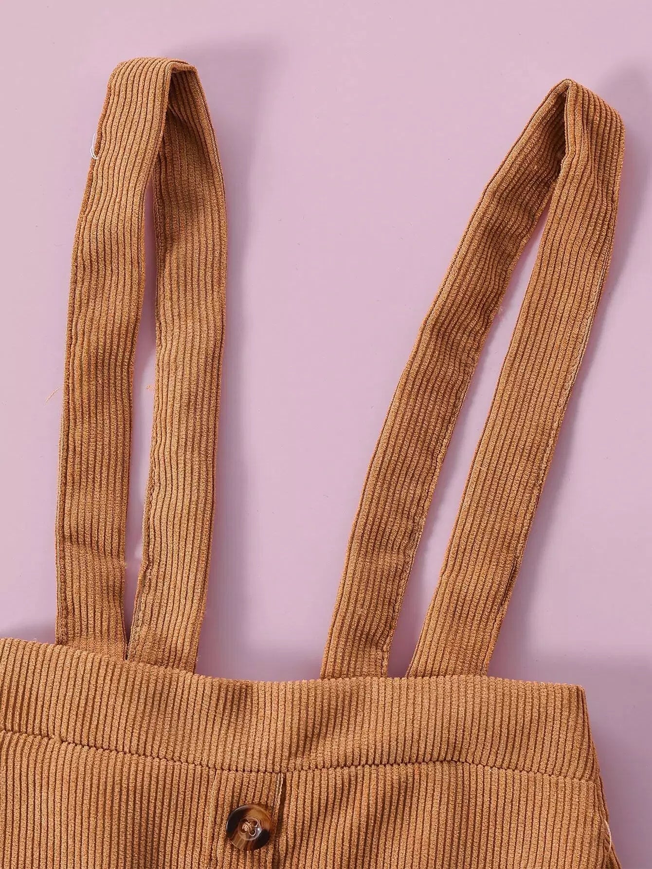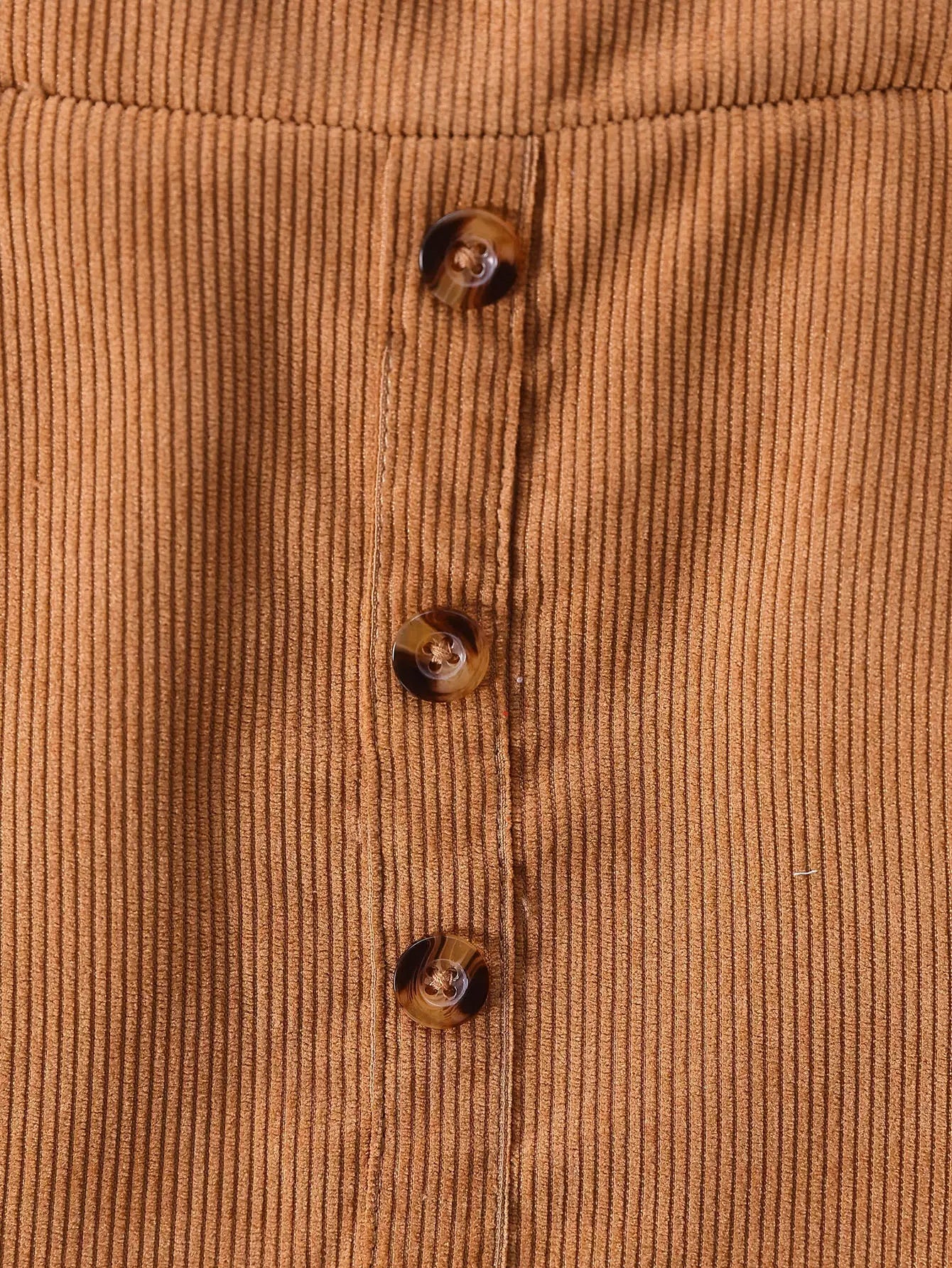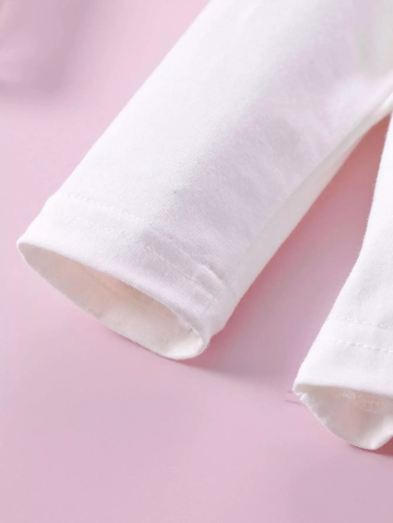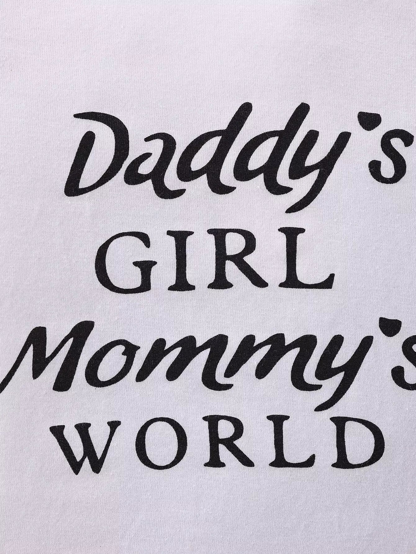 تي شيرت بحواف مكشكشة برسومات حروف للبنات الصغار وتنورة بأزرار أمامية