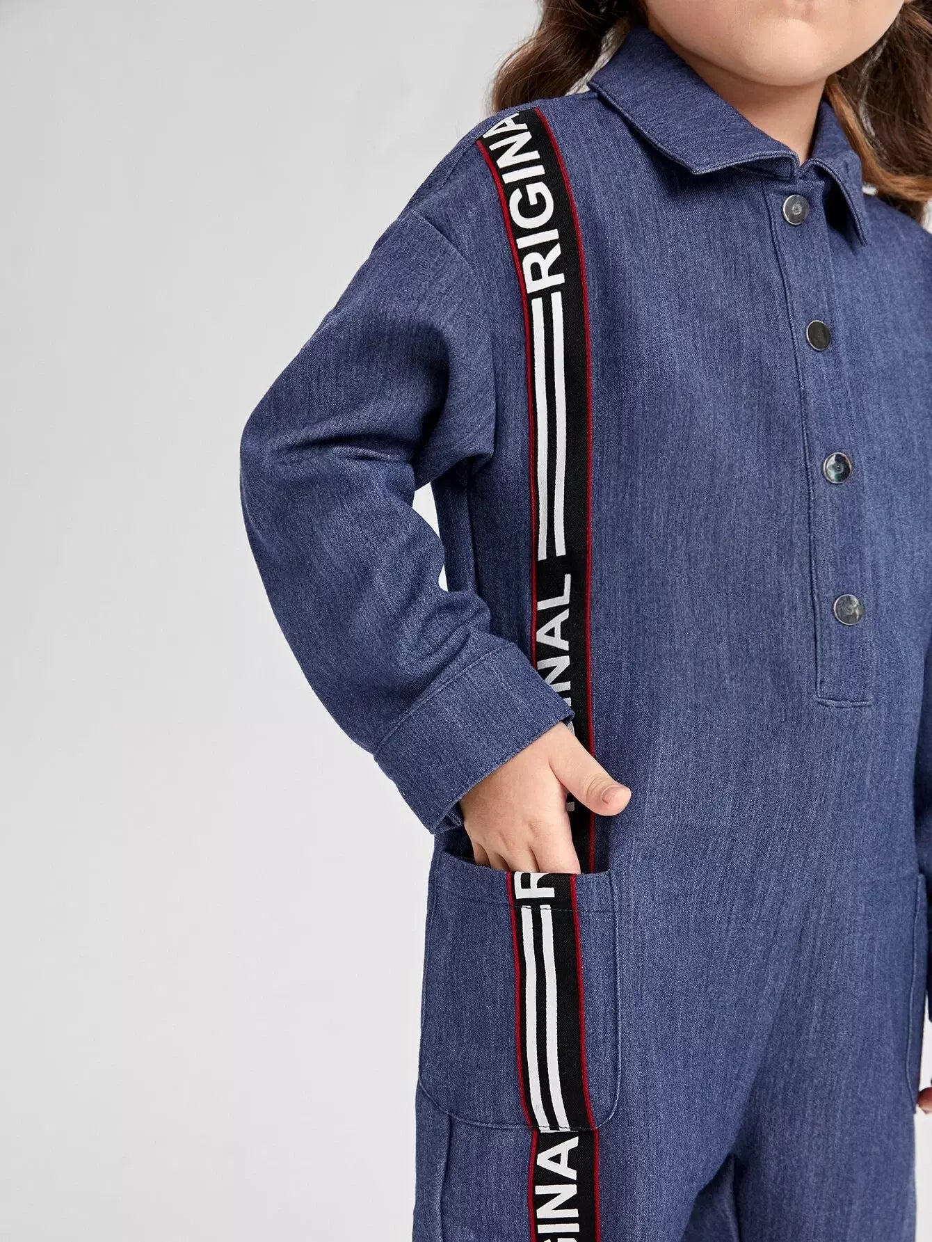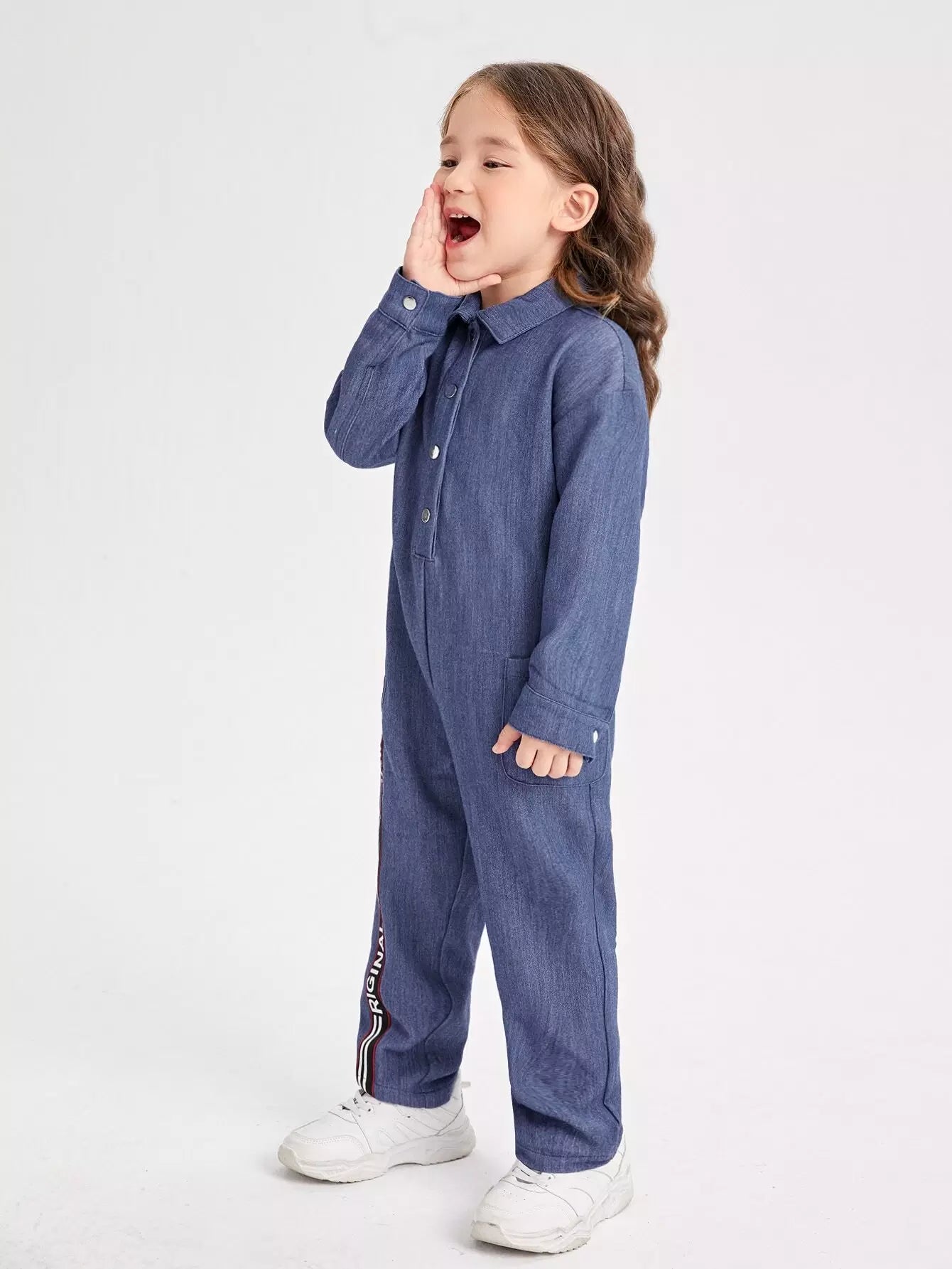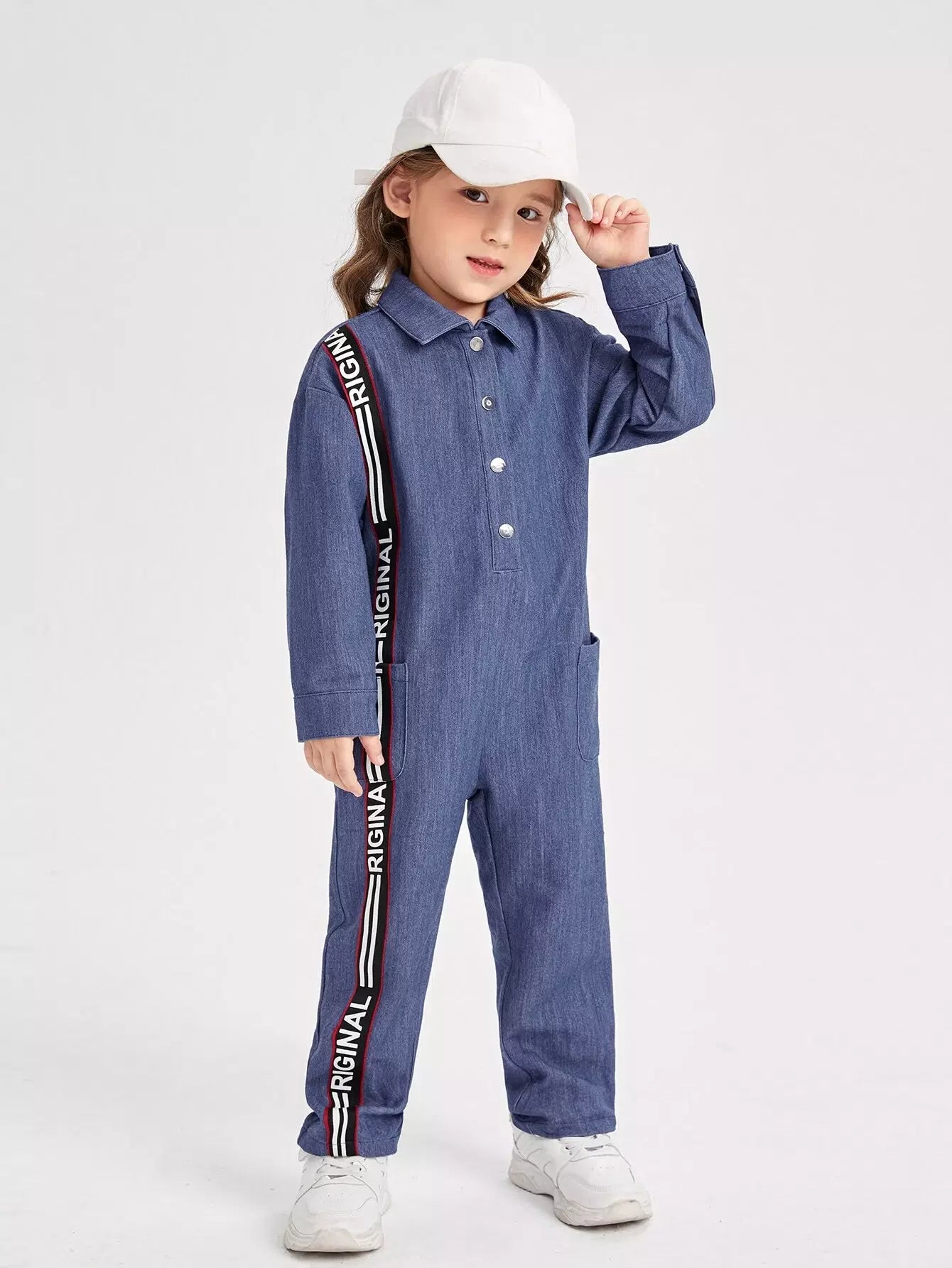 جمبسوت بنصف زر وجيب مزدوج وشريط حروف للبنات الصغار