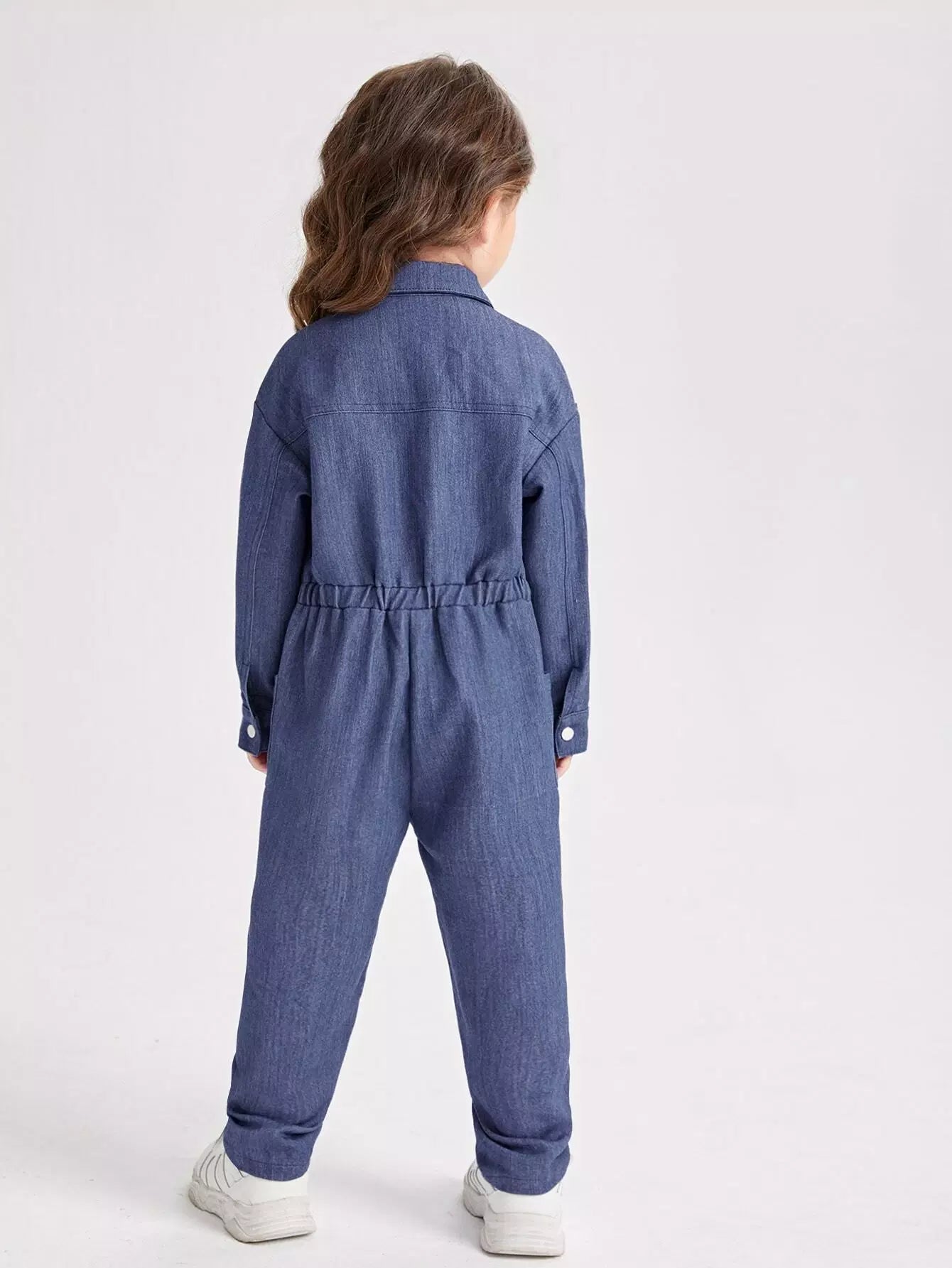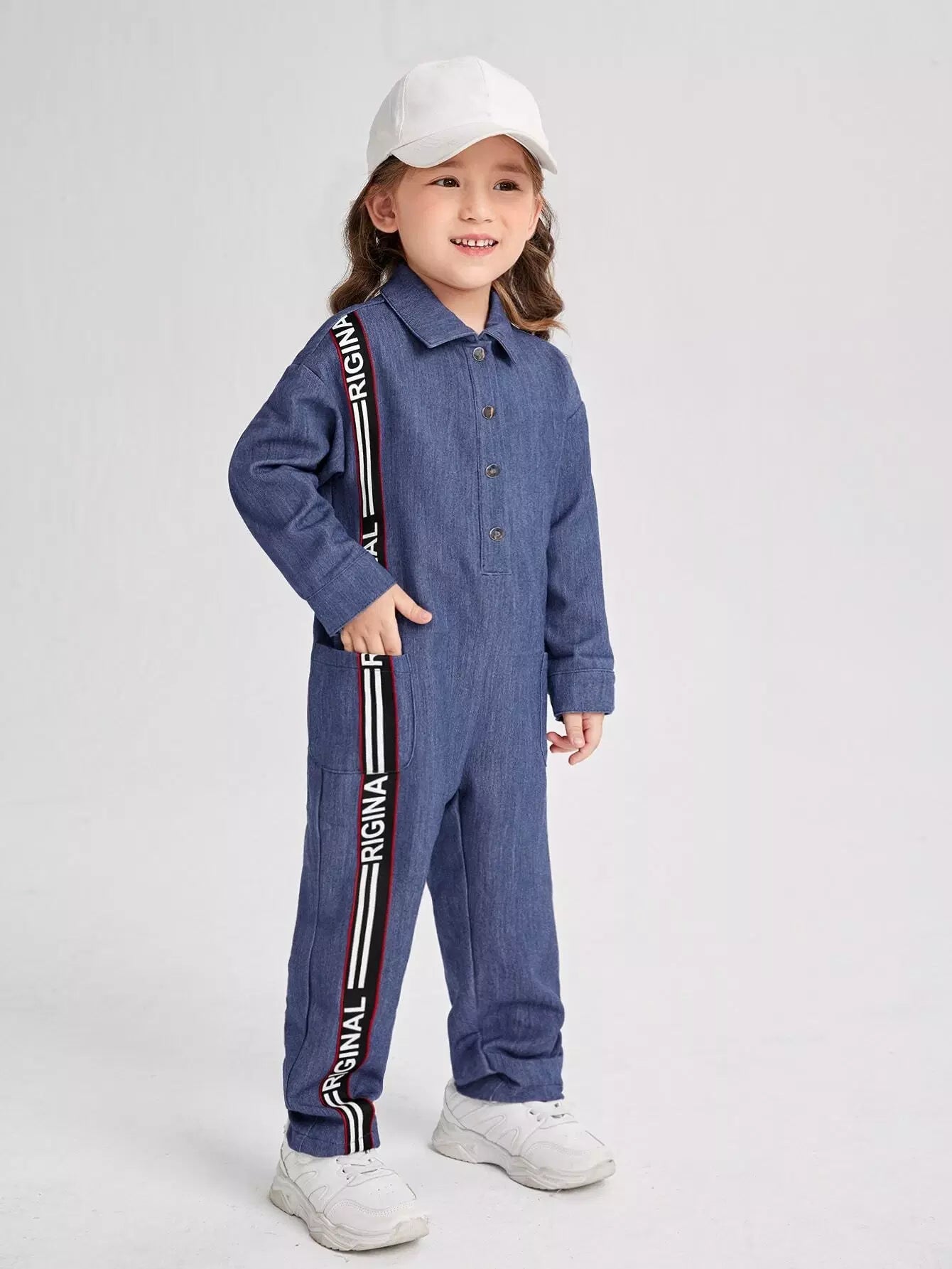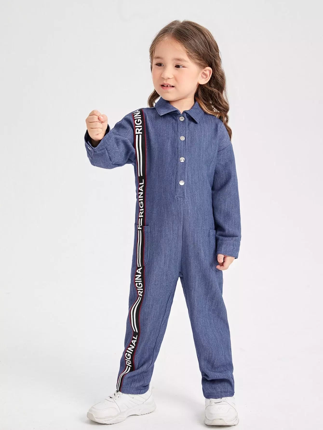 جمبسوت بنصف زر وجيب مزدوج وشريط حروف للبنات الصغار