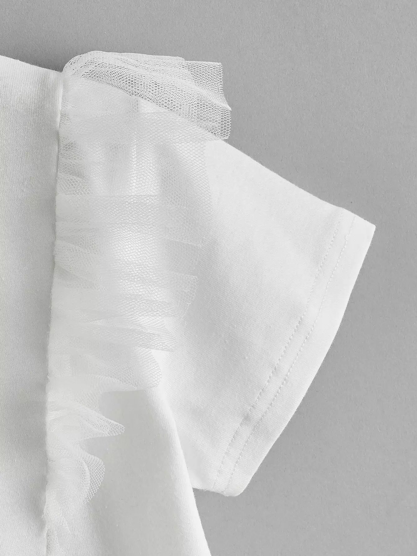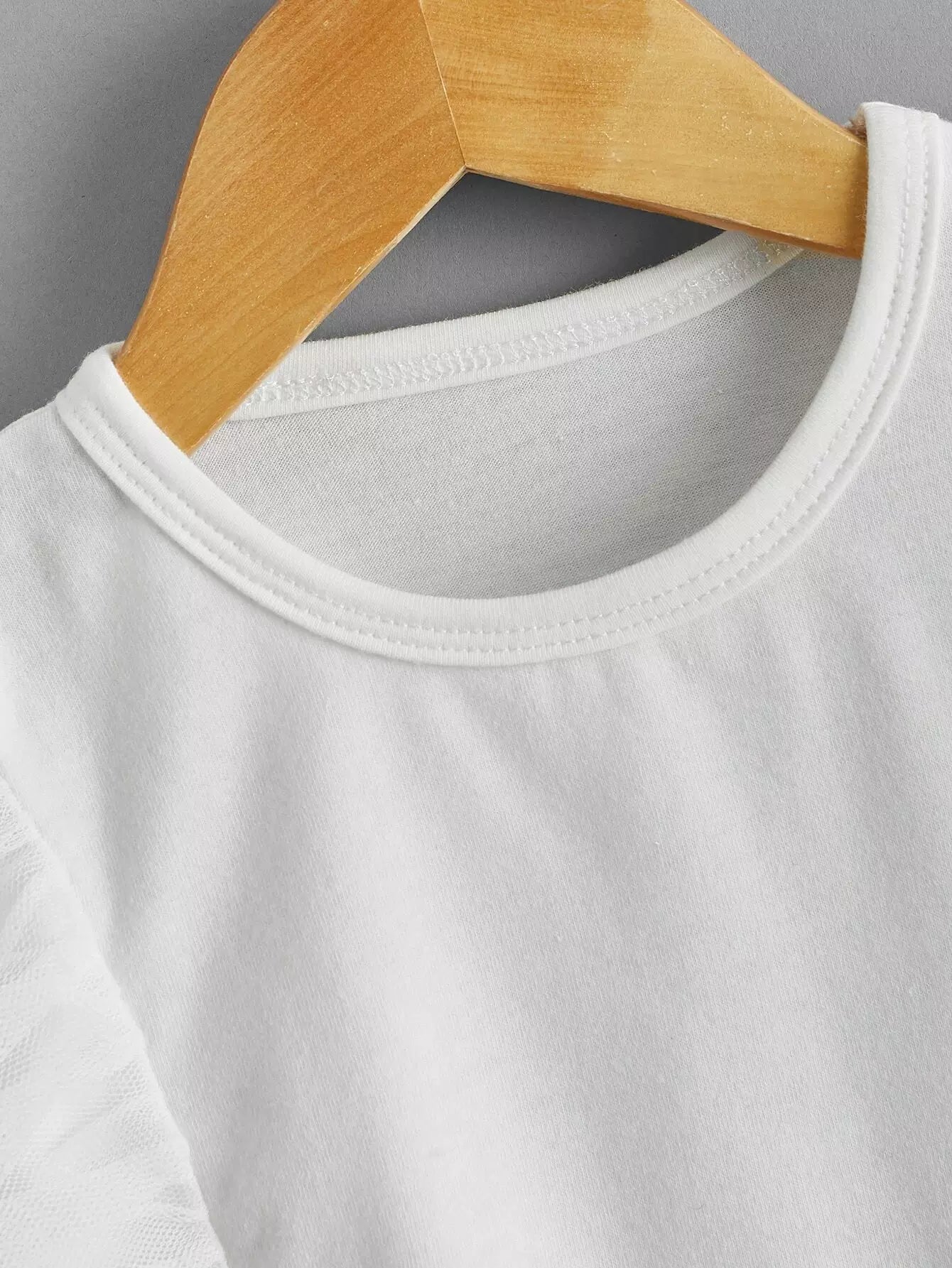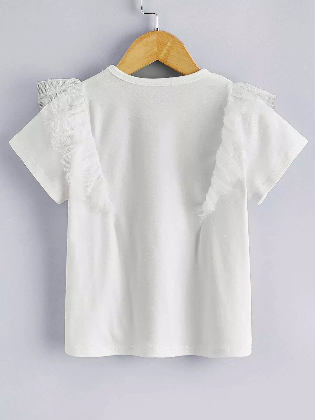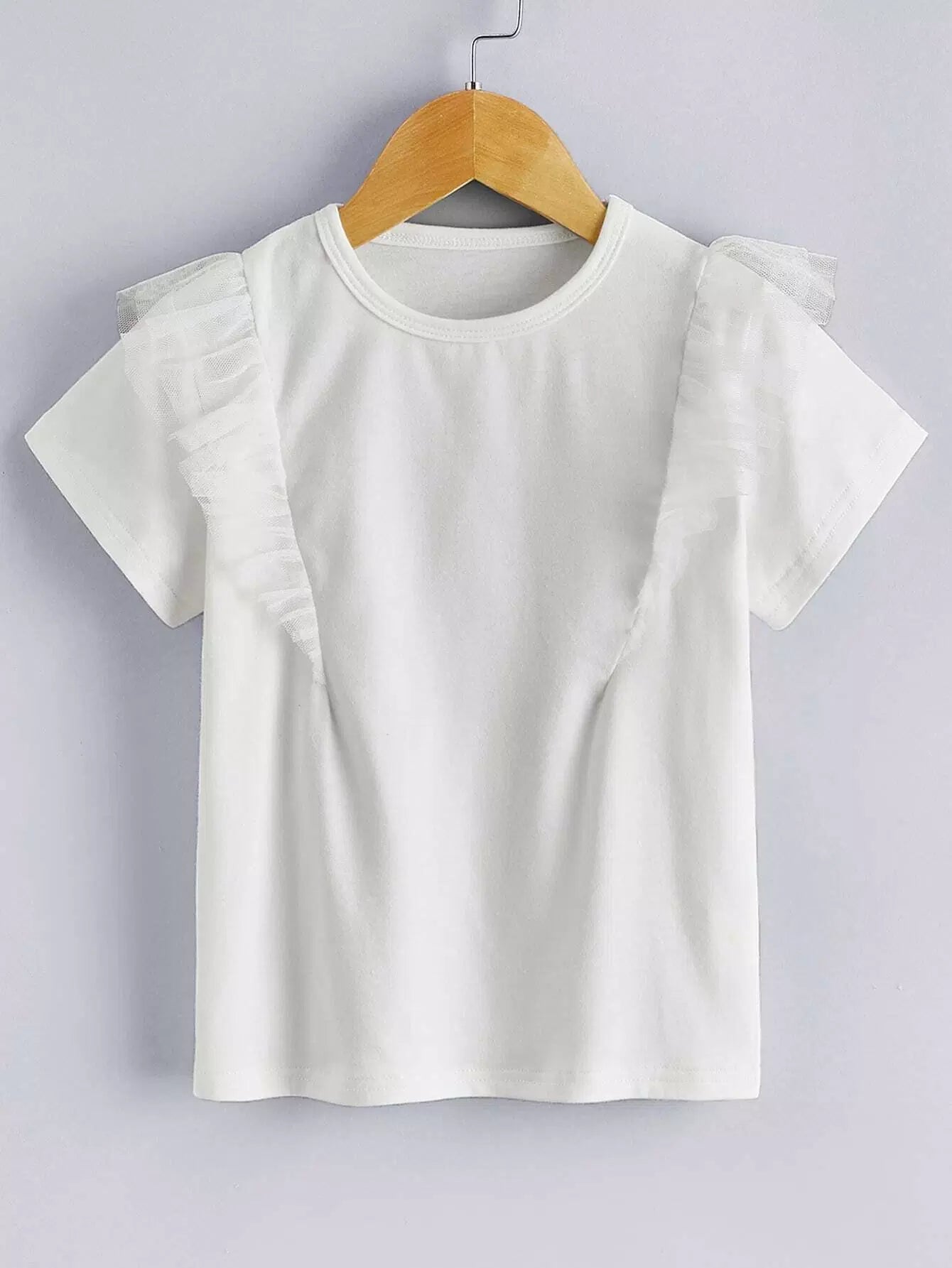 تي شيرت بحواف شبكية مكشكشة للبنات الصغار