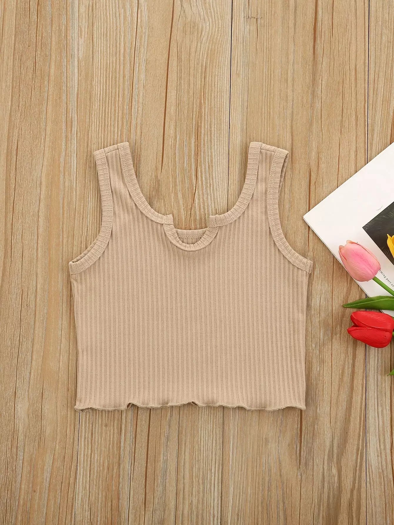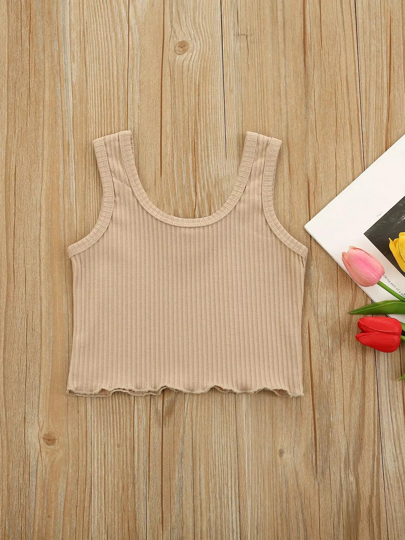 تانك بدون أكمام بحواف من الخس للبنات الصغار
