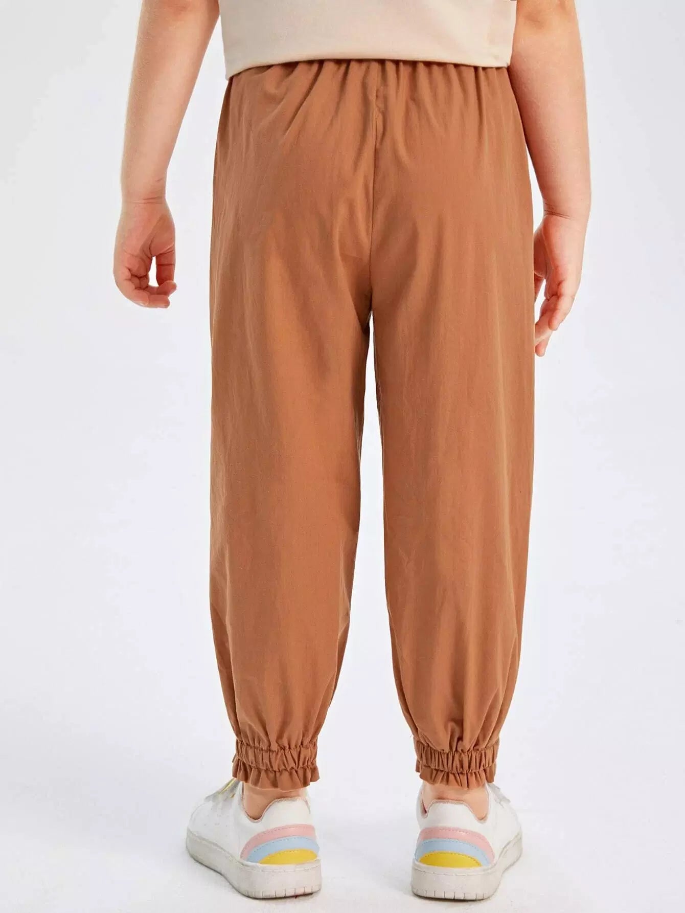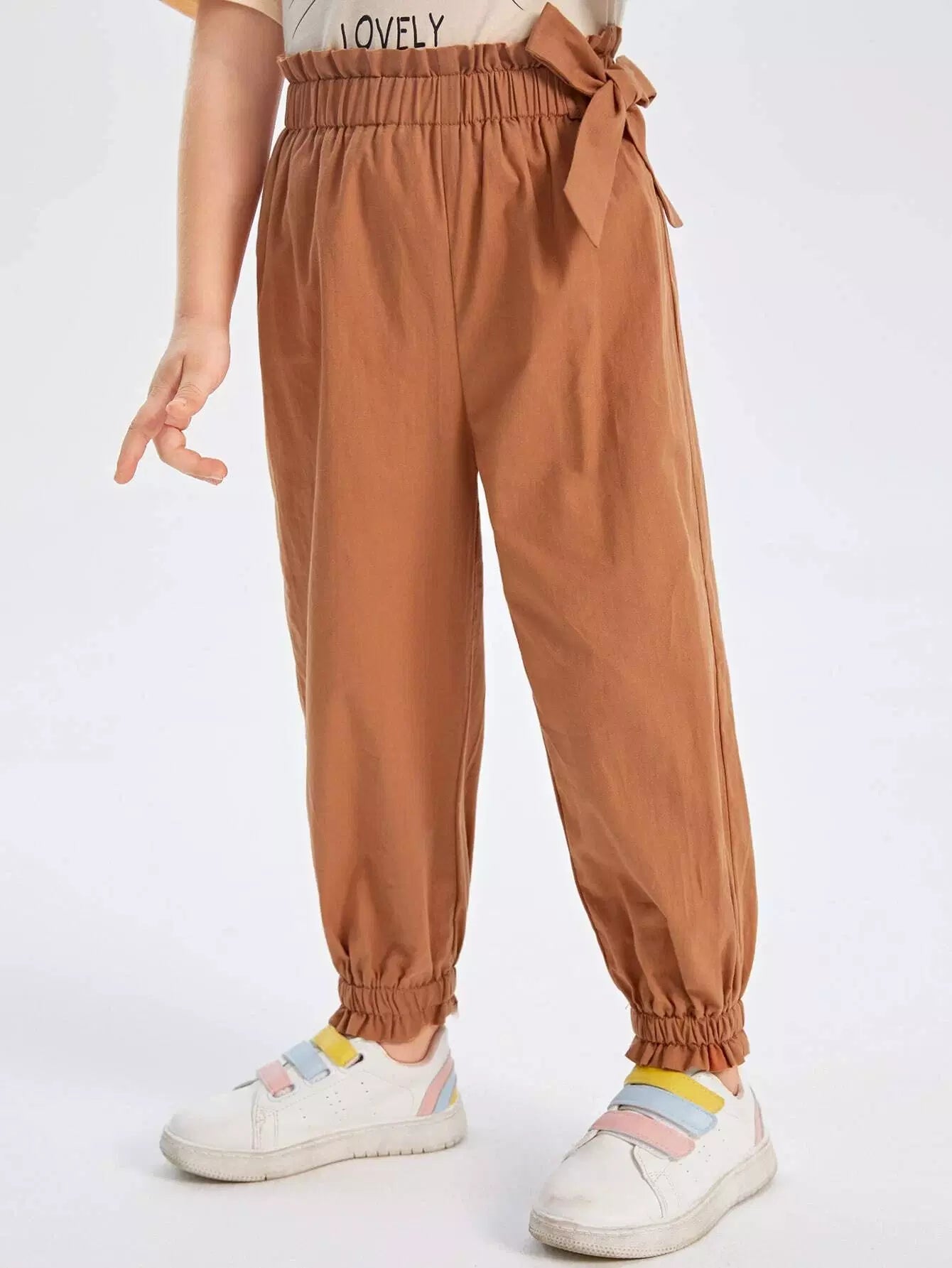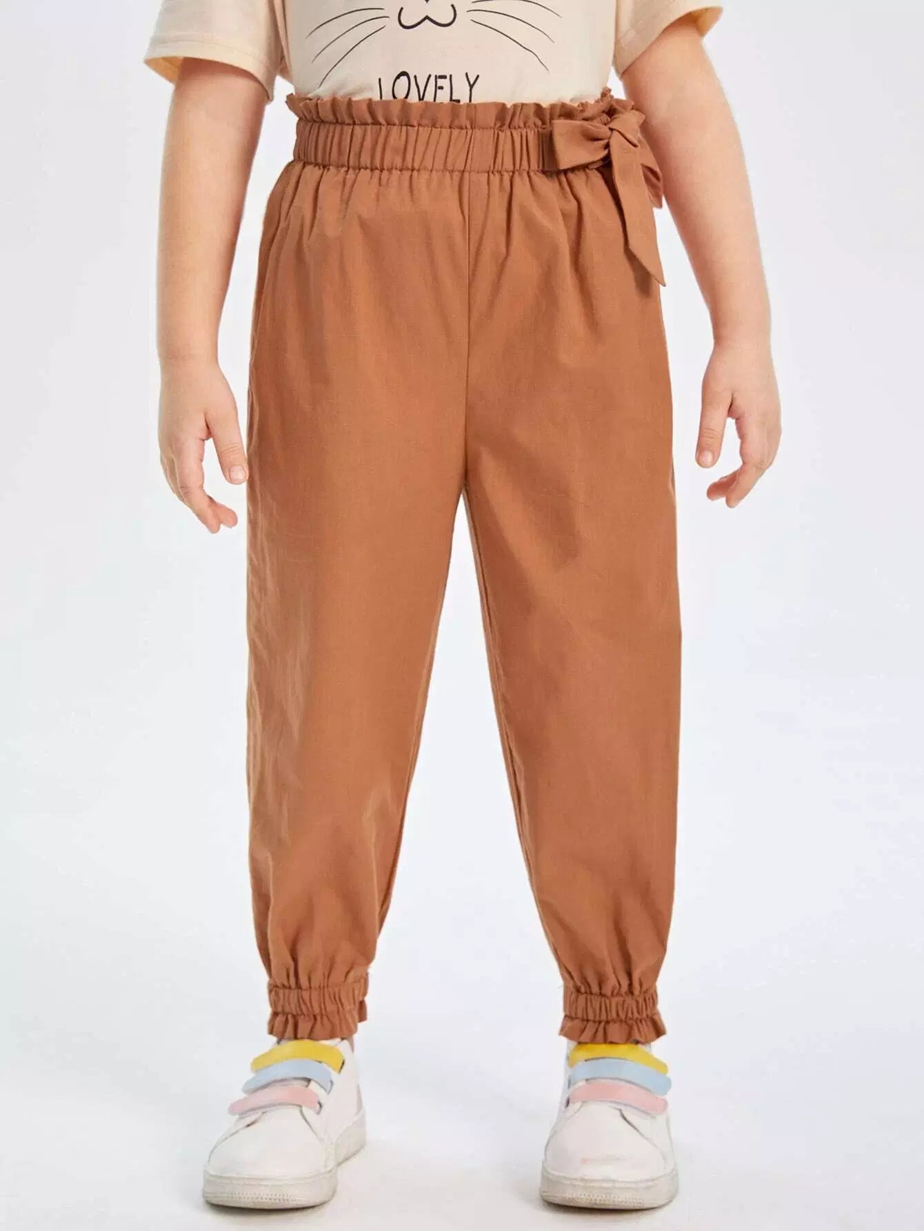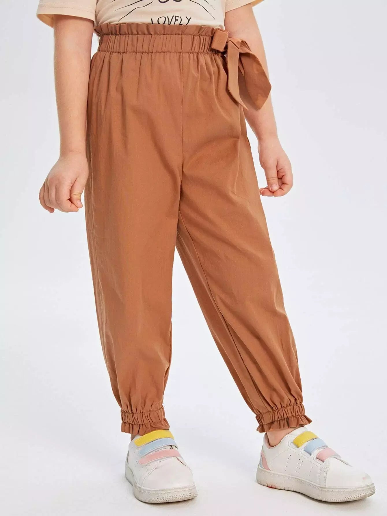 بنطلون بناتي صغير مدبب من الجانب بعقدة على الخصر على شكل كيس ورقي