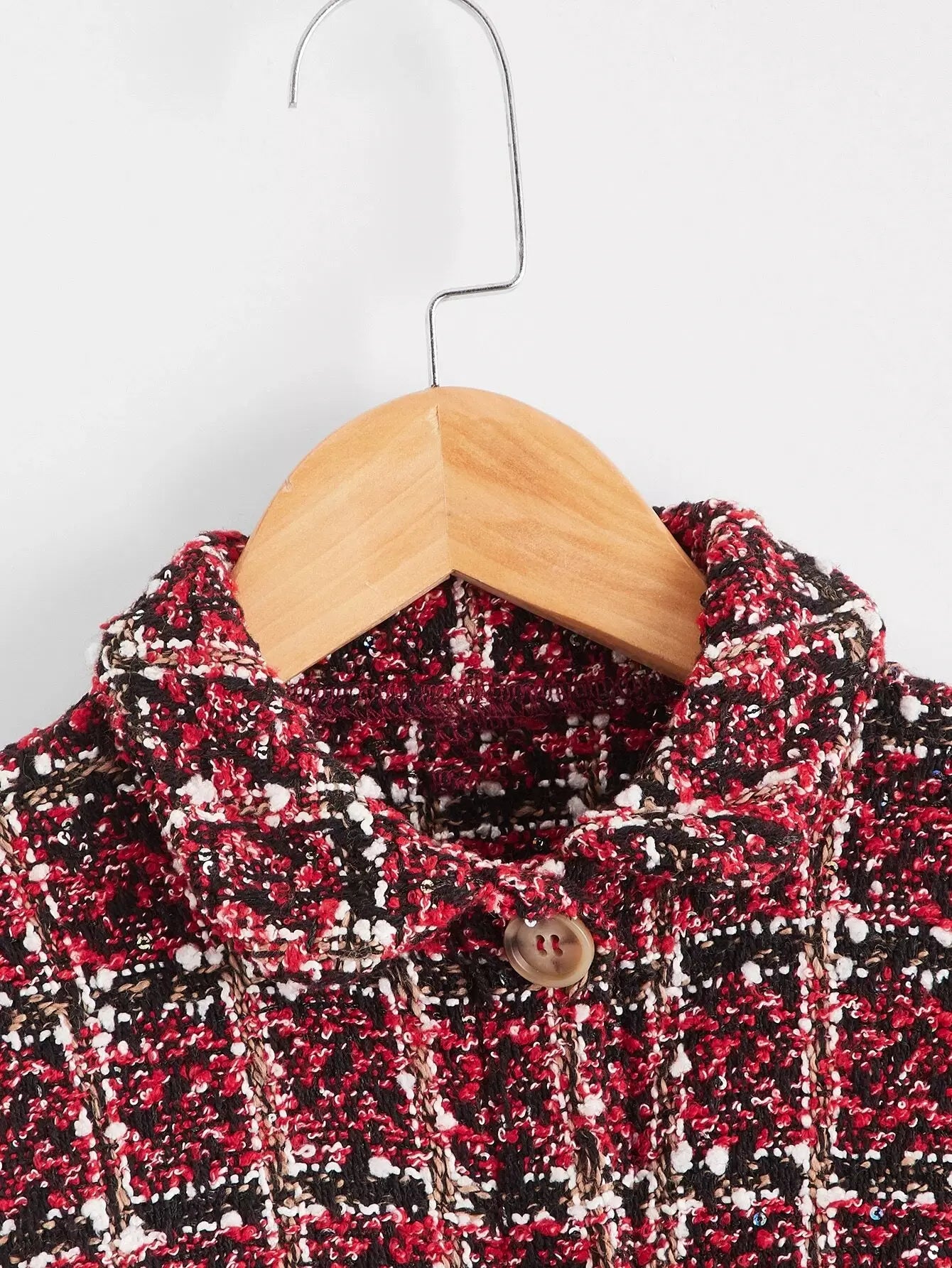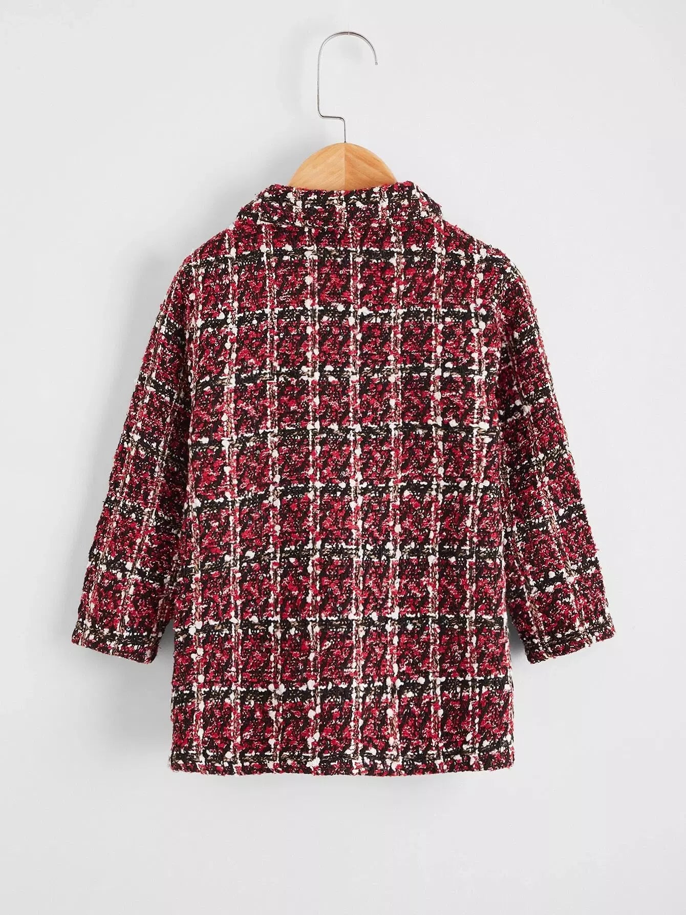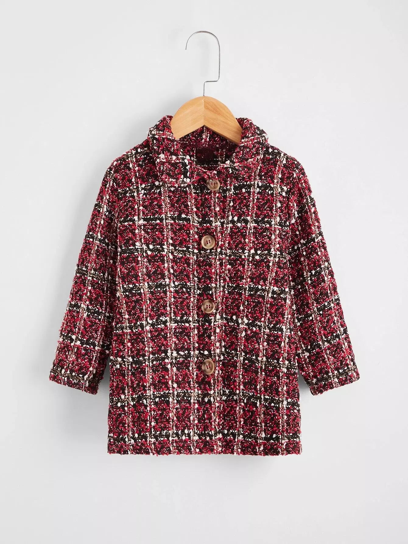 معطف بنات صغيرات منقوش بصدر واحد منقوش