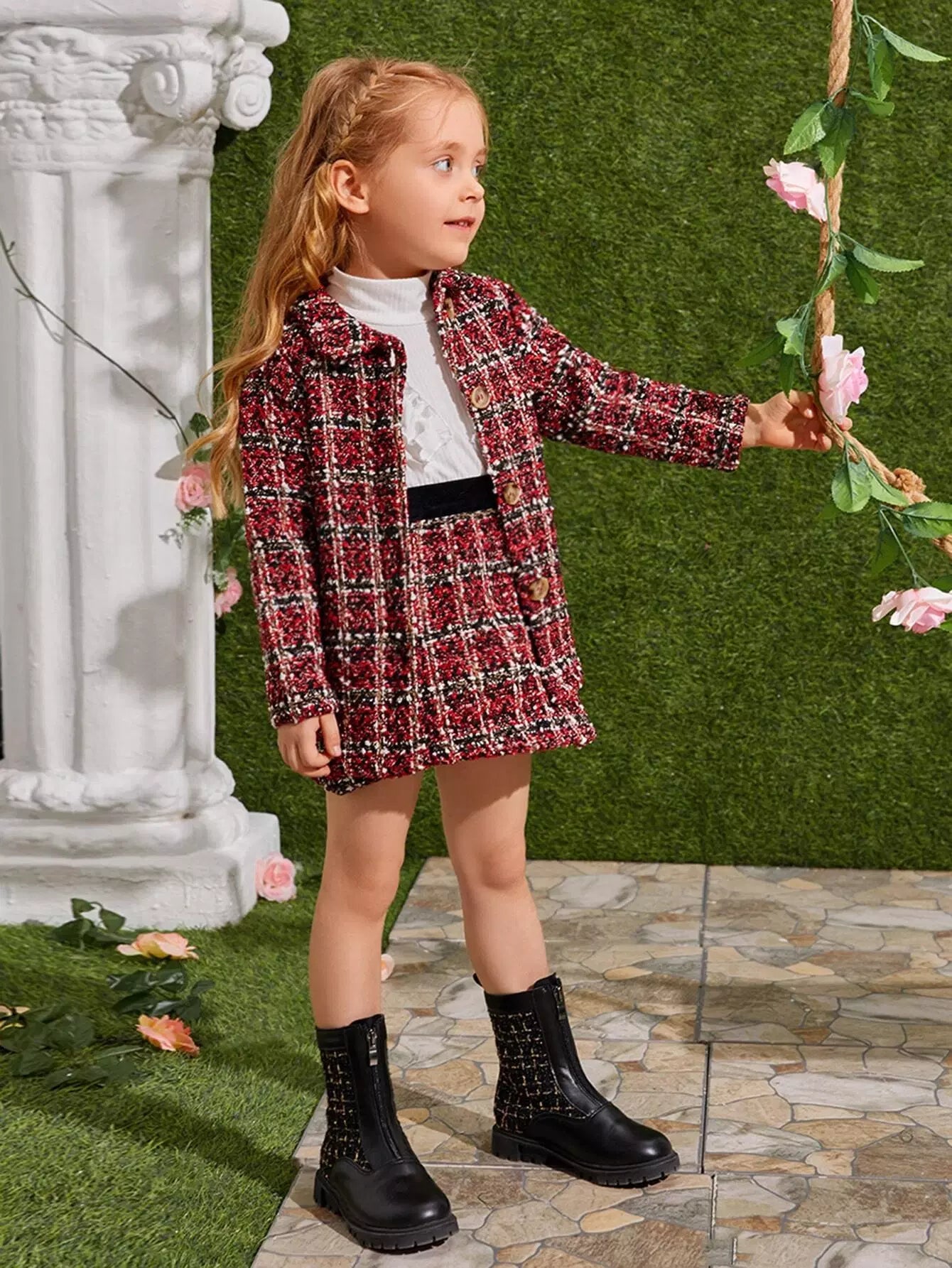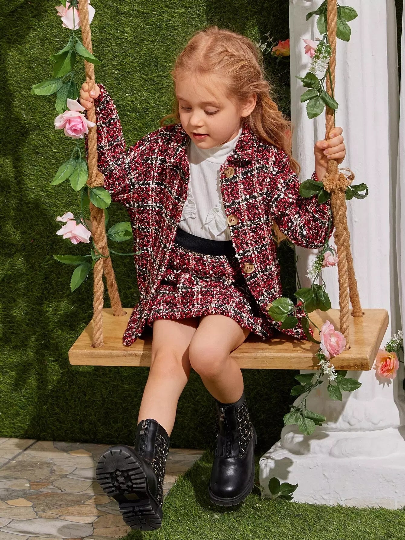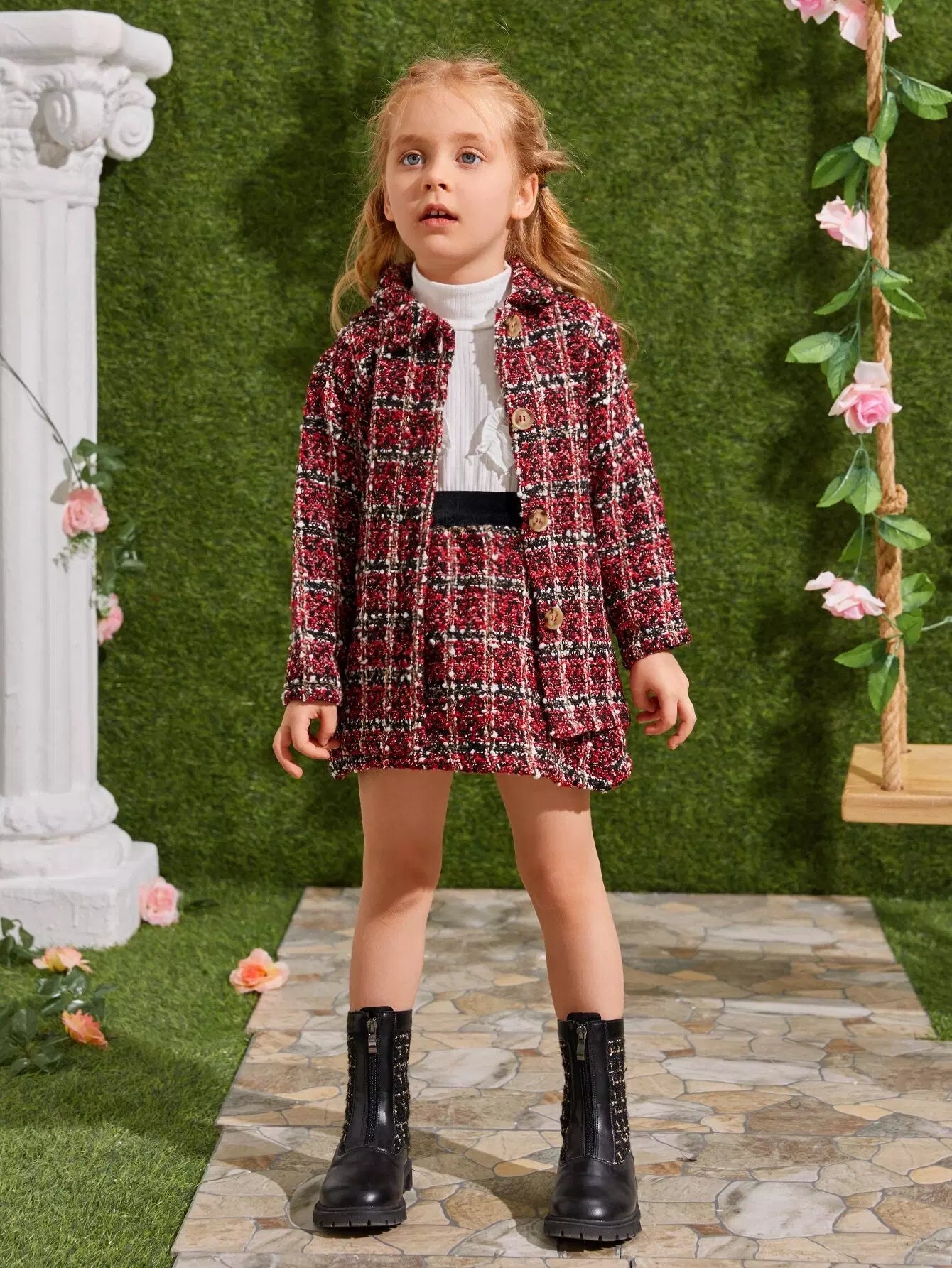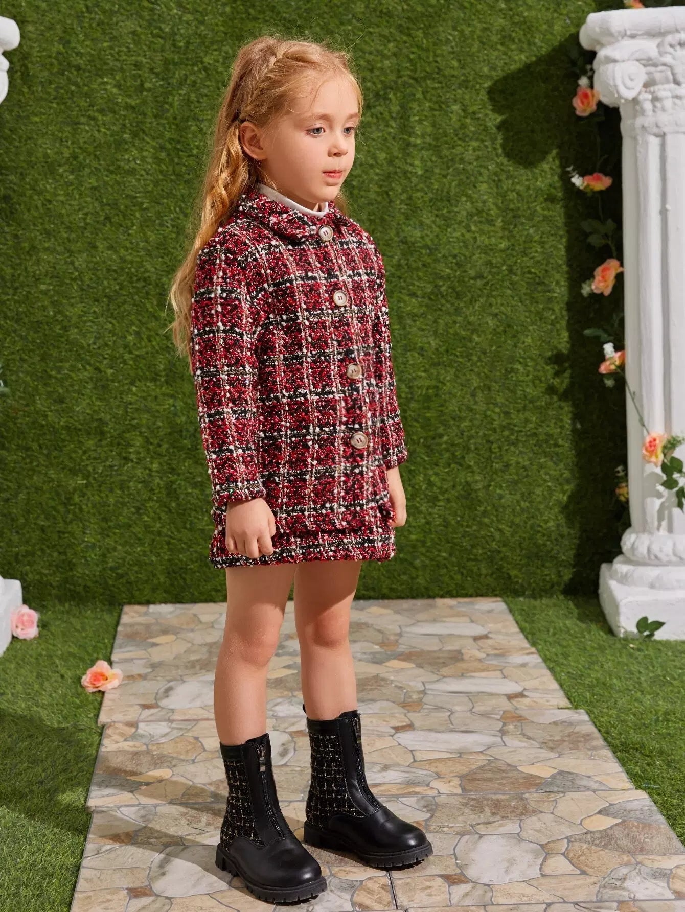 معطف بنات صغيرات منقوش بصدر واحد منقوش