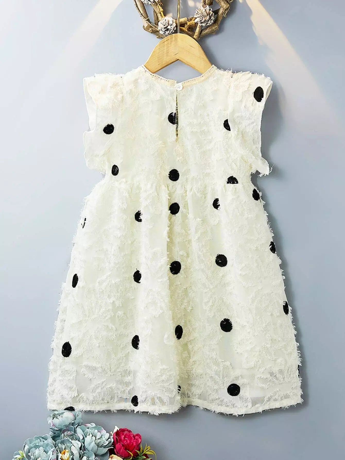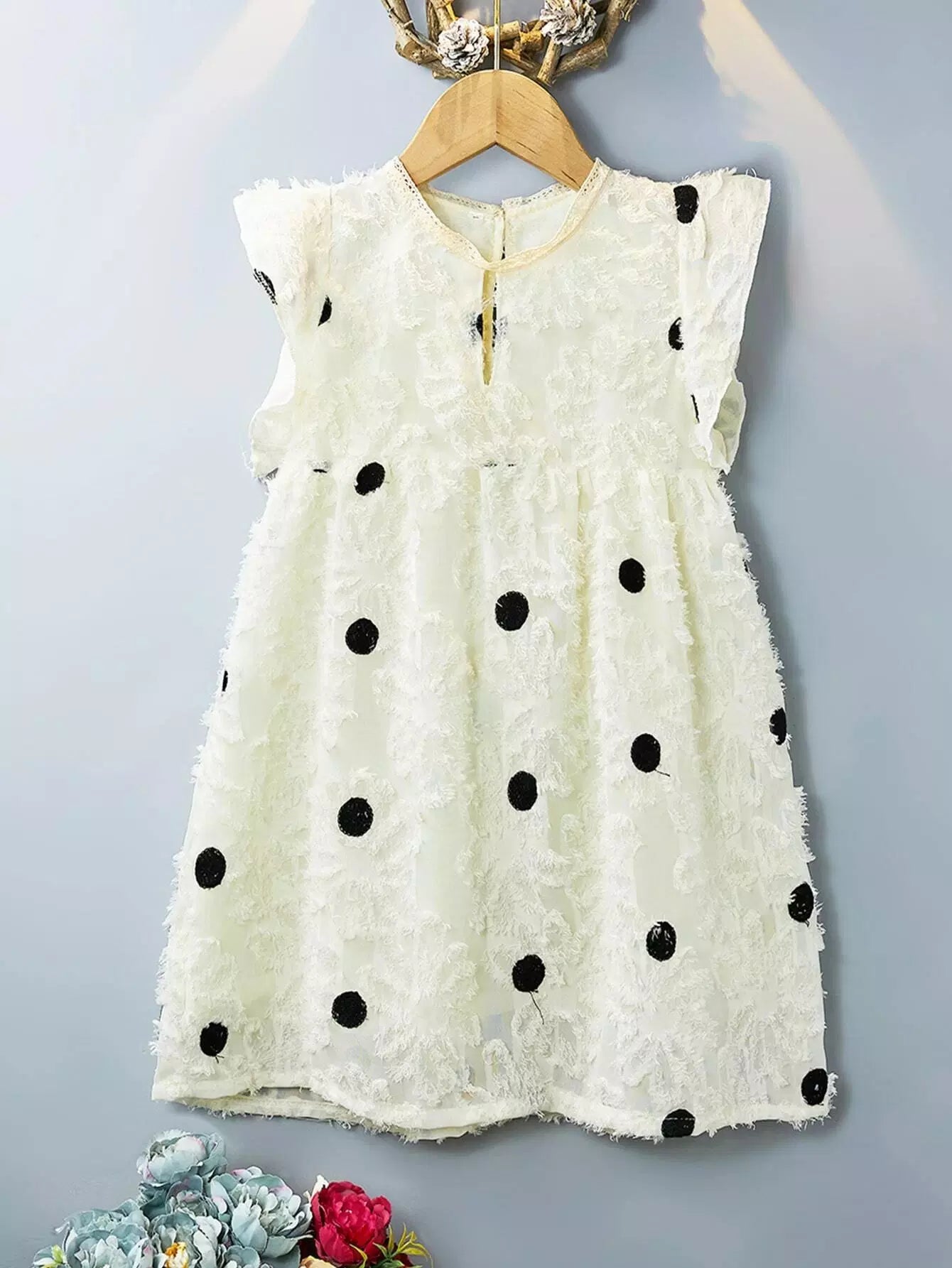 فستان بناتي صغيرات منقّط بنقشة كشكش بحواف مكشكشة