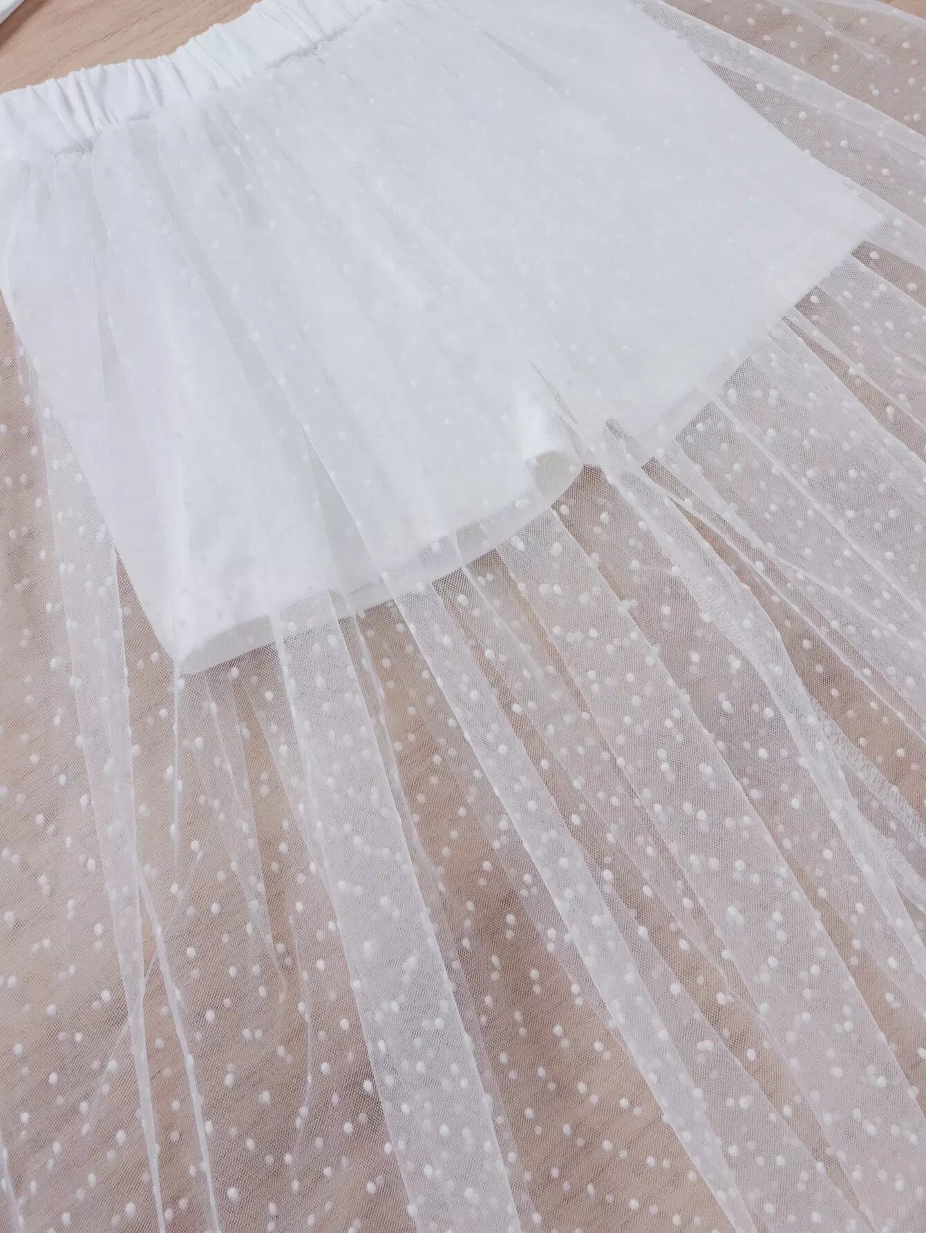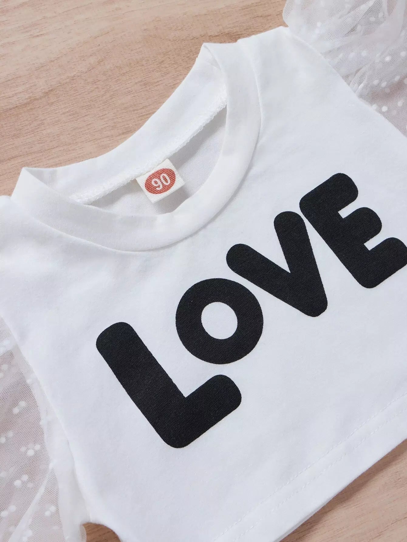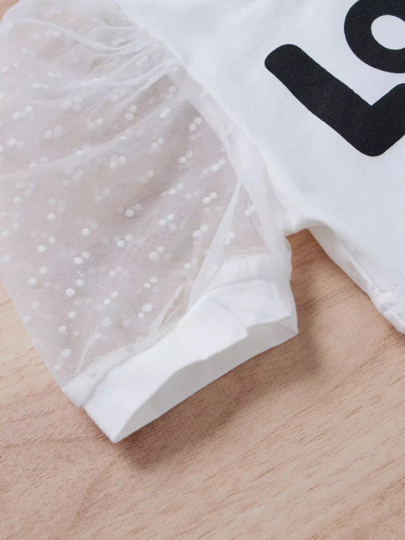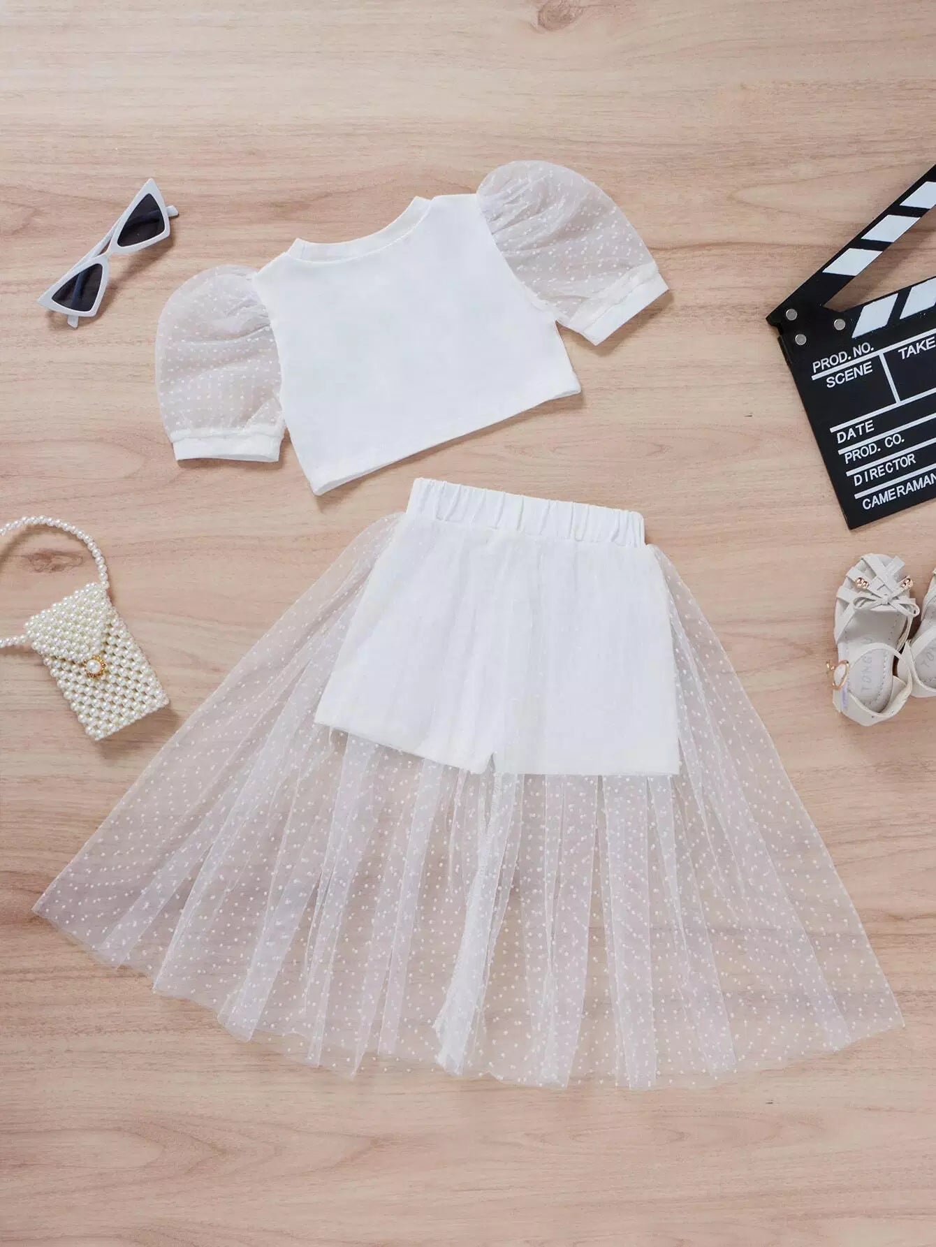 تي شيرت بأكمام شبكية منفوشة للبنات الصغار مع سروال قصير