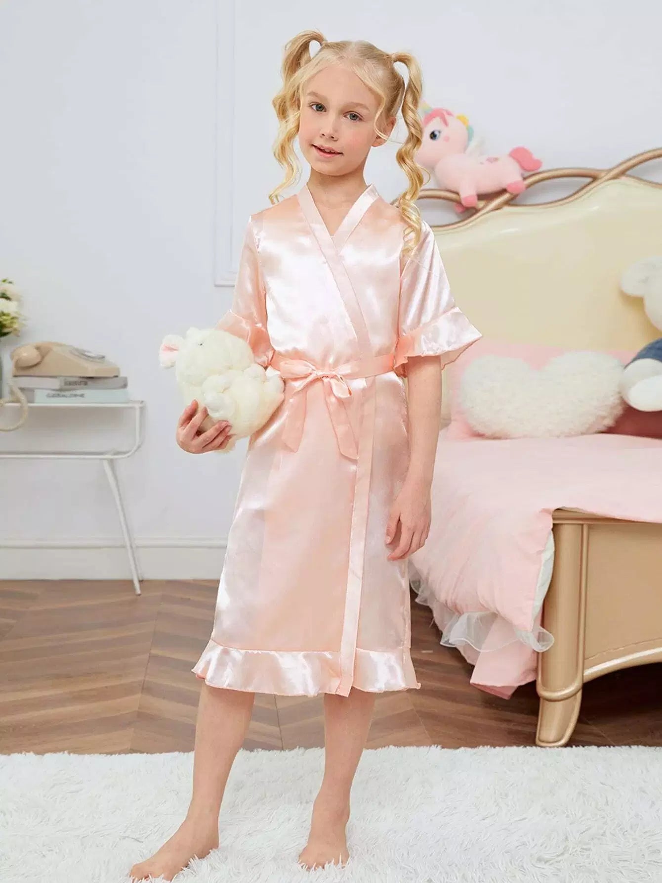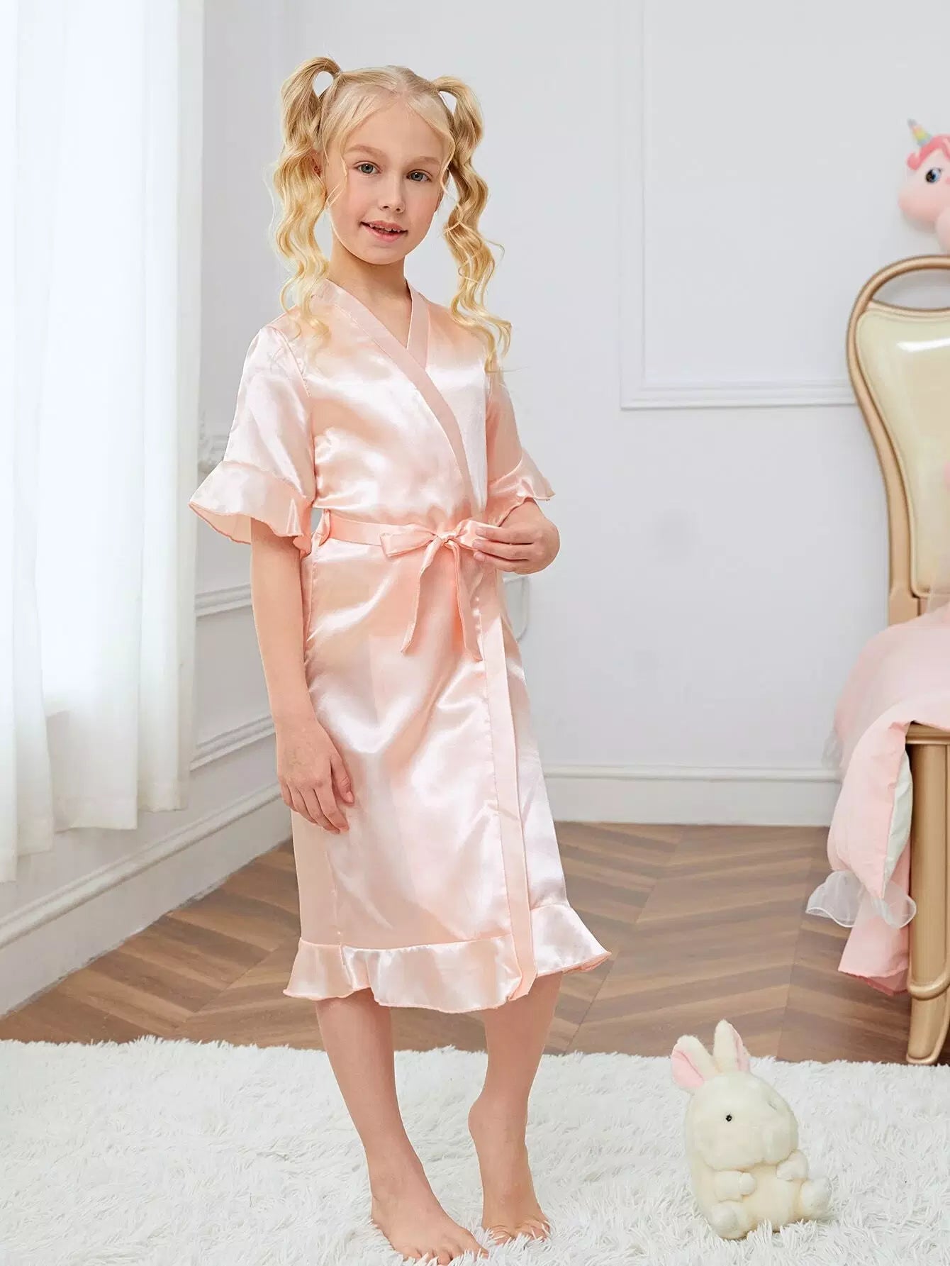 رداء ساتان بربطة عنق ذاتي للبنات الصغار