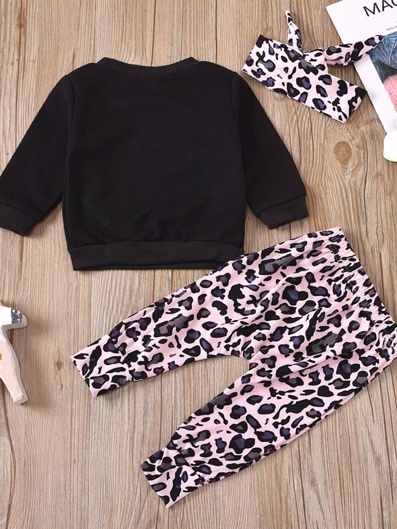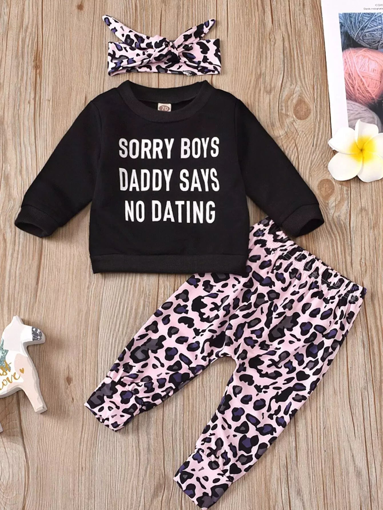 الأطفال - سويت شيرت برسومات الشعار للفتيات الصغيرات وسروال برسومات وعصابة رأس
