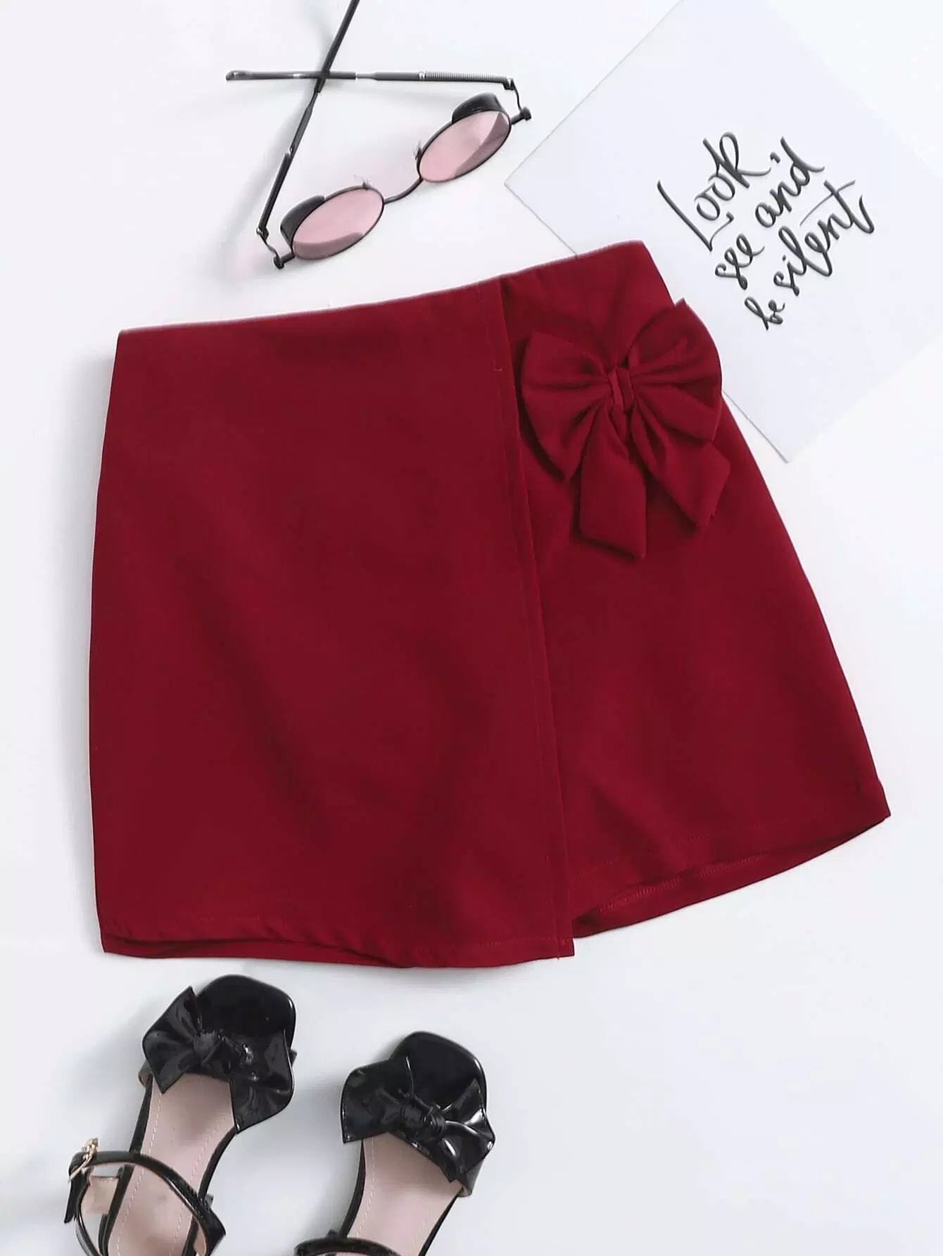 تنورة سادة ملفوفة بعقدة أمامية للبنات الصغار