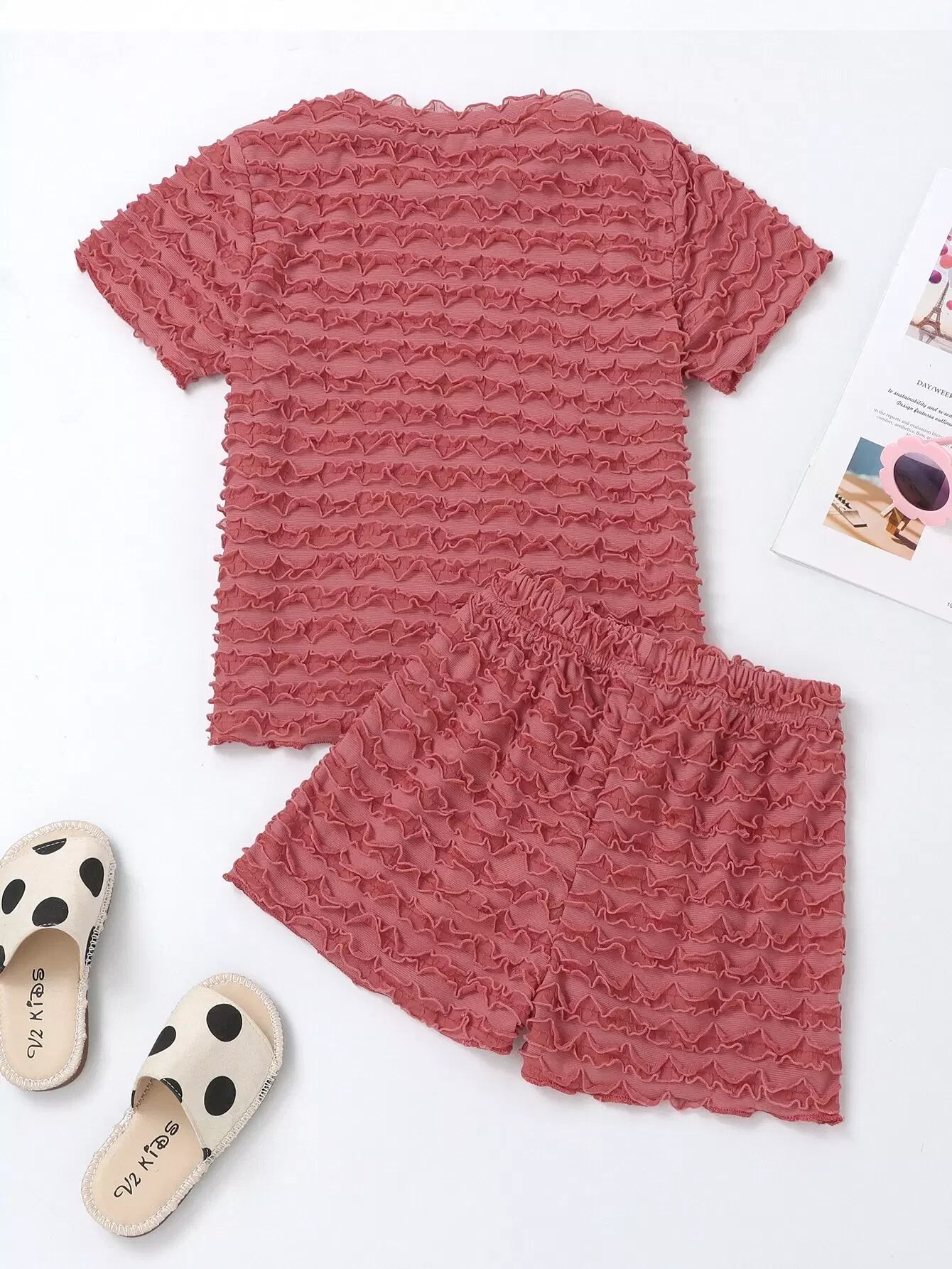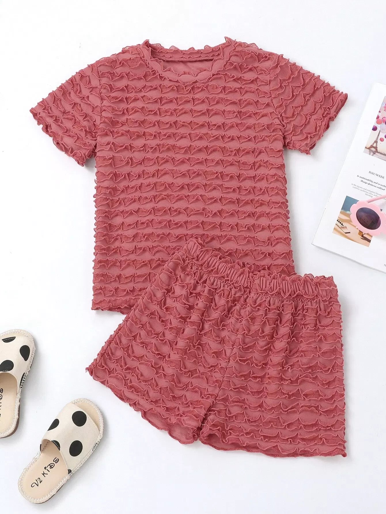 تي شيرت وبنطلون بناتي سادة بنقشة سادة وشورت