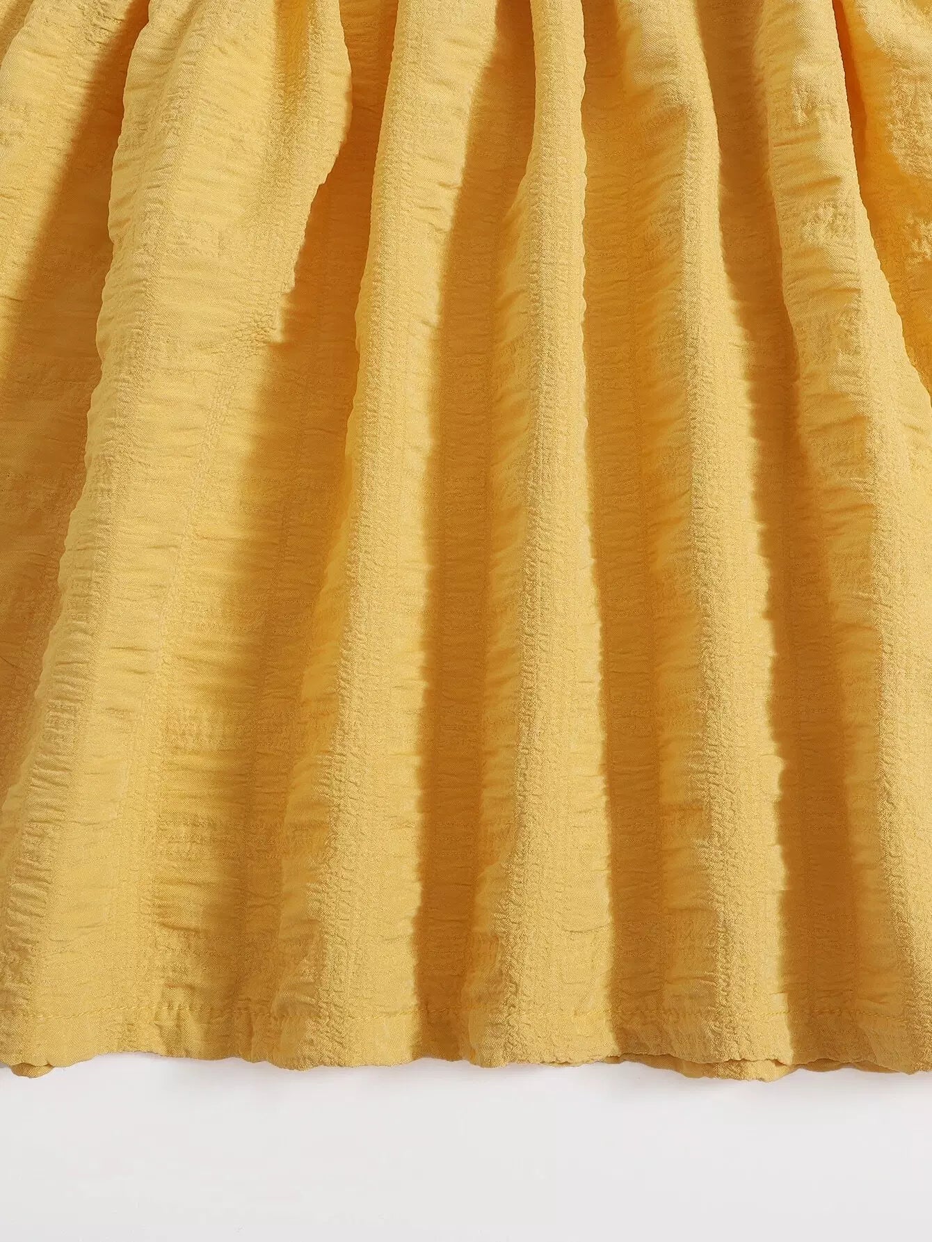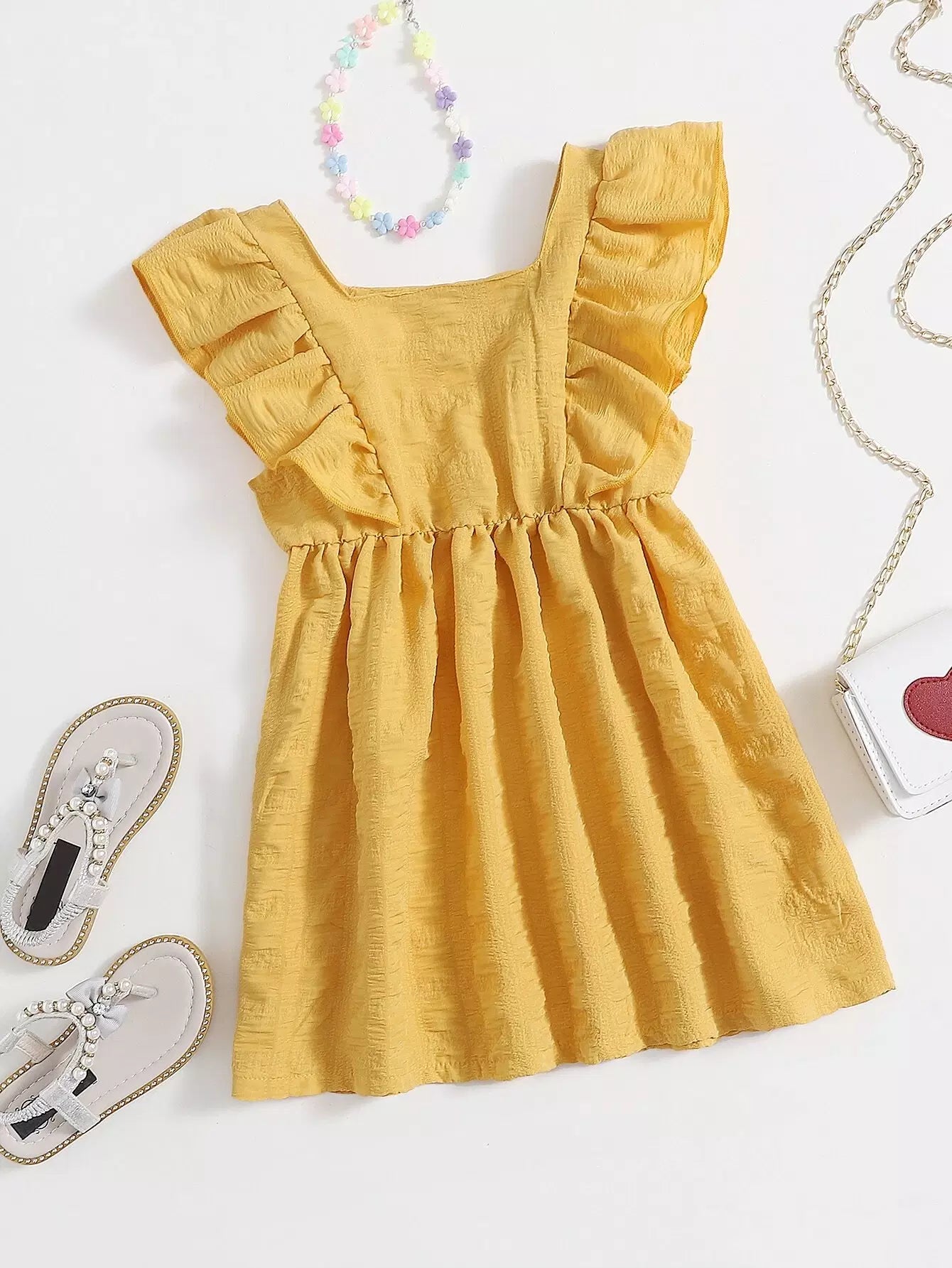 فستان بنات صغيرات بياقة مربعة بحواف مكشكشة للبنات
