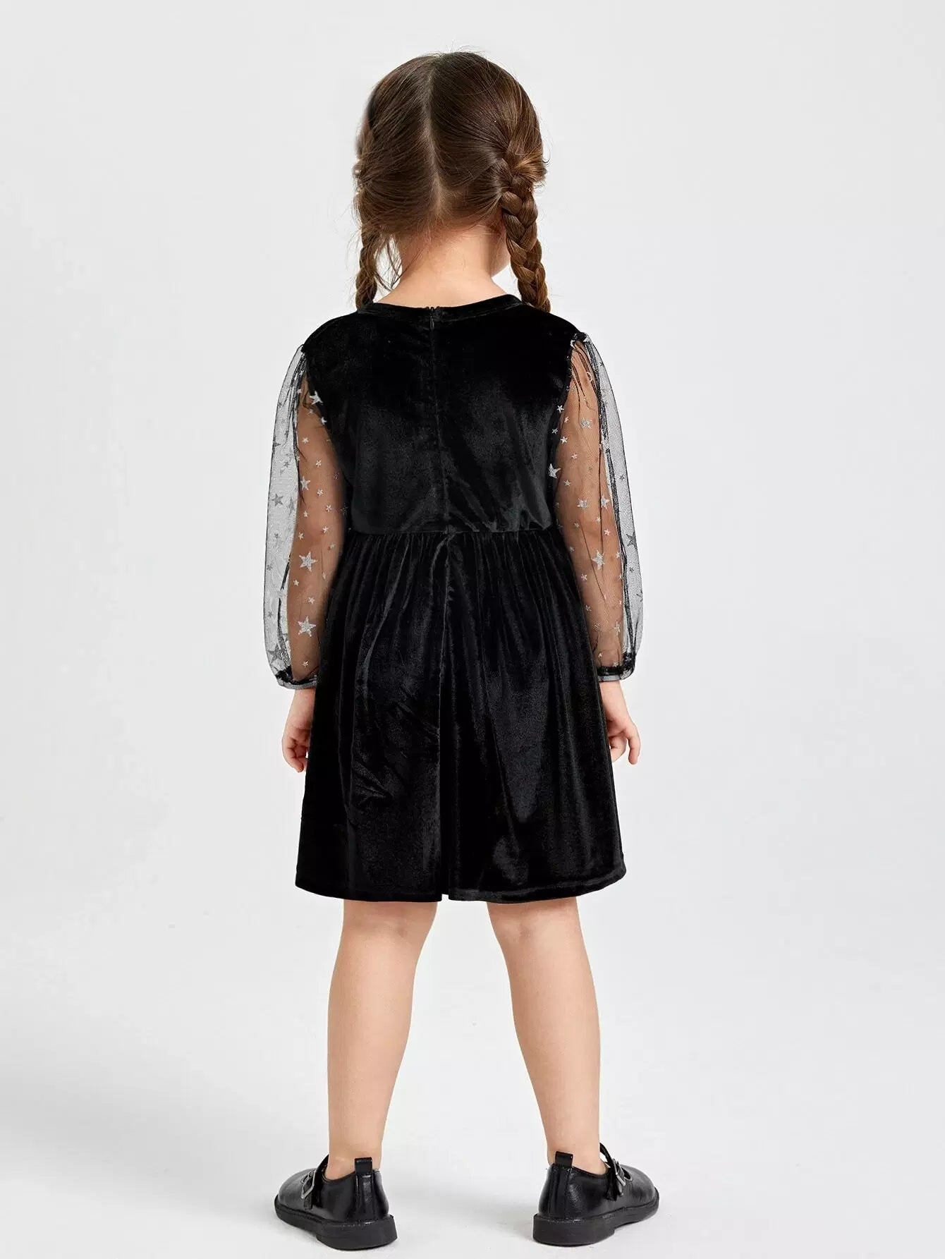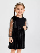 الأطفال - فستان مخملي بجزء شبكي على شكل نجمة للفتيات الصغيرات