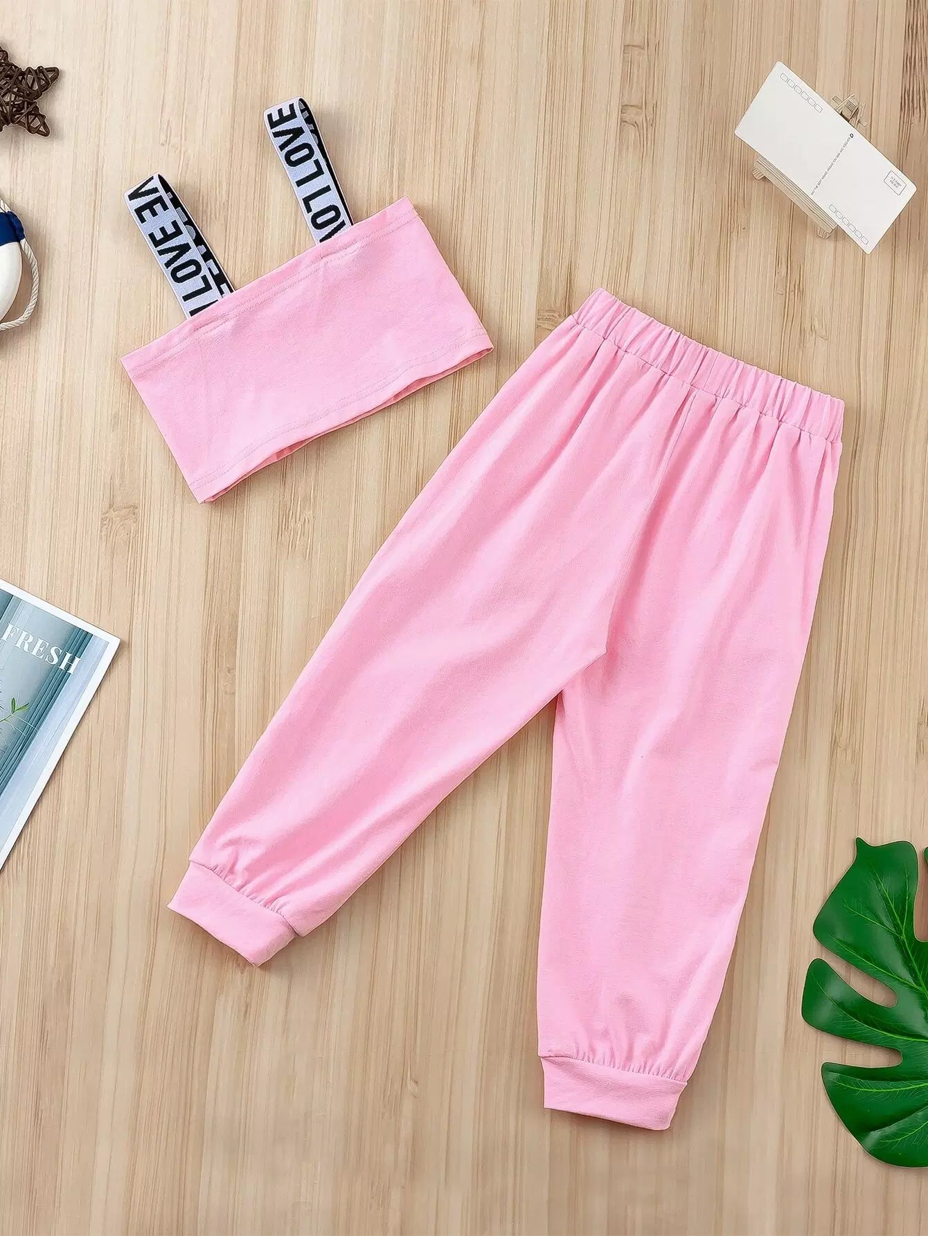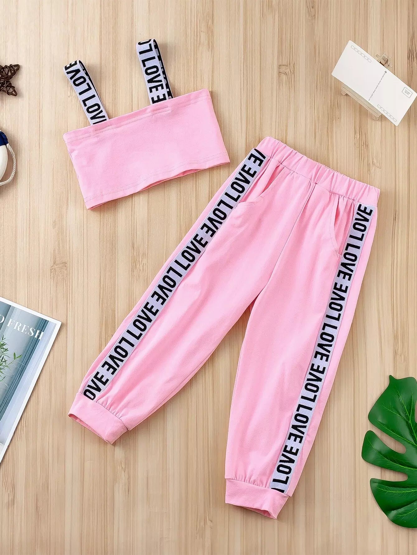 بلوزة وبنطال رياضي بناتي صغيرات بقطعة قطنية وبنطال رياضي