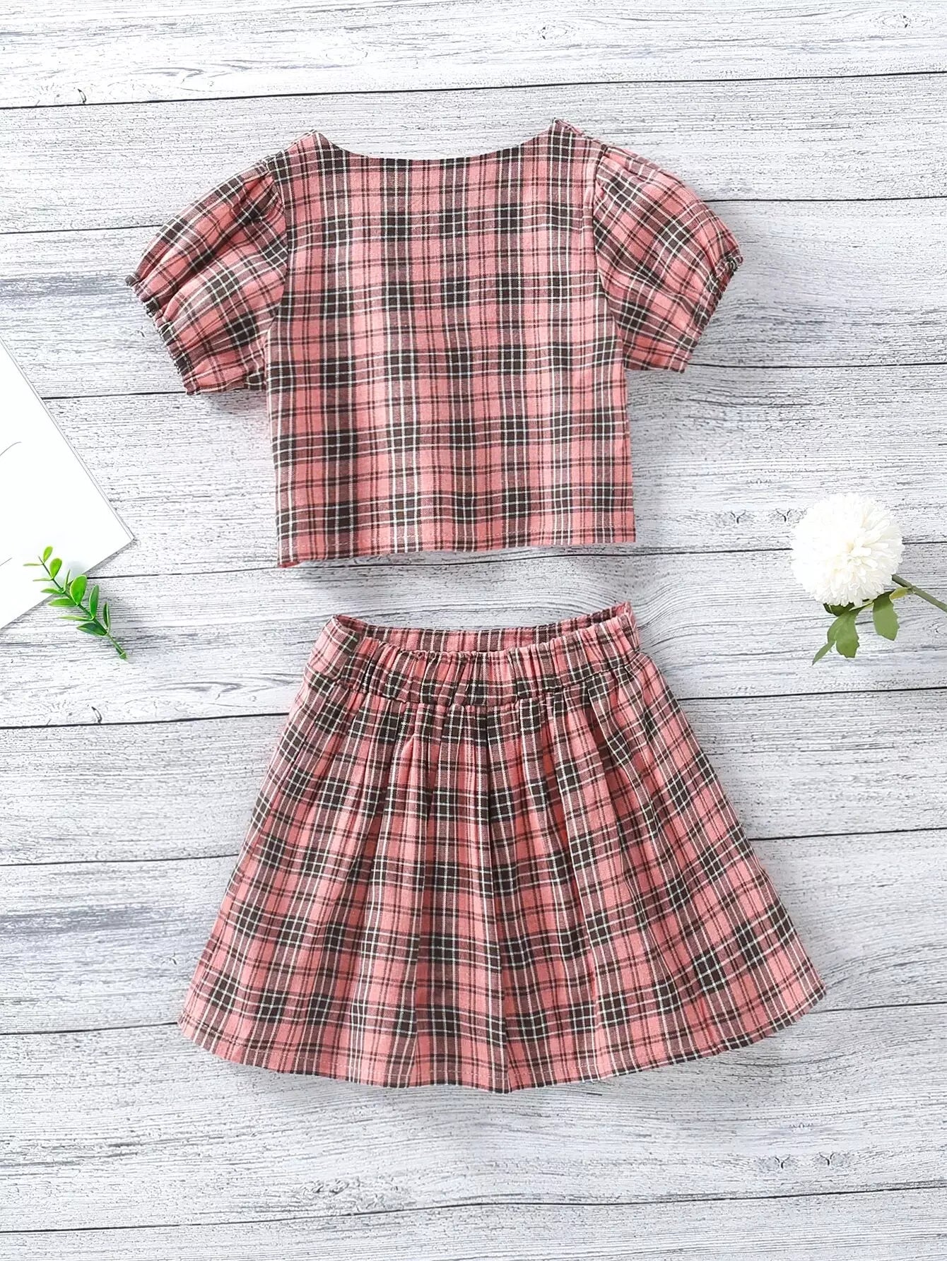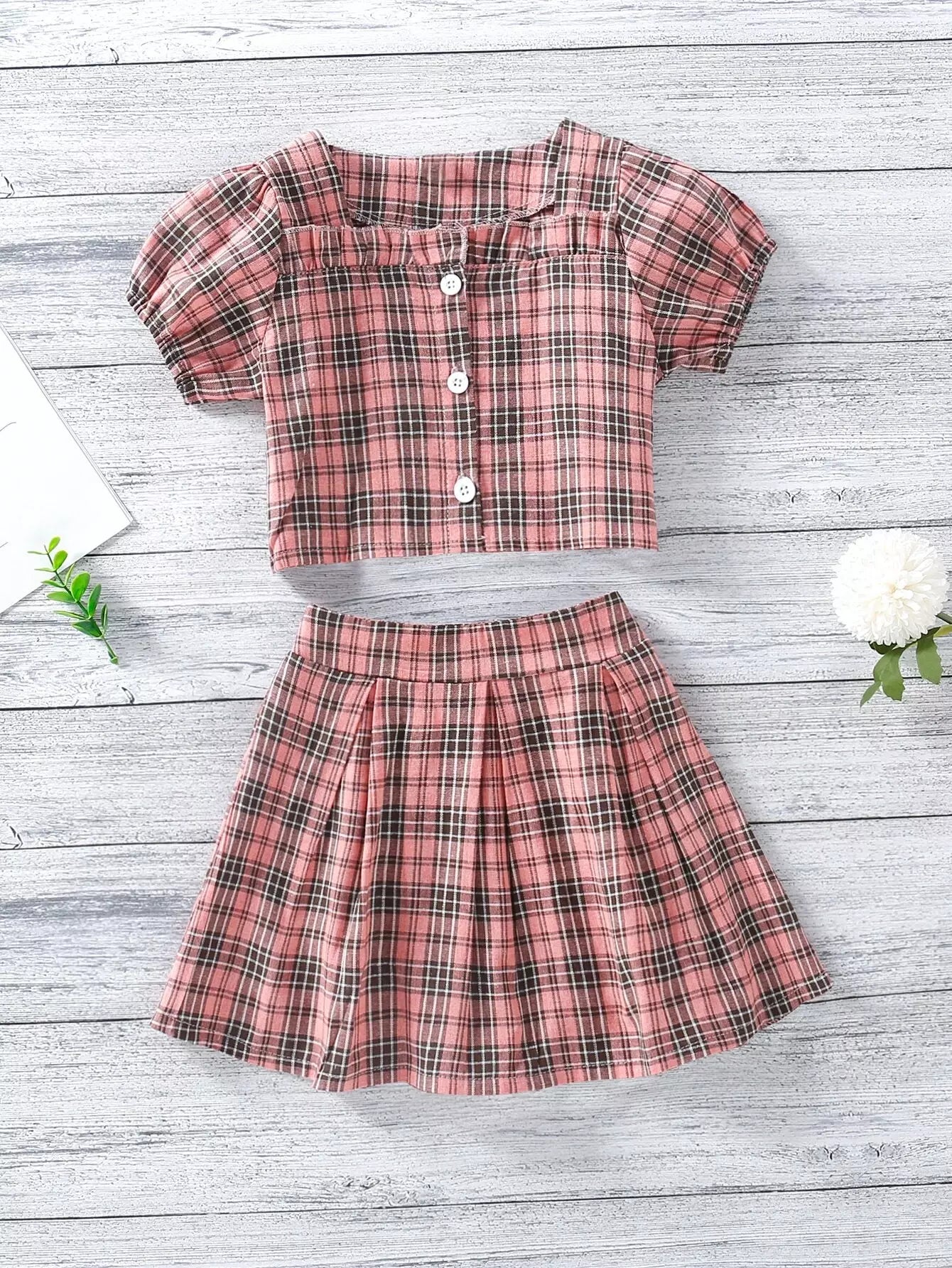 طقم بلوزة وتنورة بأزرار من الترتان للبنات الصغار