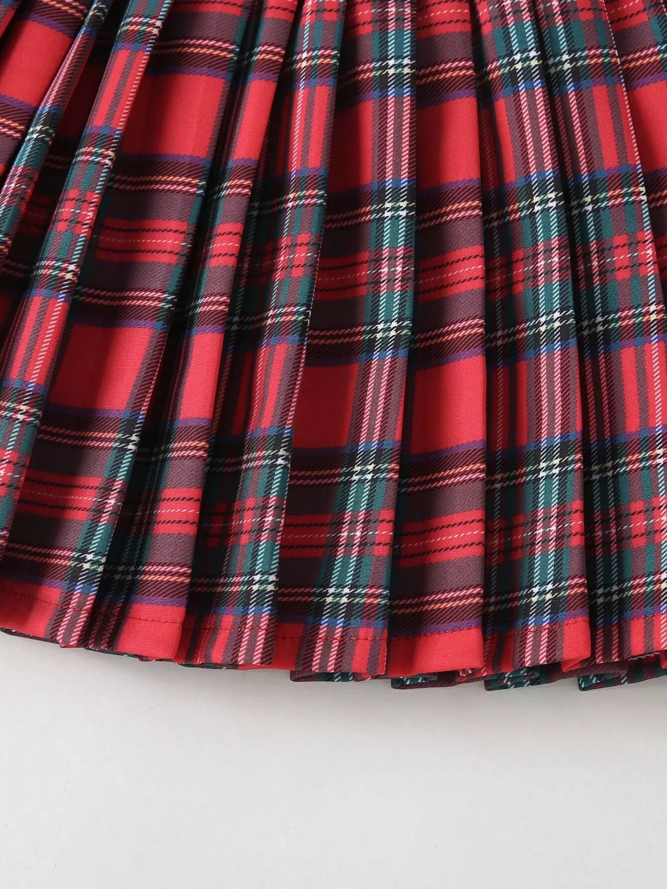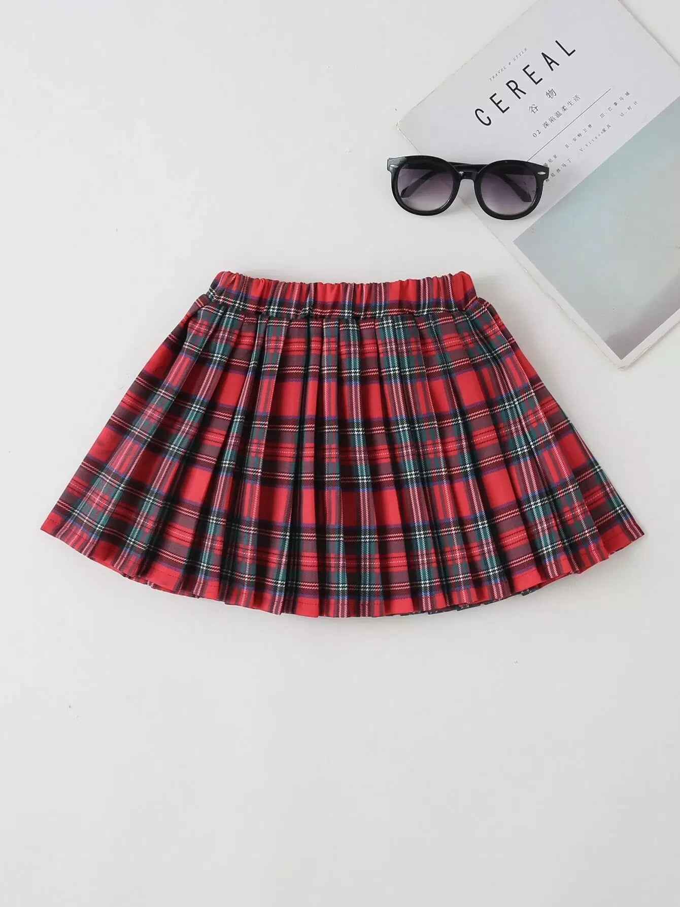 تنورة مطوية بطبعة ترتان للبنات الصغار