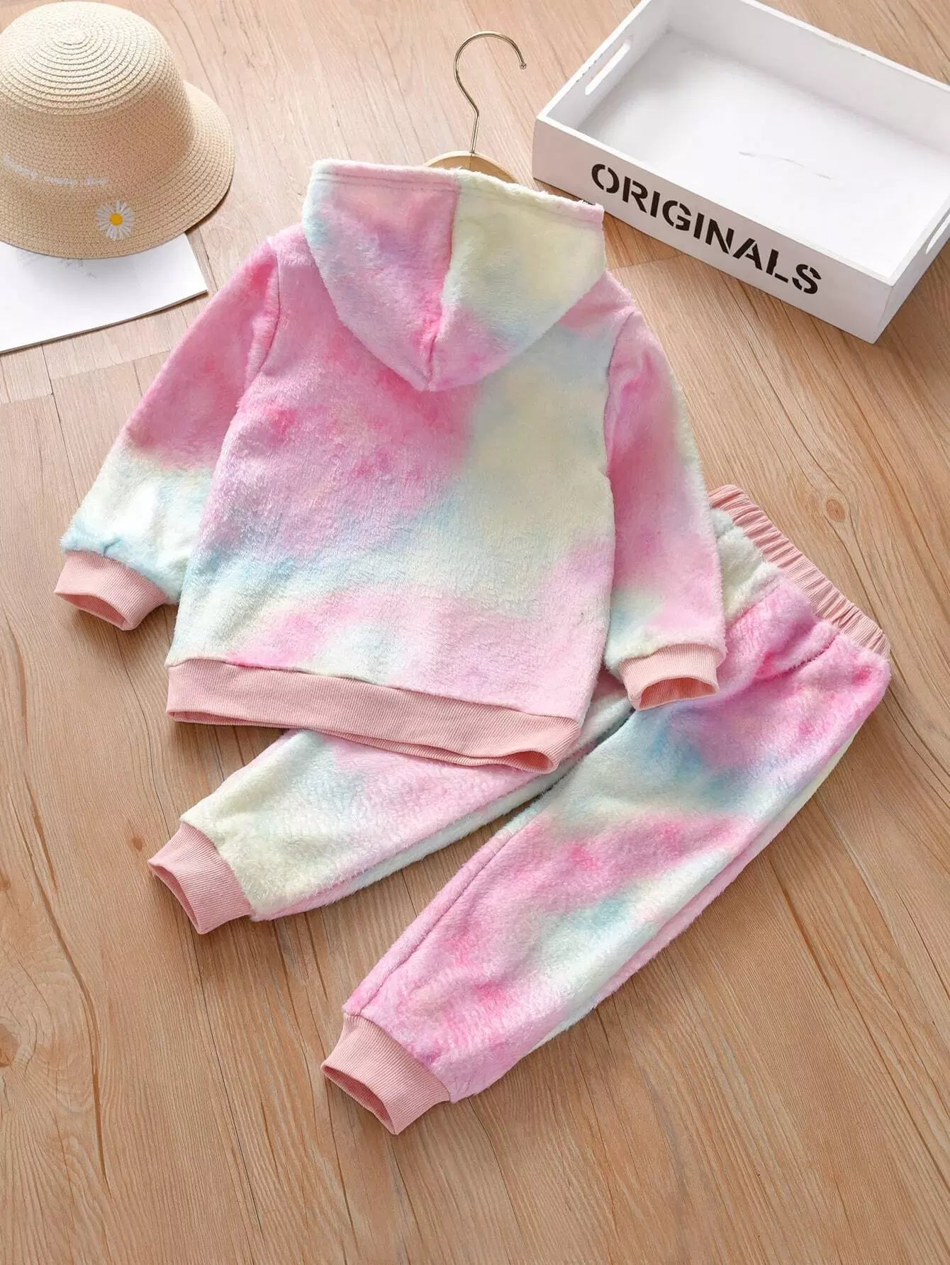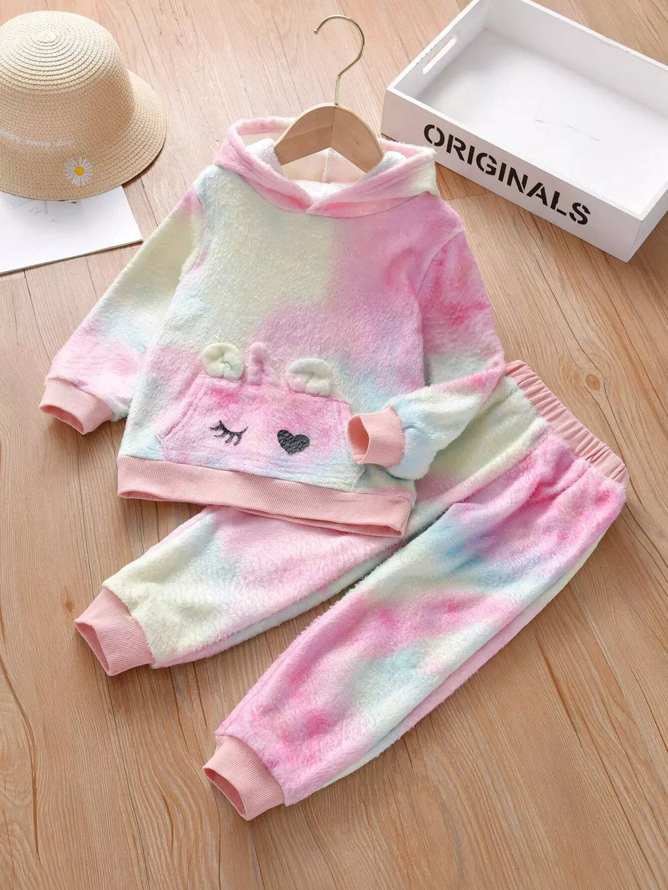 هودي وبنطلون فانيلا بتصميم أذنين ثلاثي الأبعاد بصبغة كرتونية للبنات الصغار