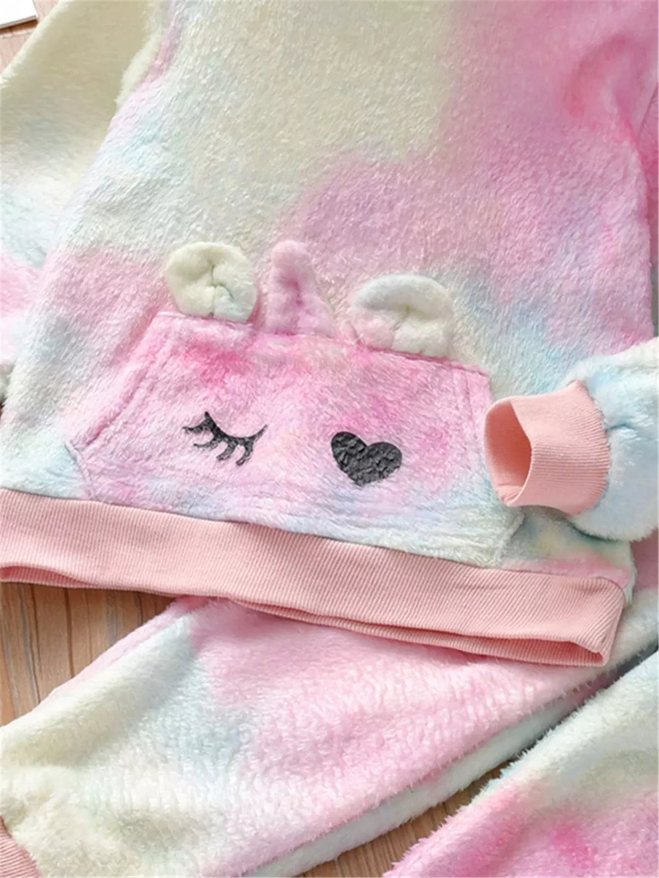 الأطفال - قلنسوة وسروال من الفلانيل بتصميم كارتوني ثلاثي الأبعاد للفتيات الصغيرات