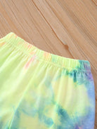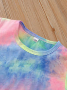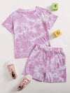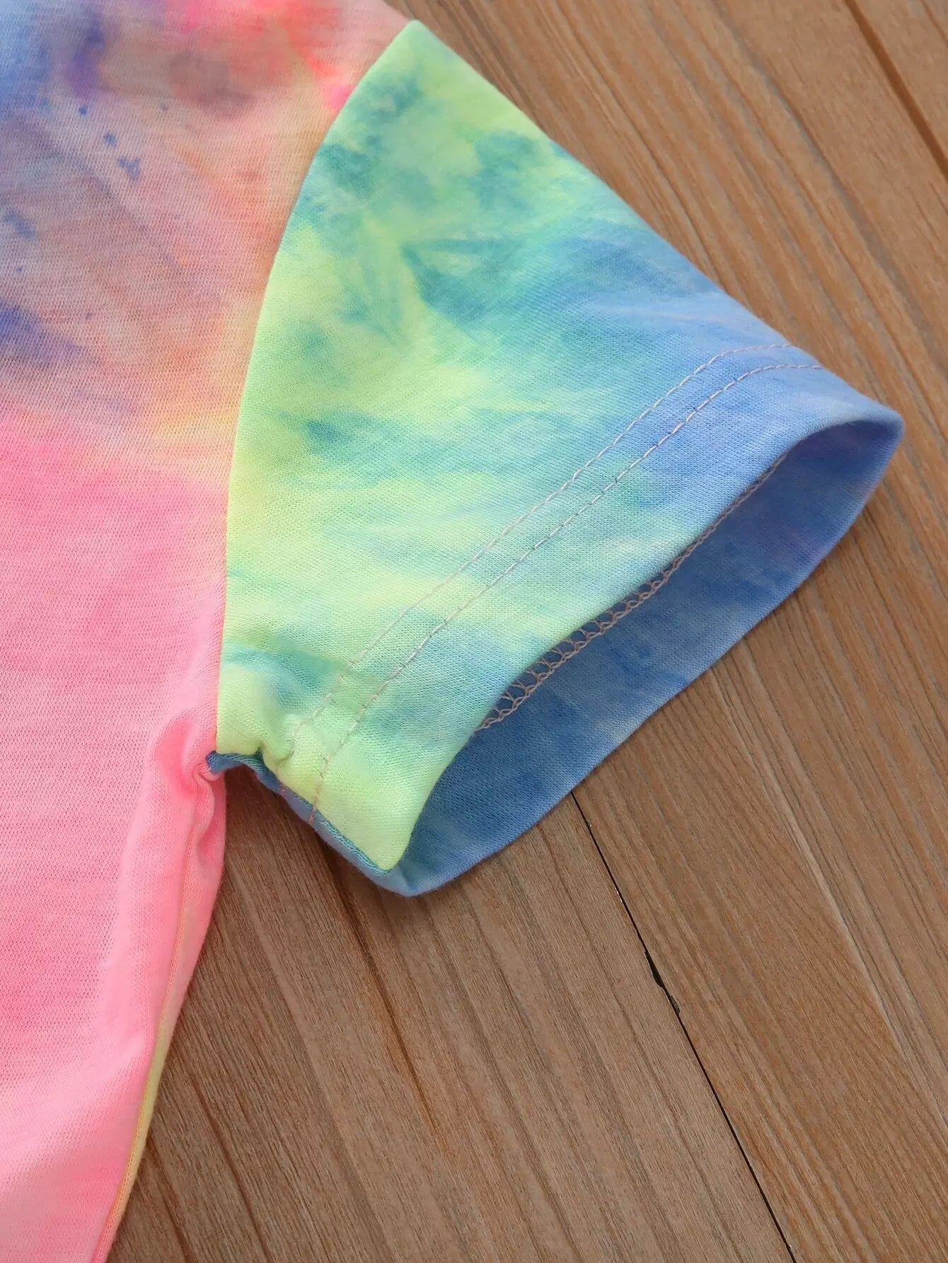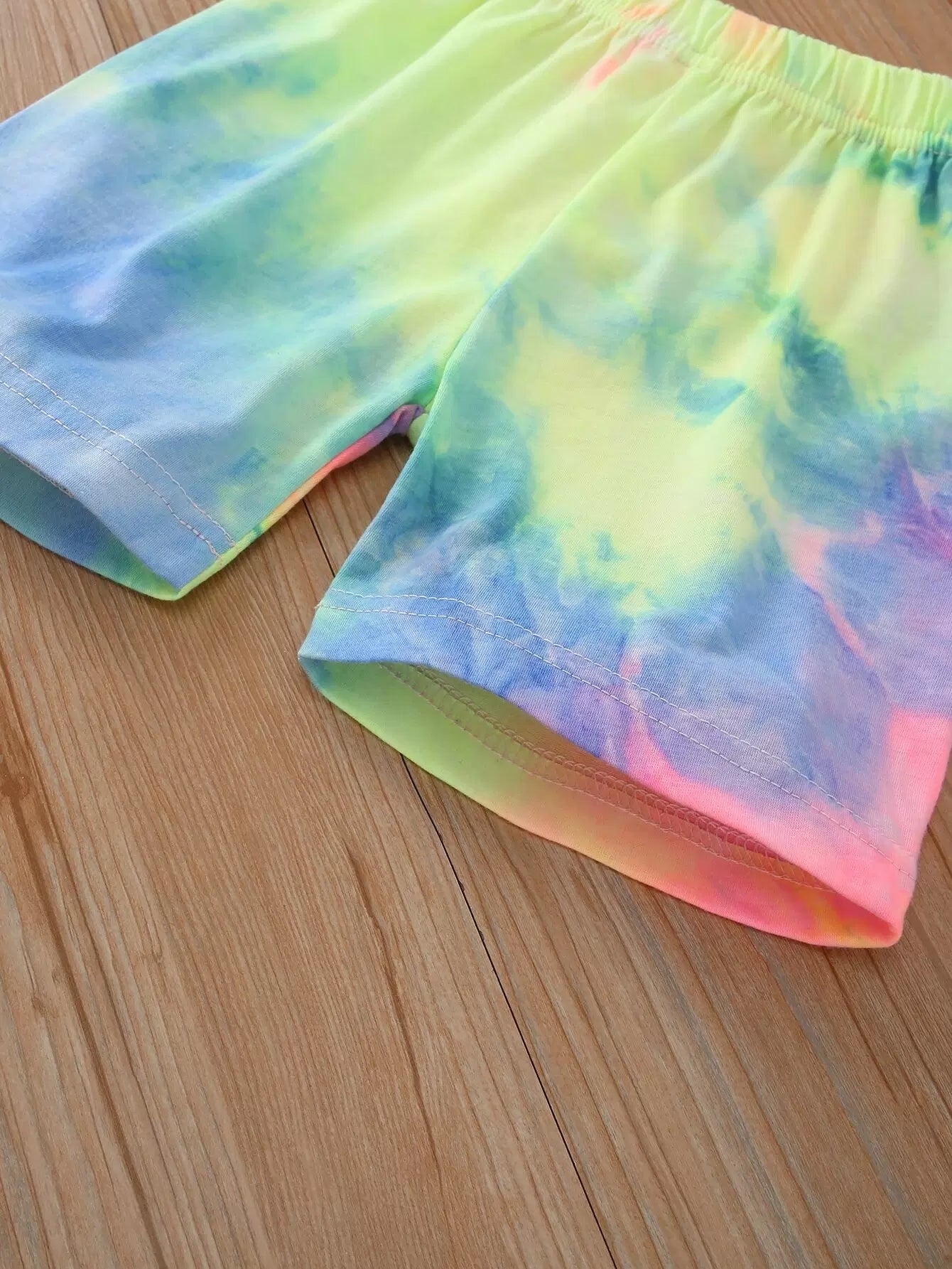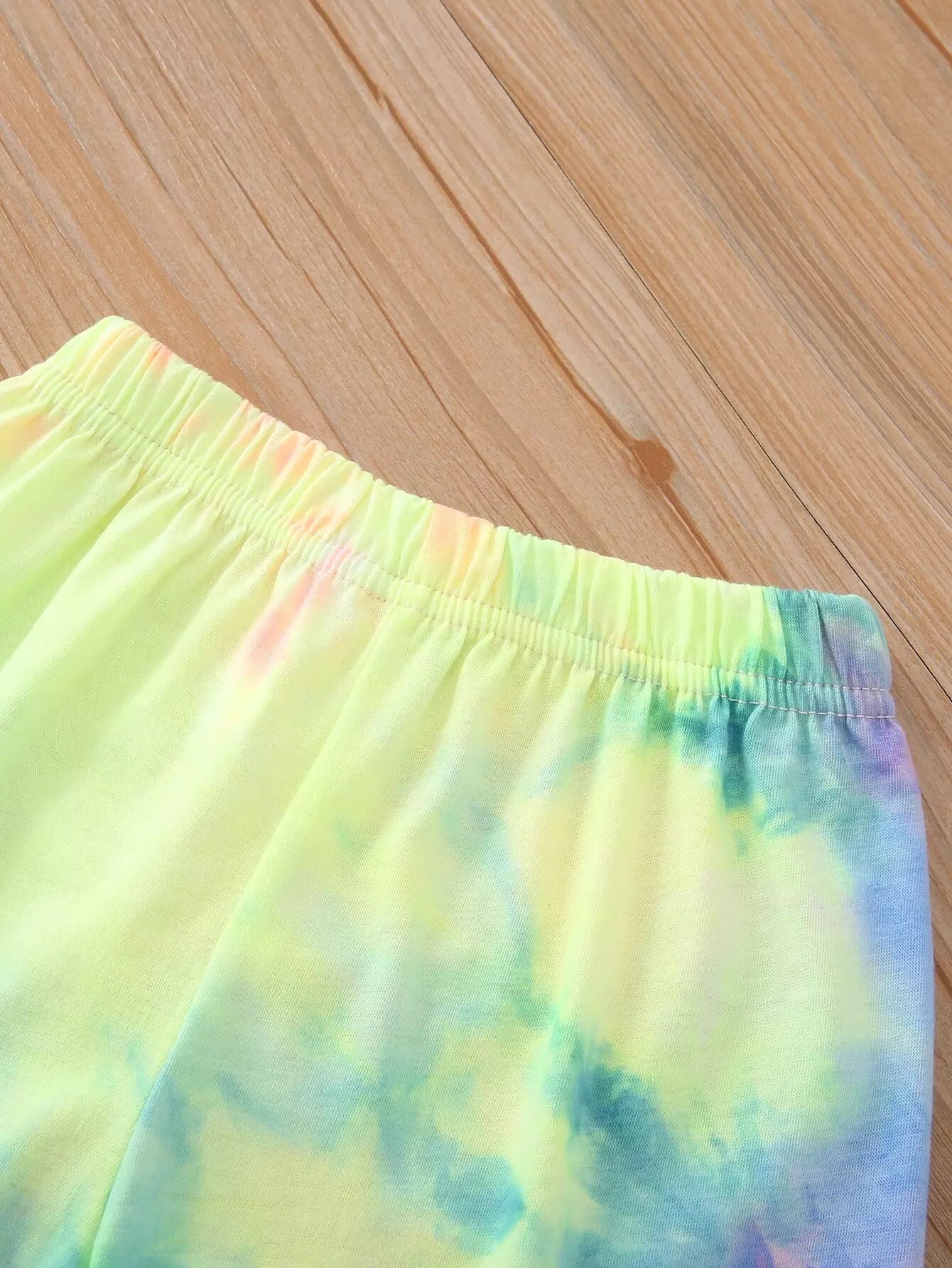 تيشيرت وبنات صغيرات بقميص وشورت مصبوغ بصبغة تي شيرت