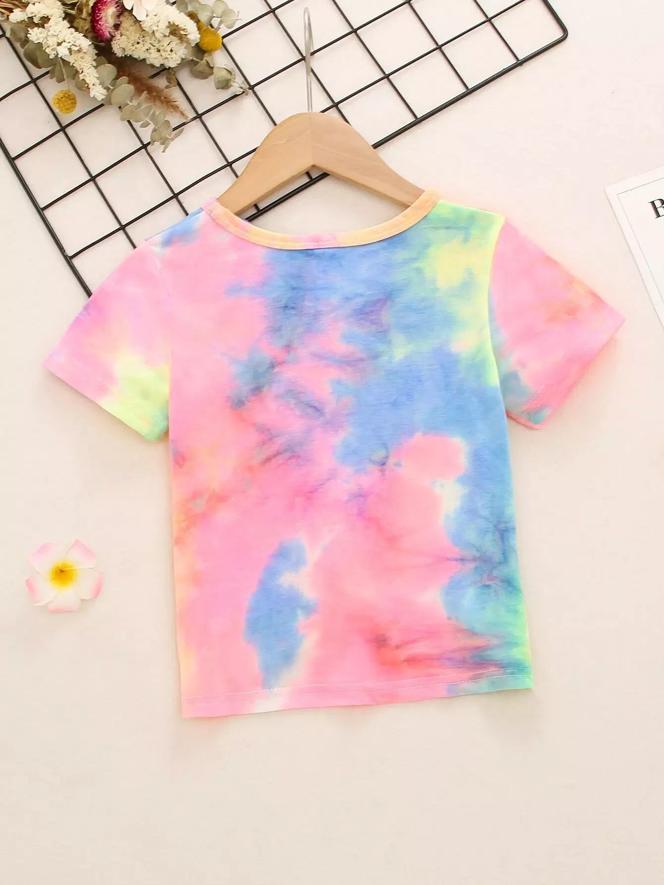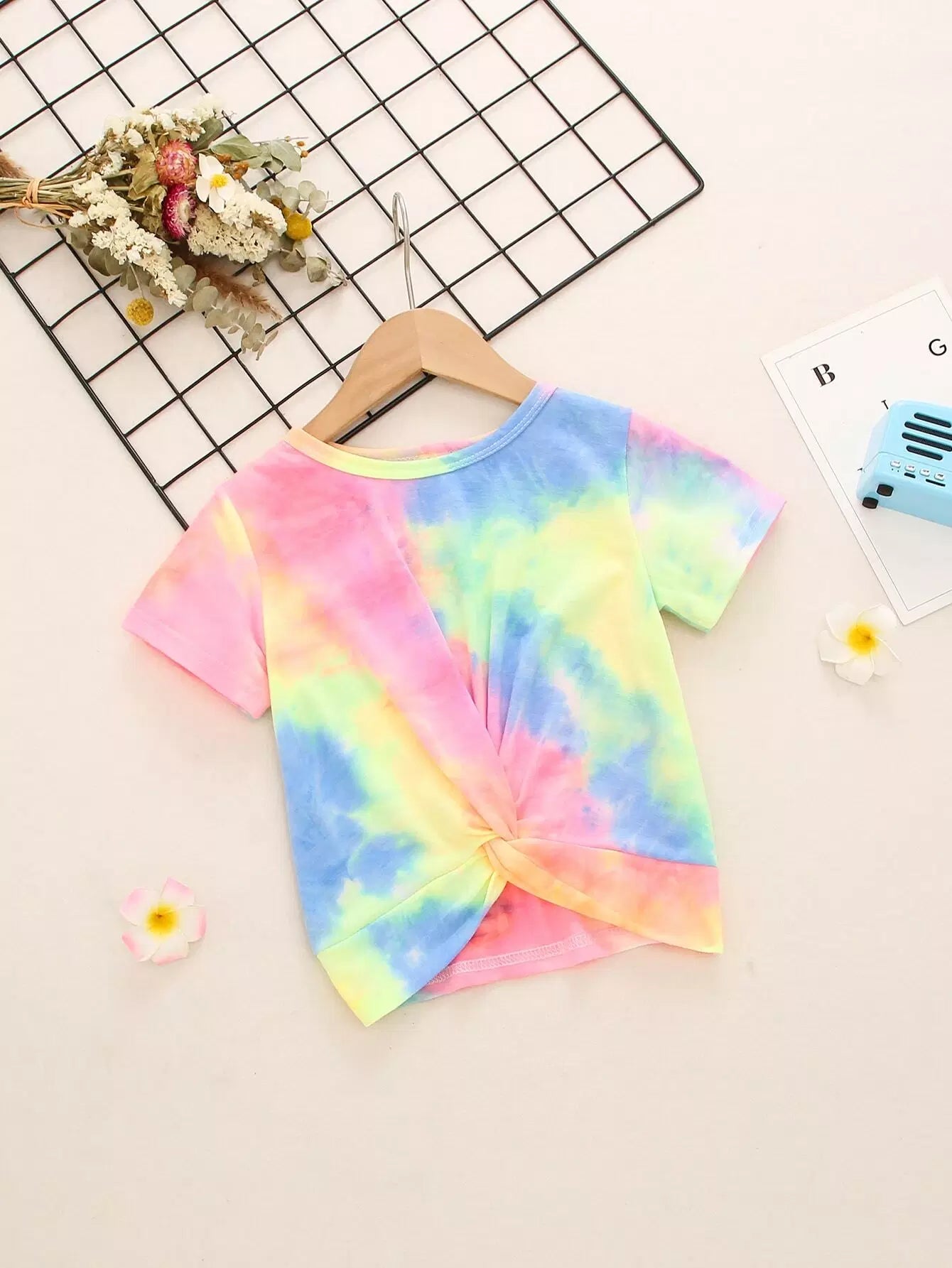 تي شيرت تويست أمامي تويست بصبغة تويست للبنات الصغار