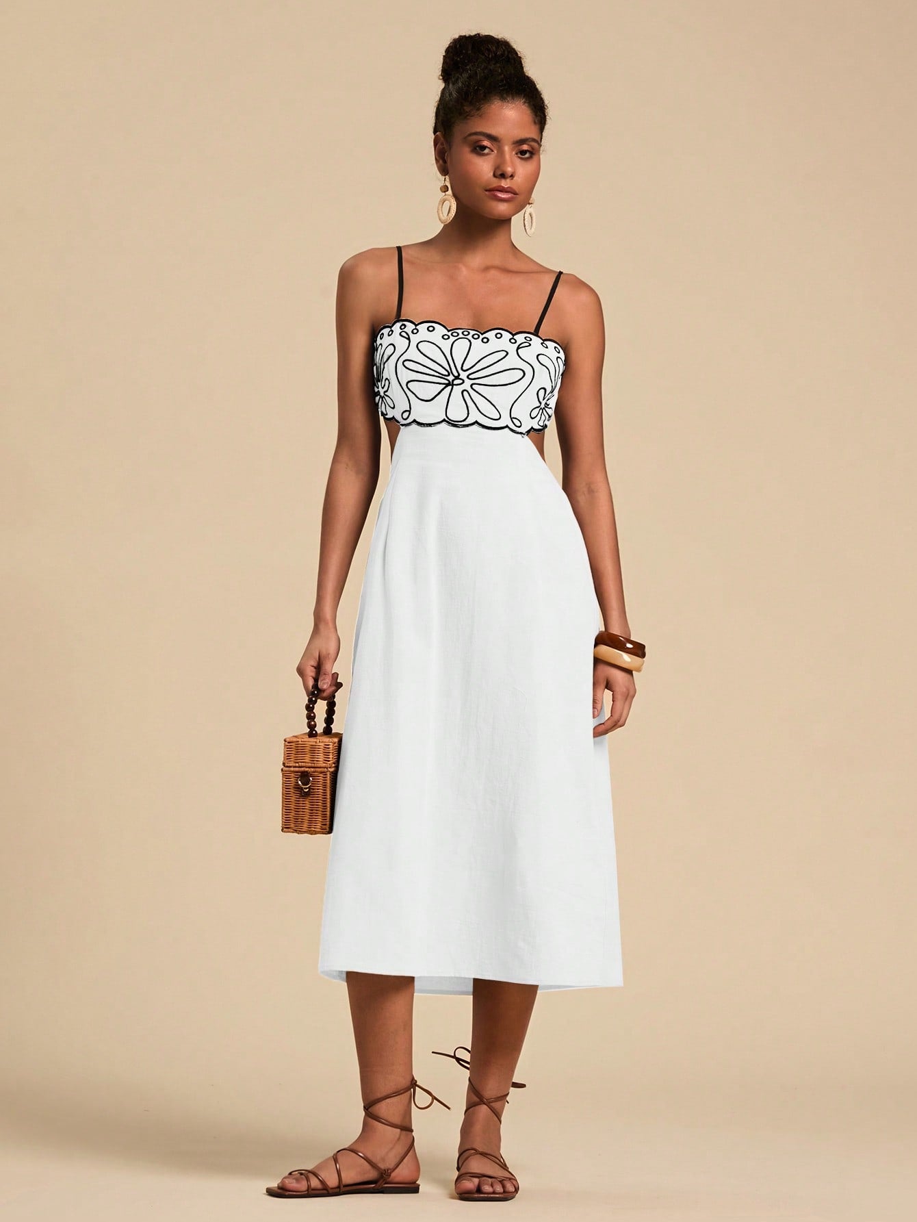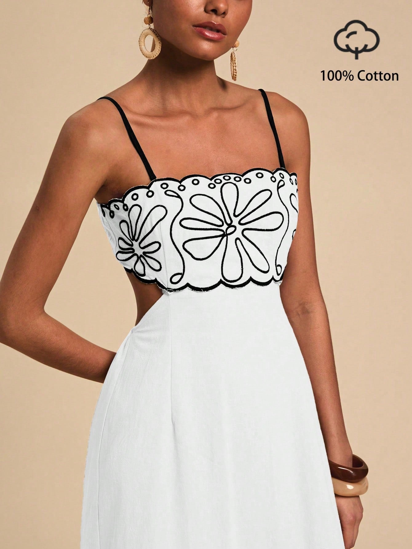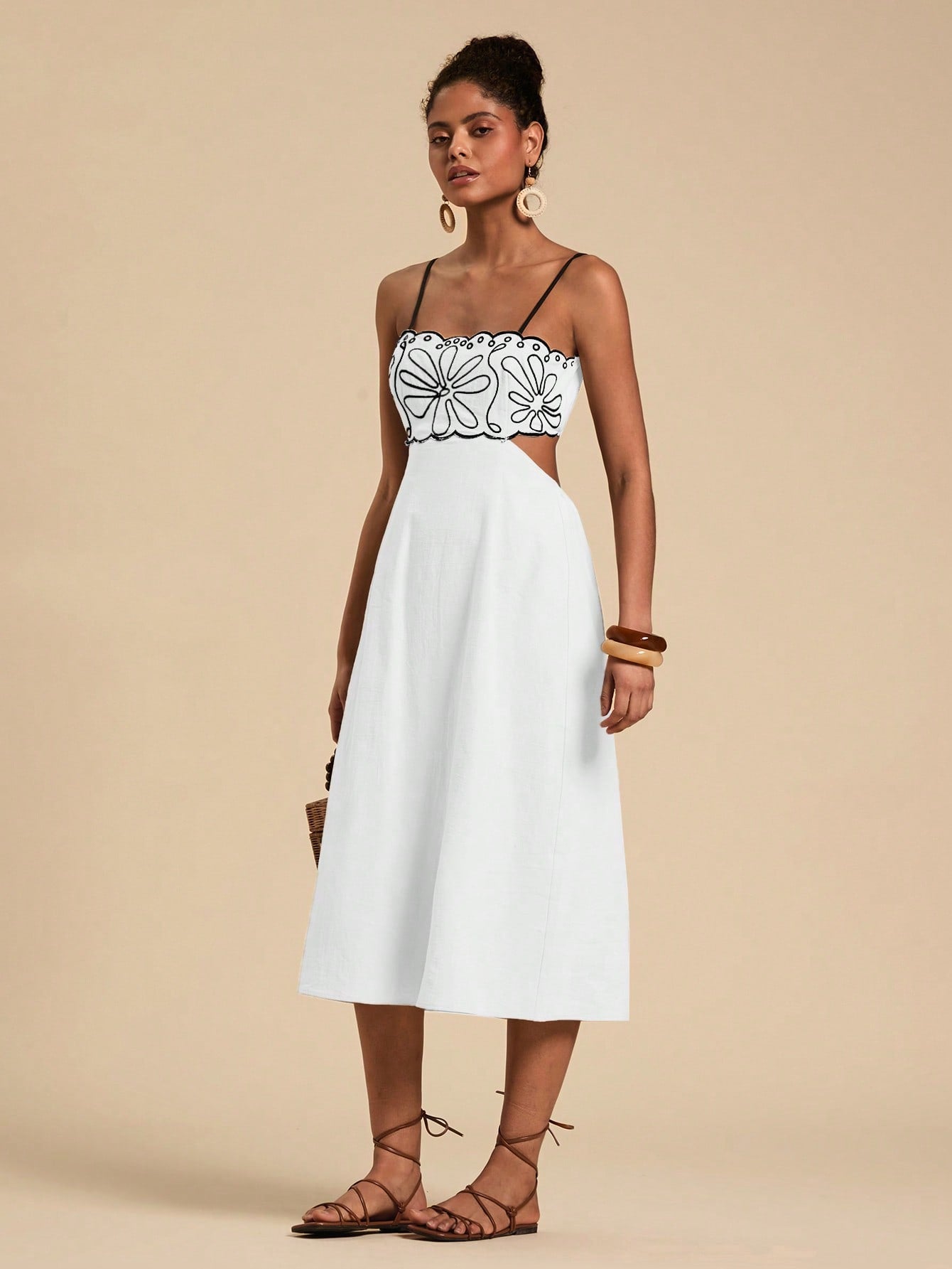 Travachic Summer Out Holiday Date Dress, Holiday Leisure Chest Embroidery Waist Hollowed Out A Swing