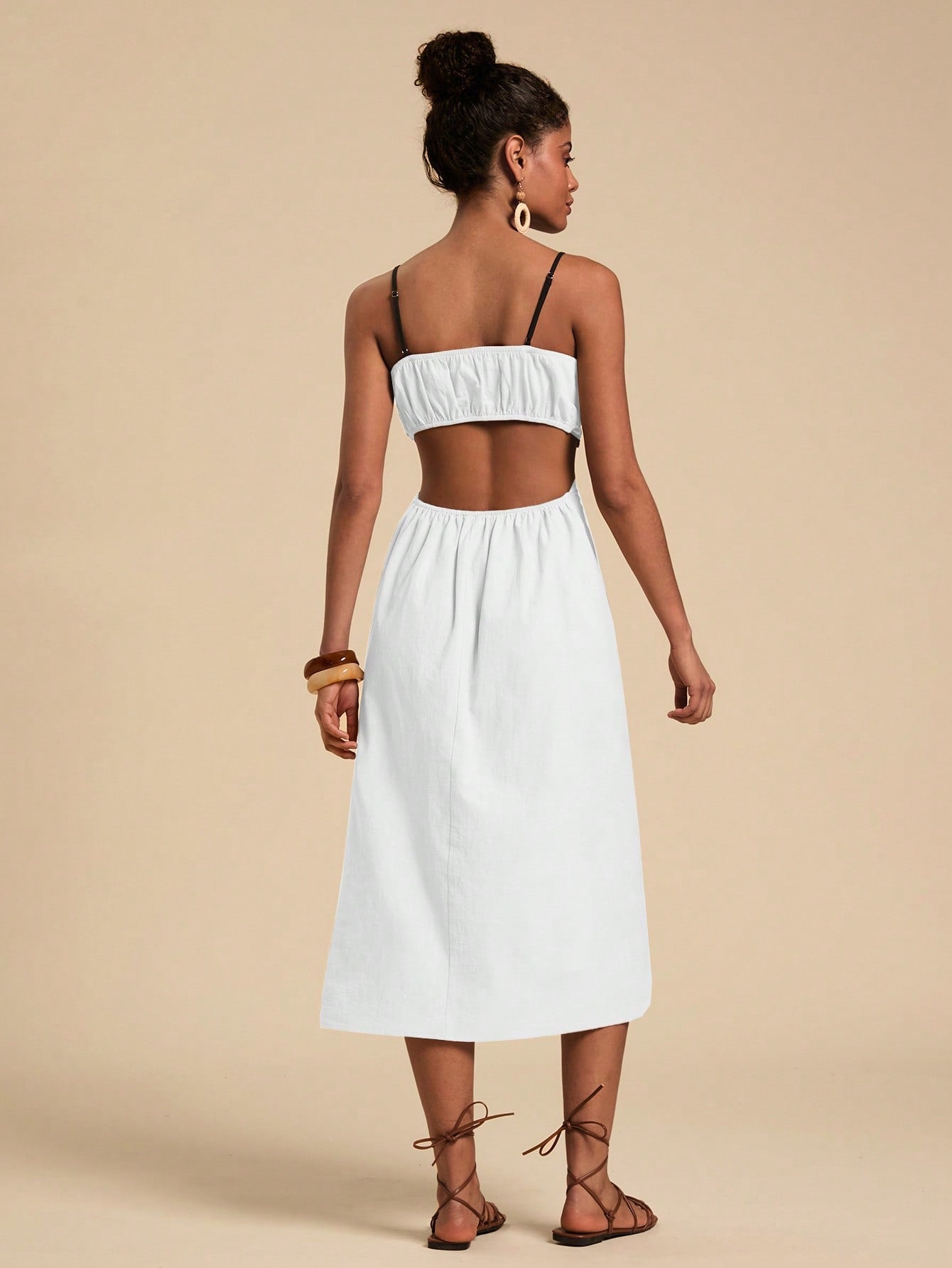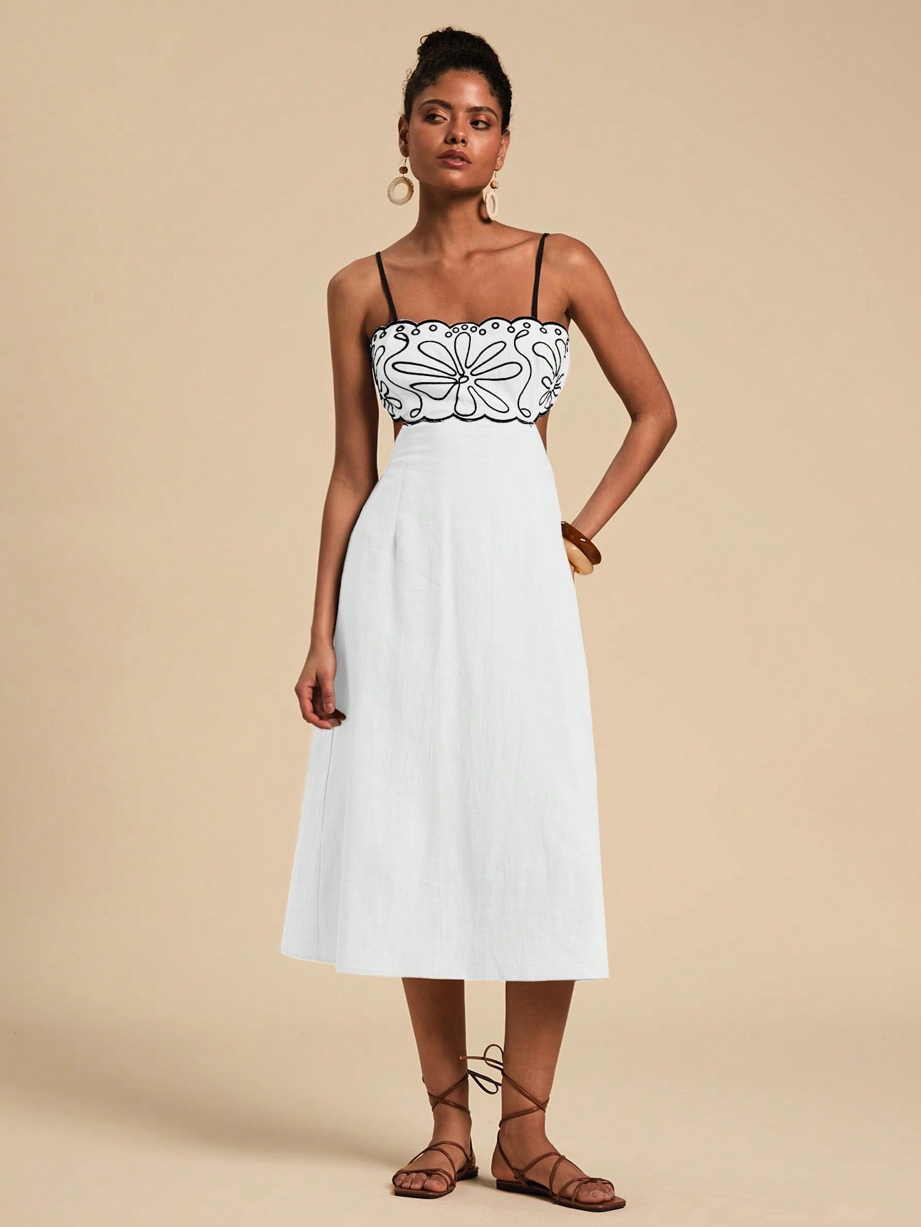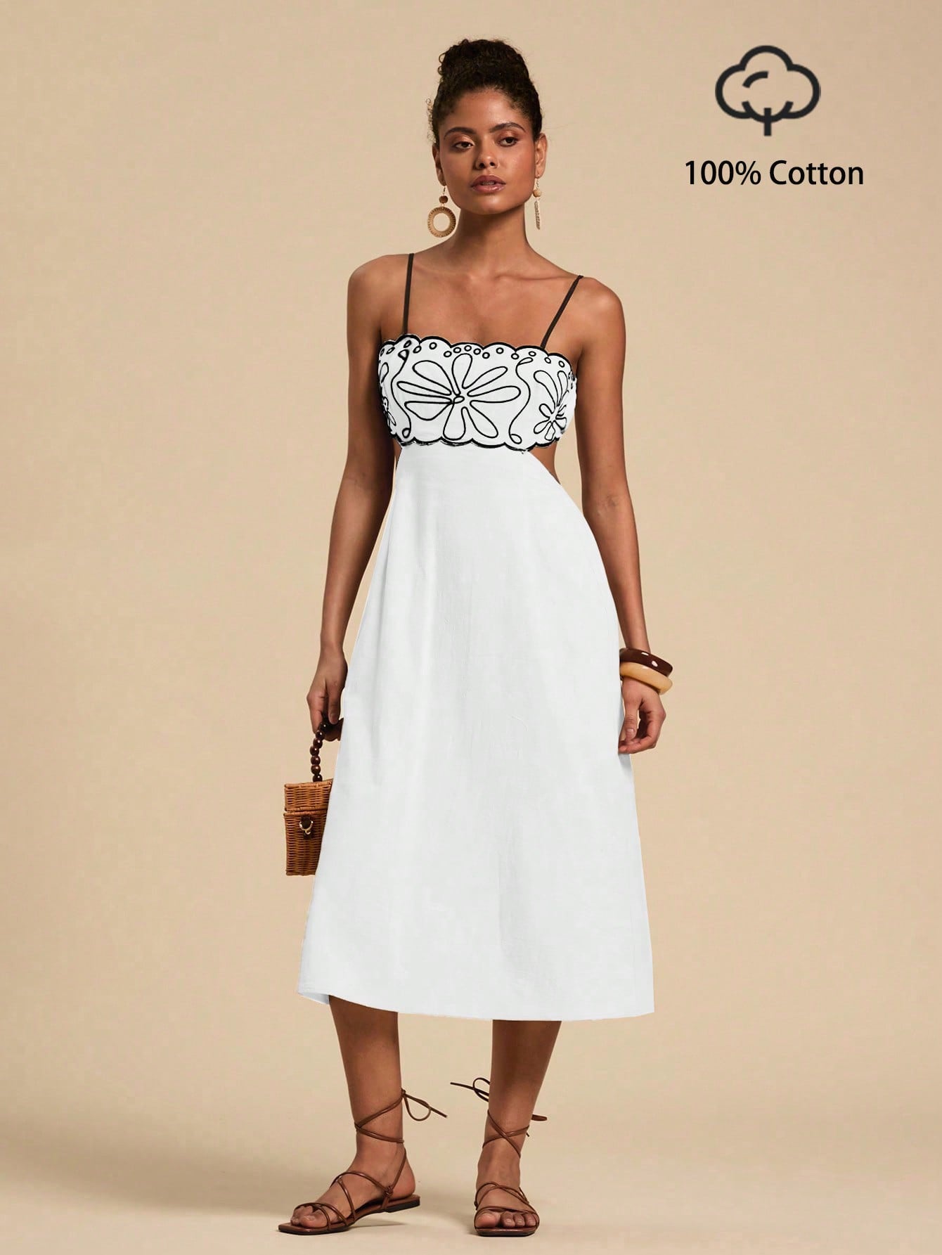 Travachic Summer Out Holiday Date Dress, Holiday Leisure Chest Embroidery Waist Hollowed Out A Swing