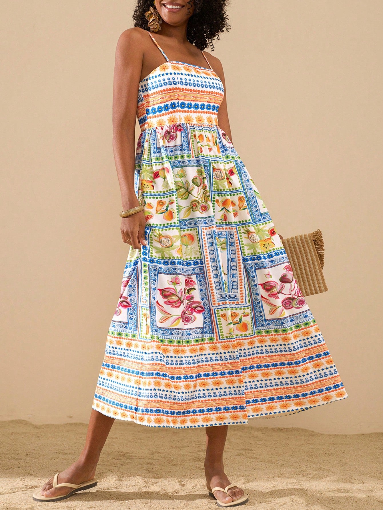 فستان ترافاشيك ماكسي بأشرطة مطبوعة منسوجة للنساء