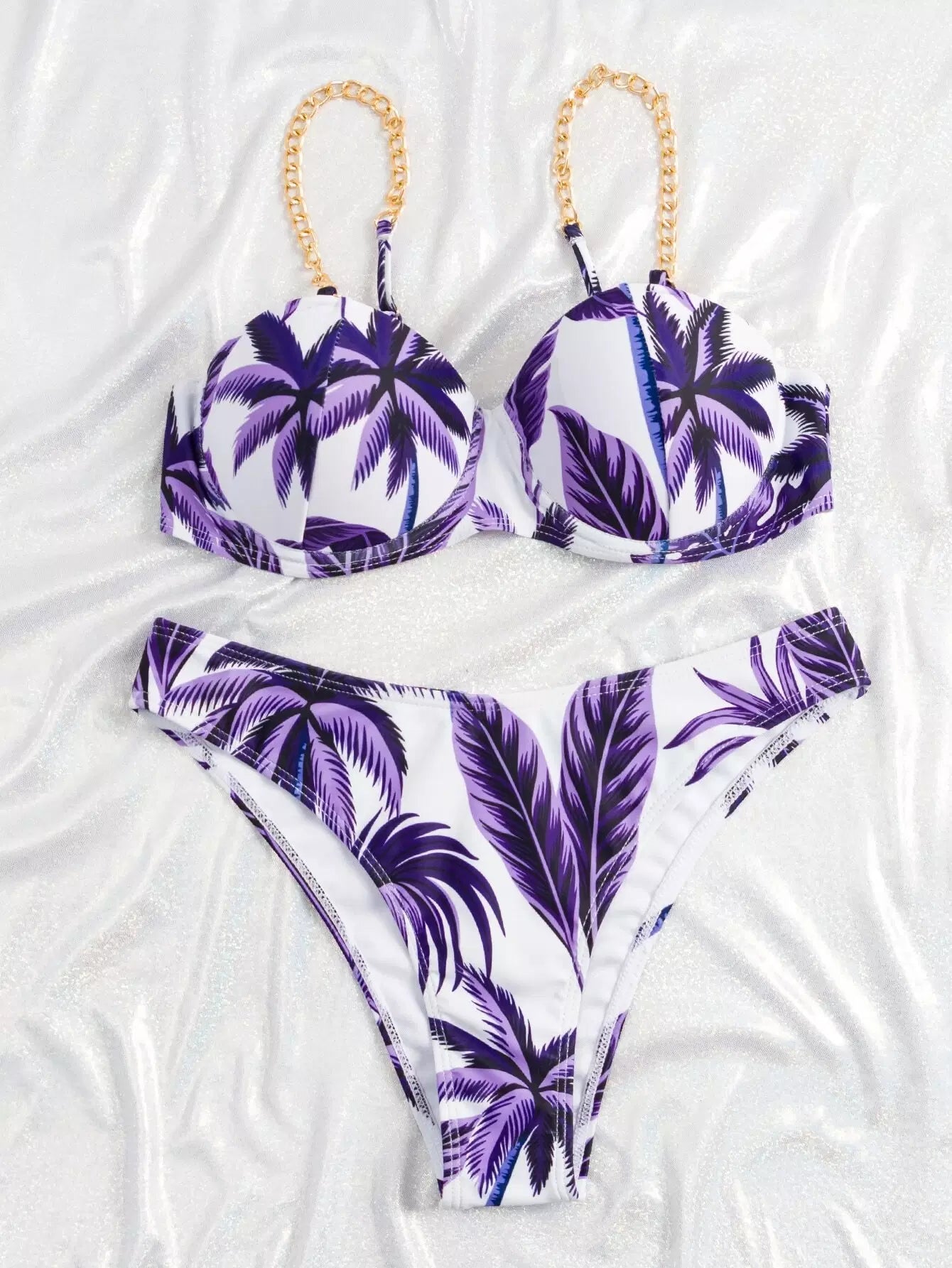 ملابس سباحة بيكيني بطبعة استوائية بحزام رفع بحزام استوائي