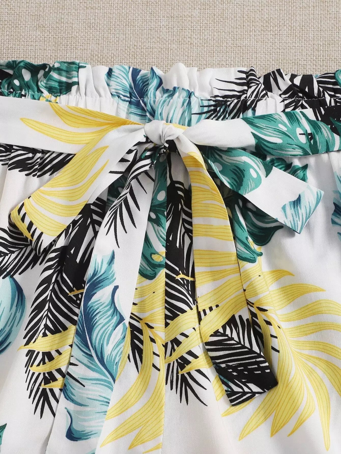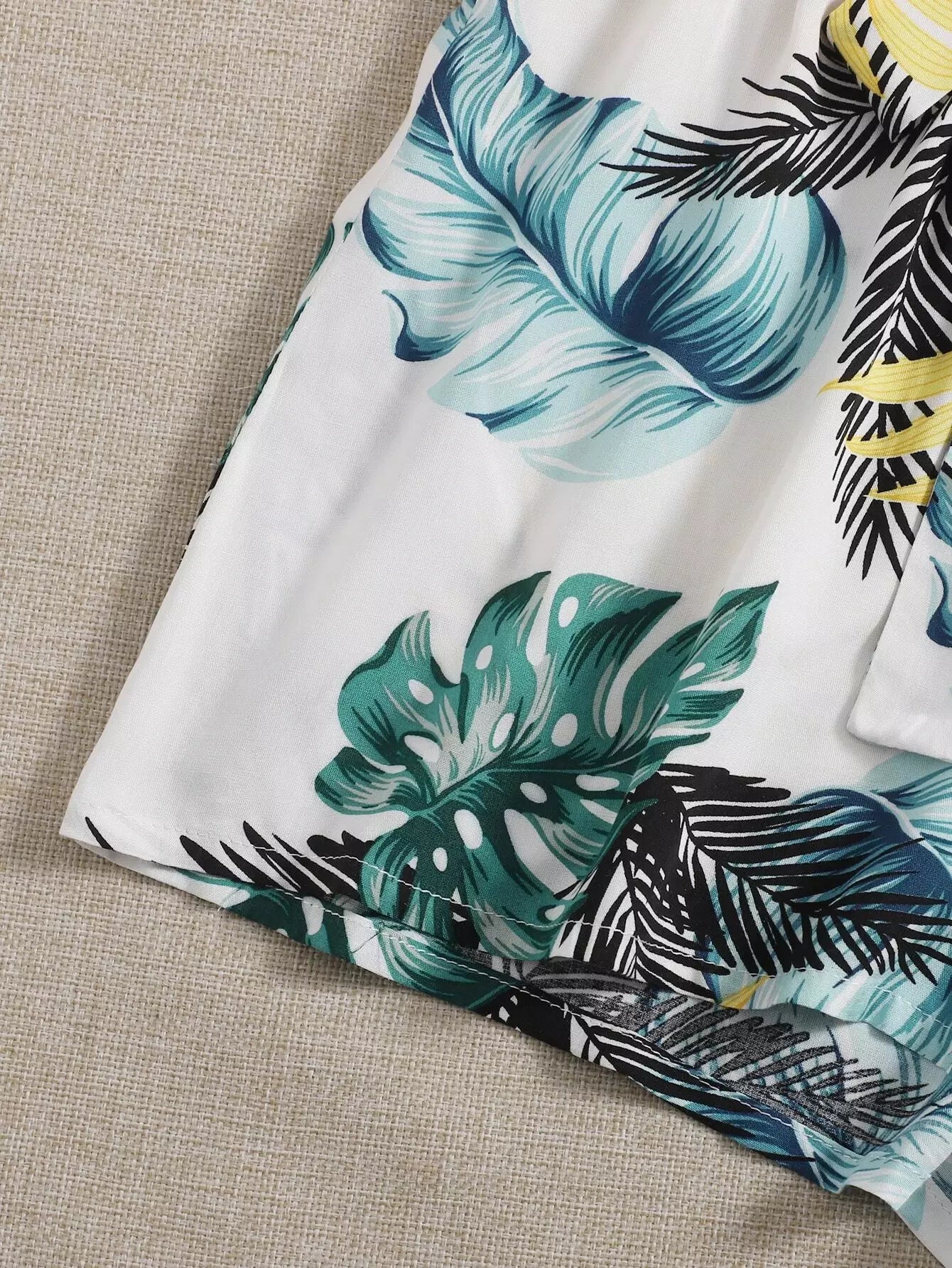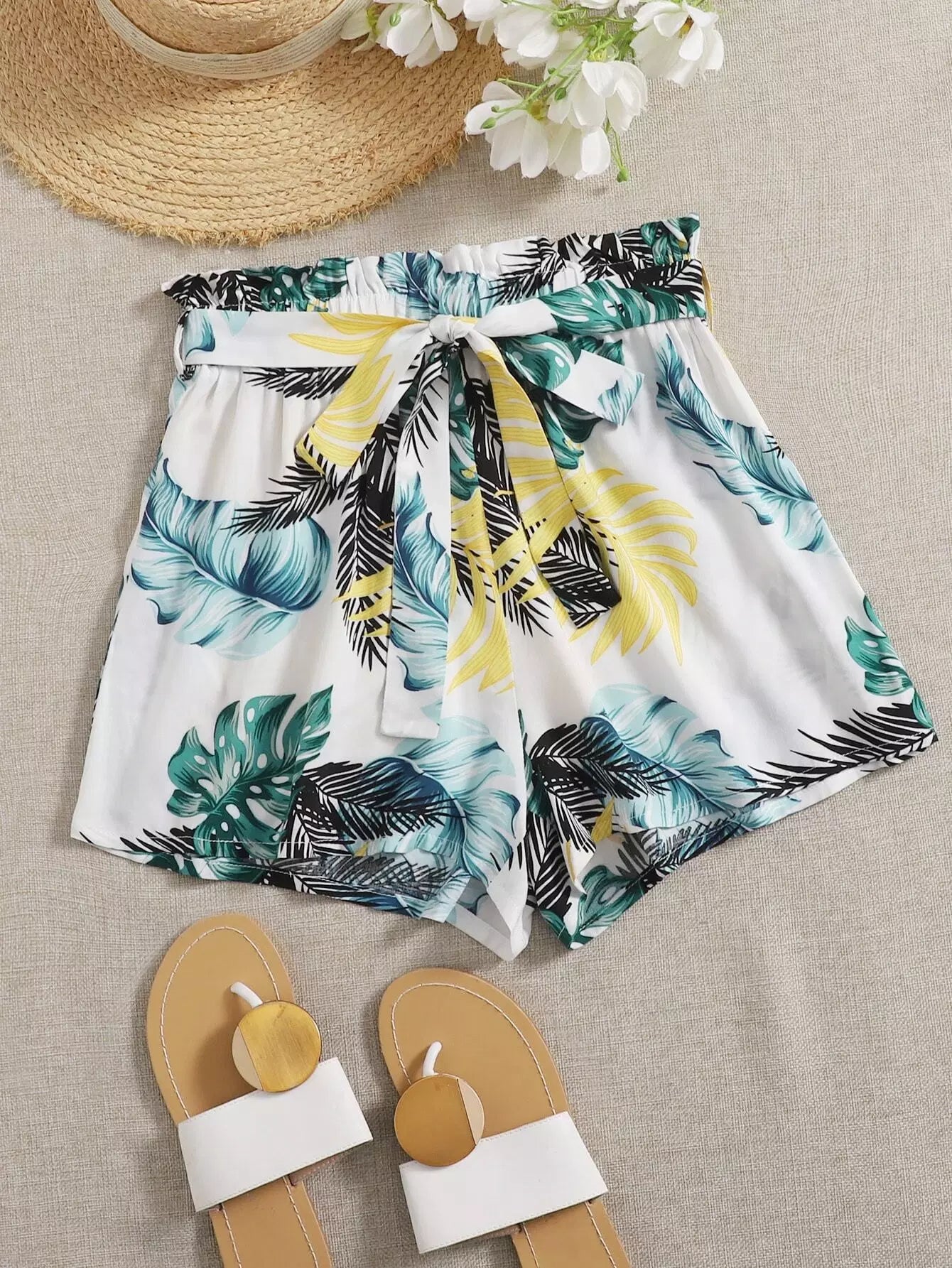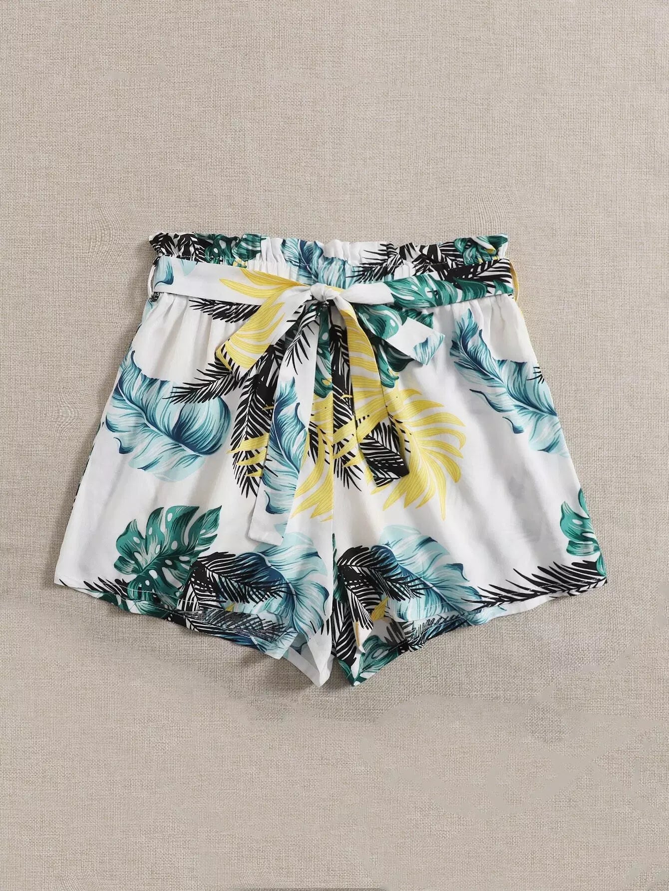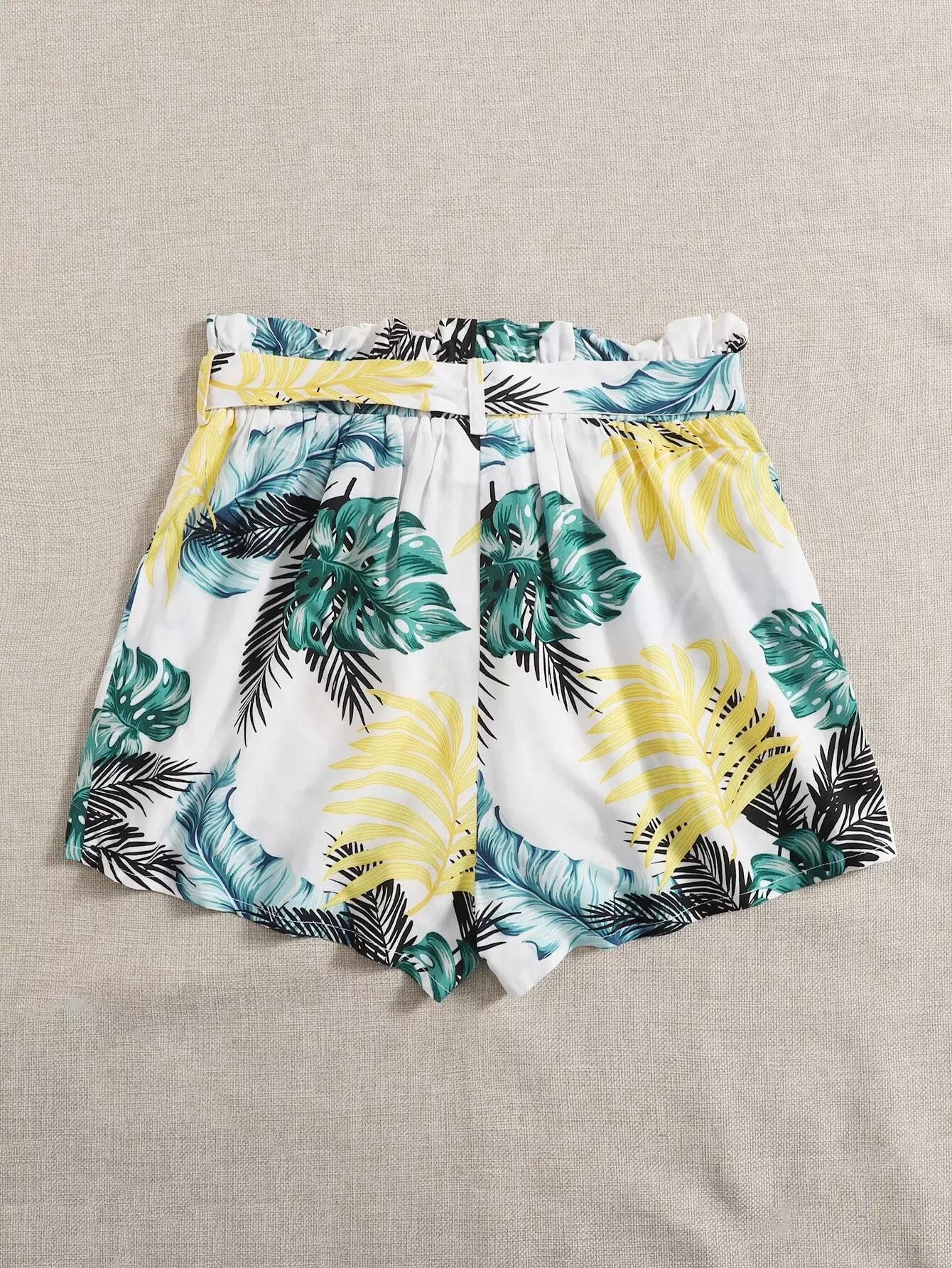 شورت خصر بطبعة ورقية استوائية بدون حزام