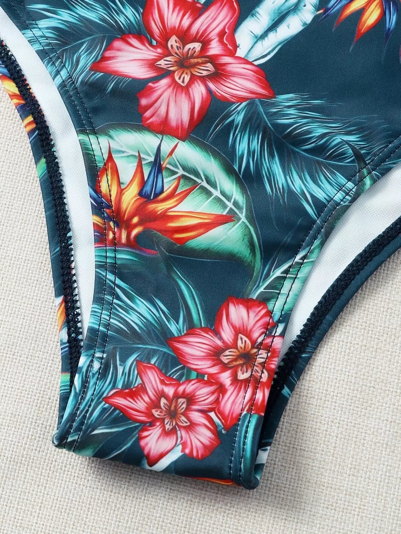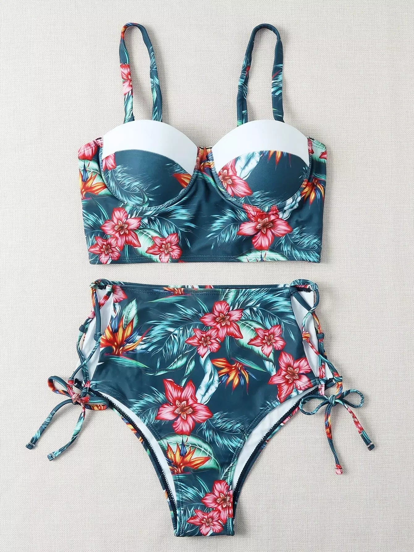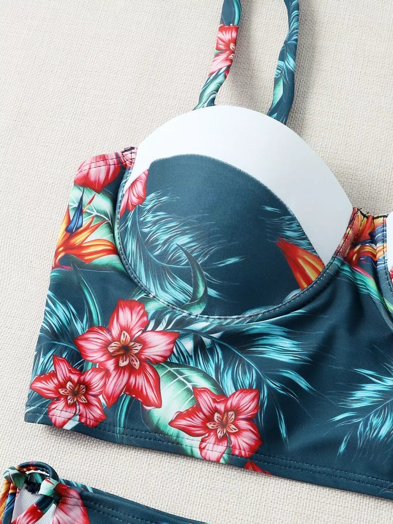 مايوه بيكيني سباحة استوائي بطبعة عشوائية من الدانتيل