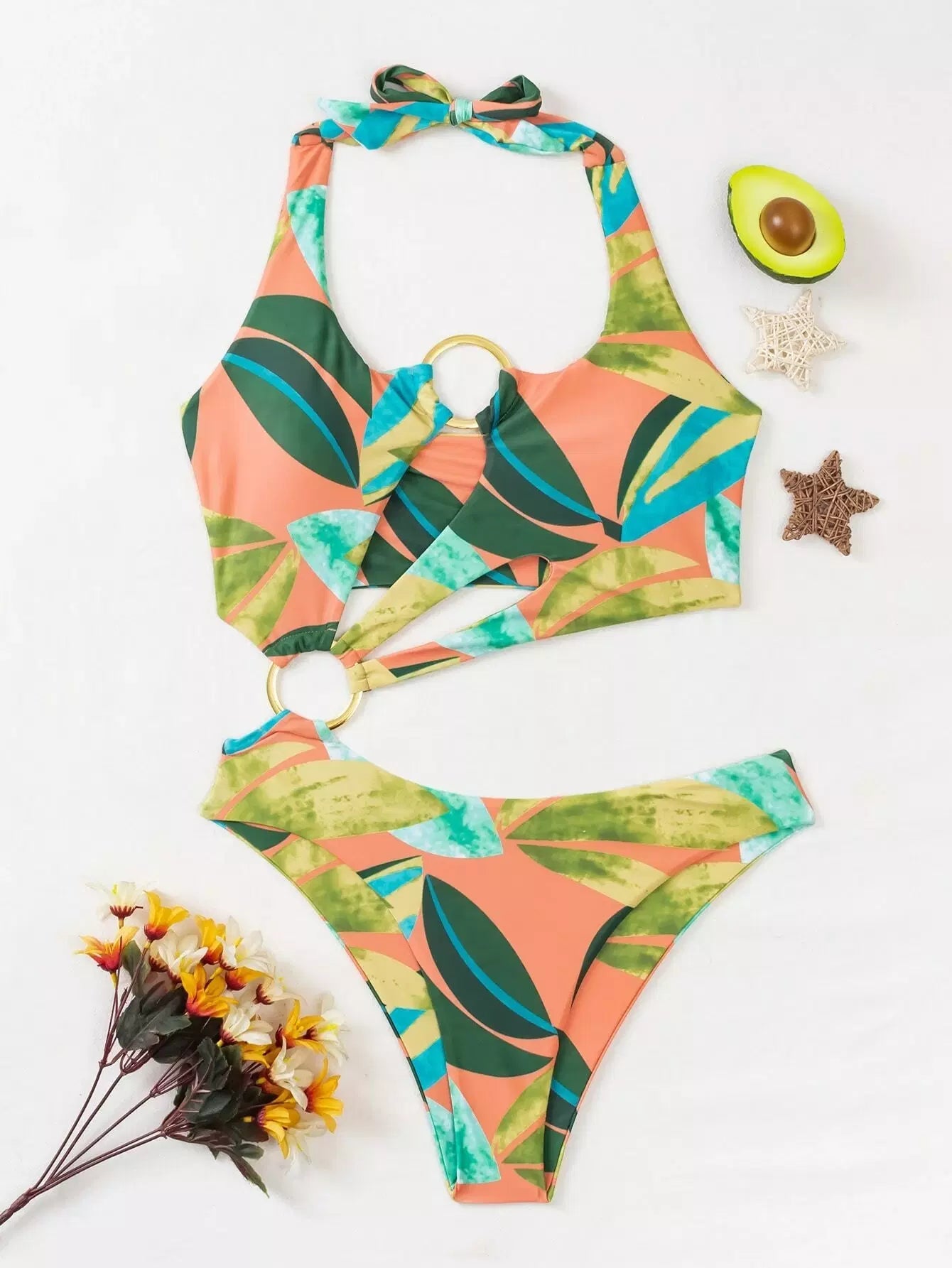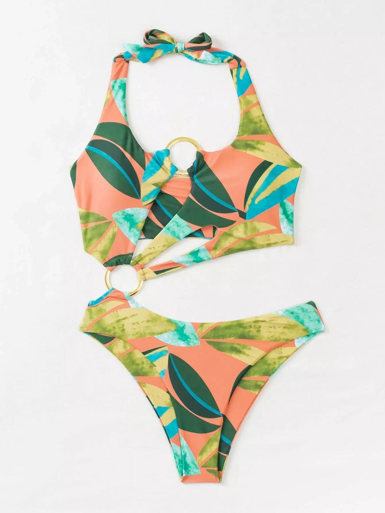 بدلة سباحة بقطعة واحدة من قطعة واحدة ذات رباط خاتم استوائي