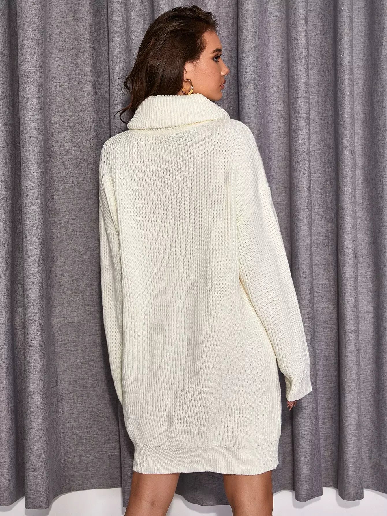 فستان برقبة سلحفاة منسدل الكتفين بدون حزام