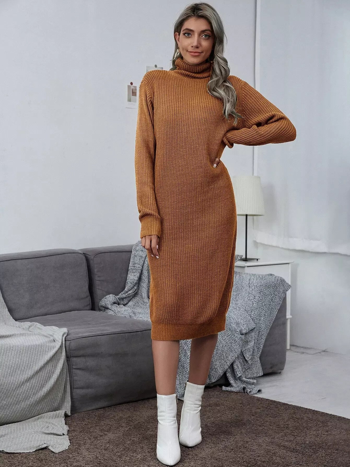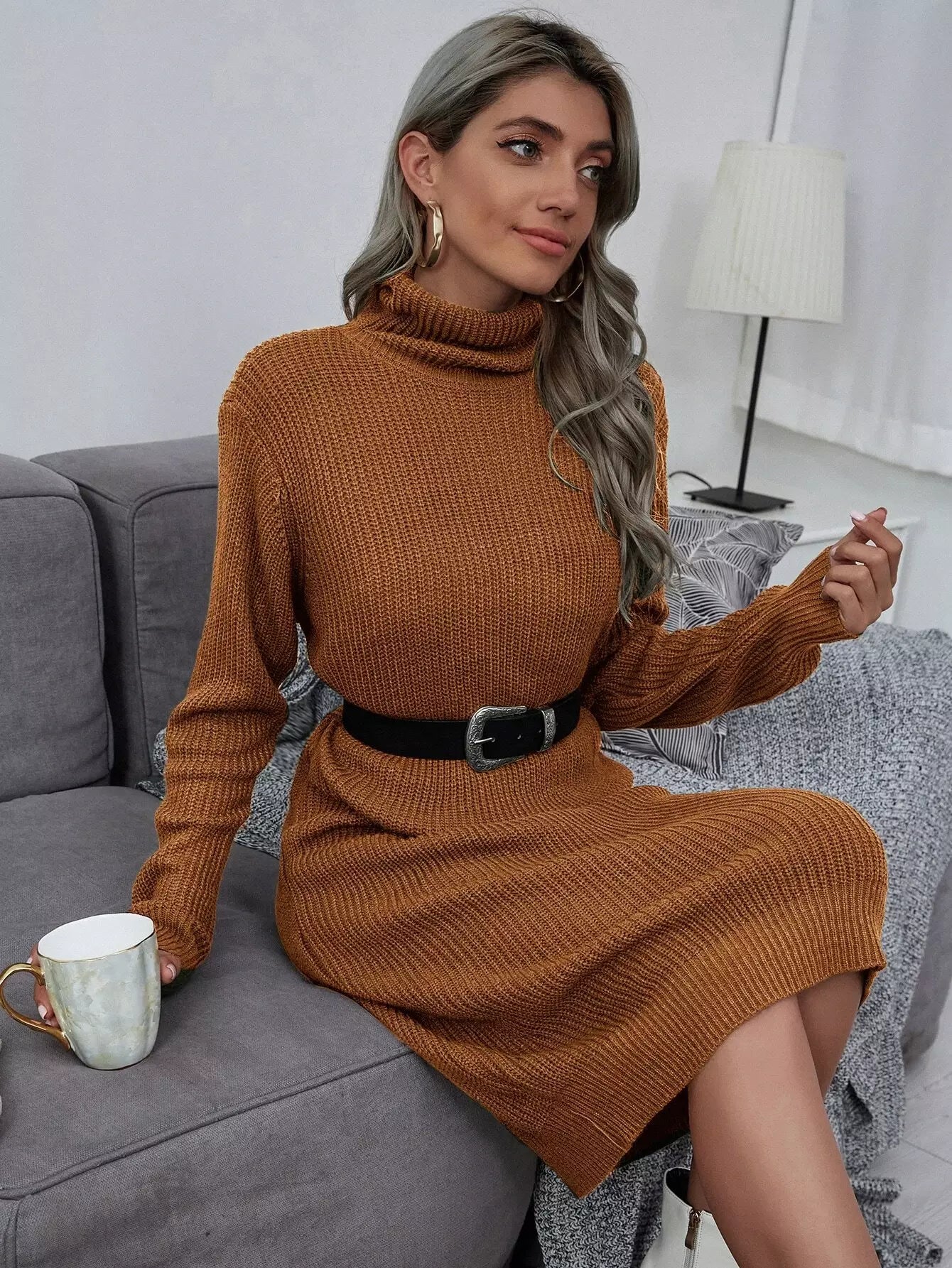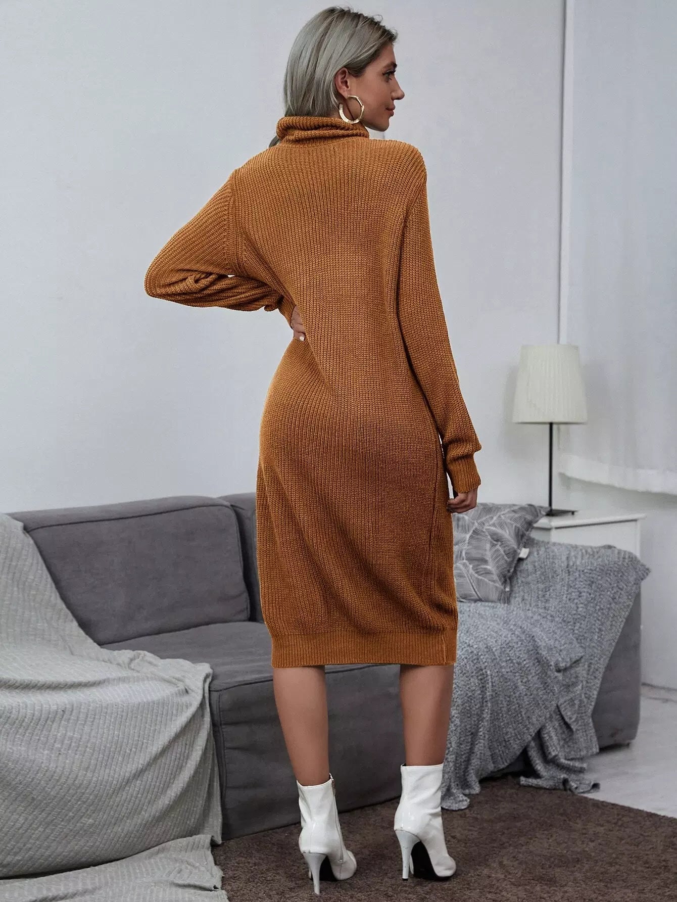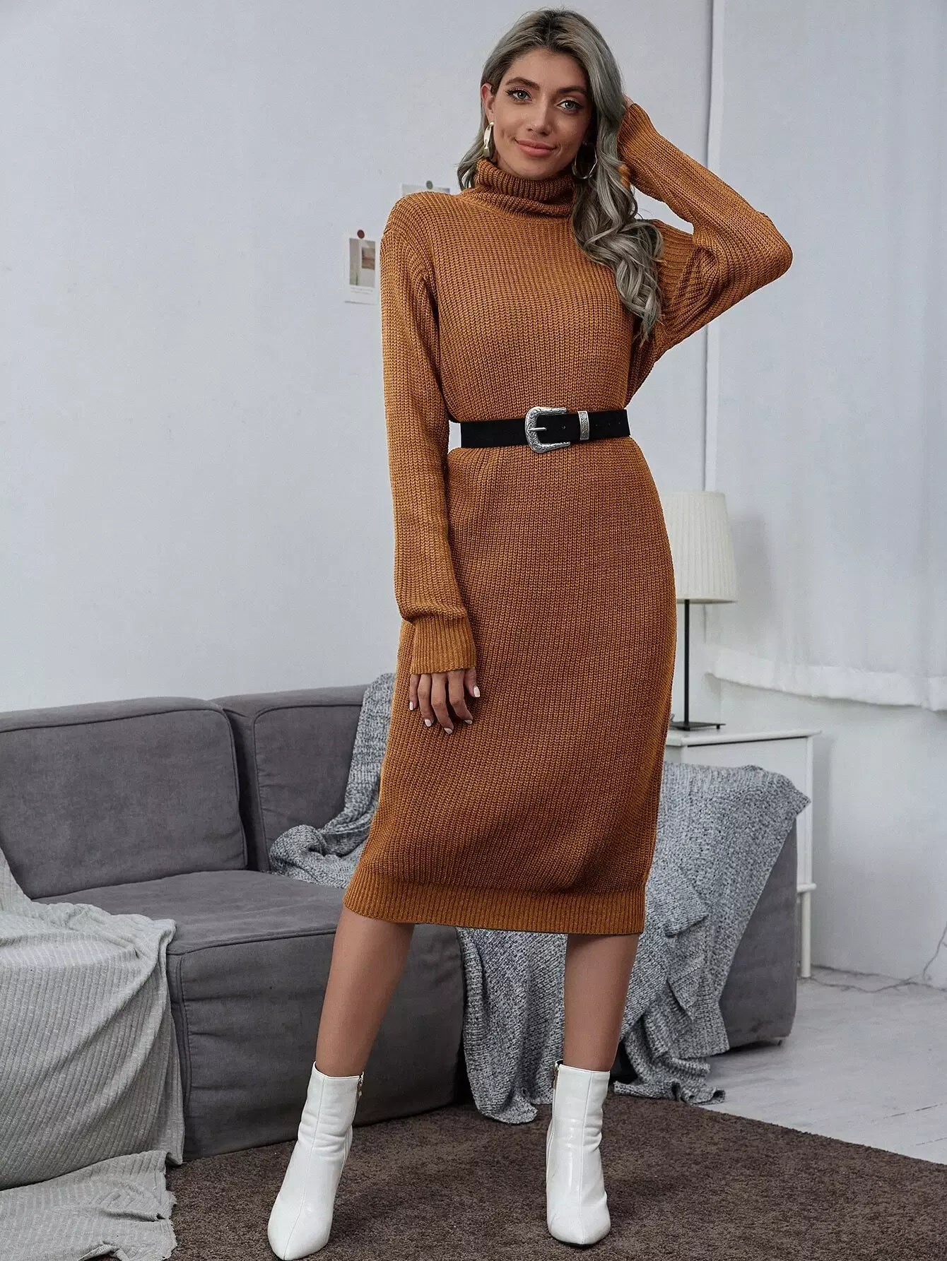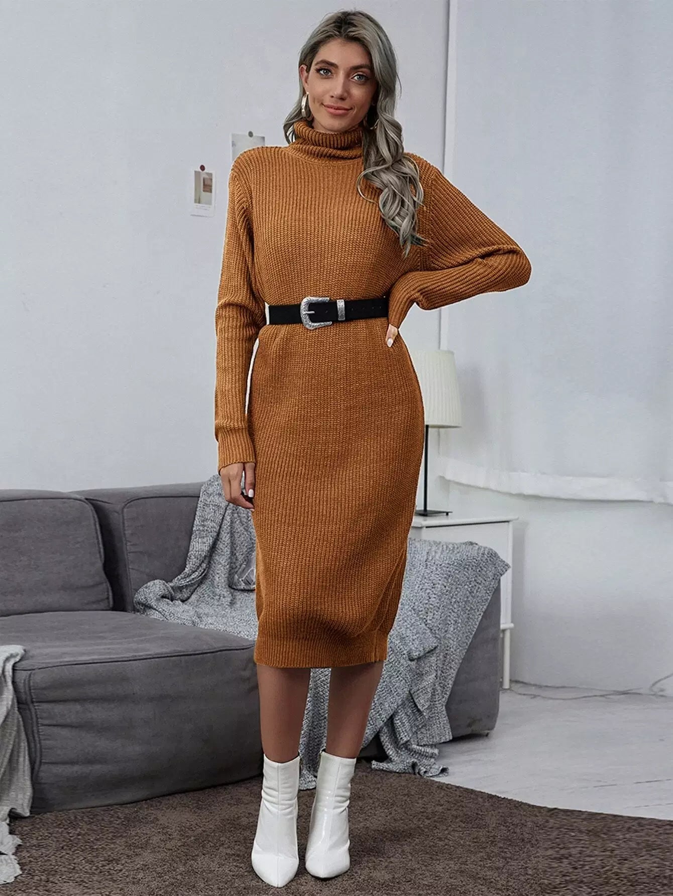 فستان برقبة سلحفاة بسترة ميدي بدون حزام