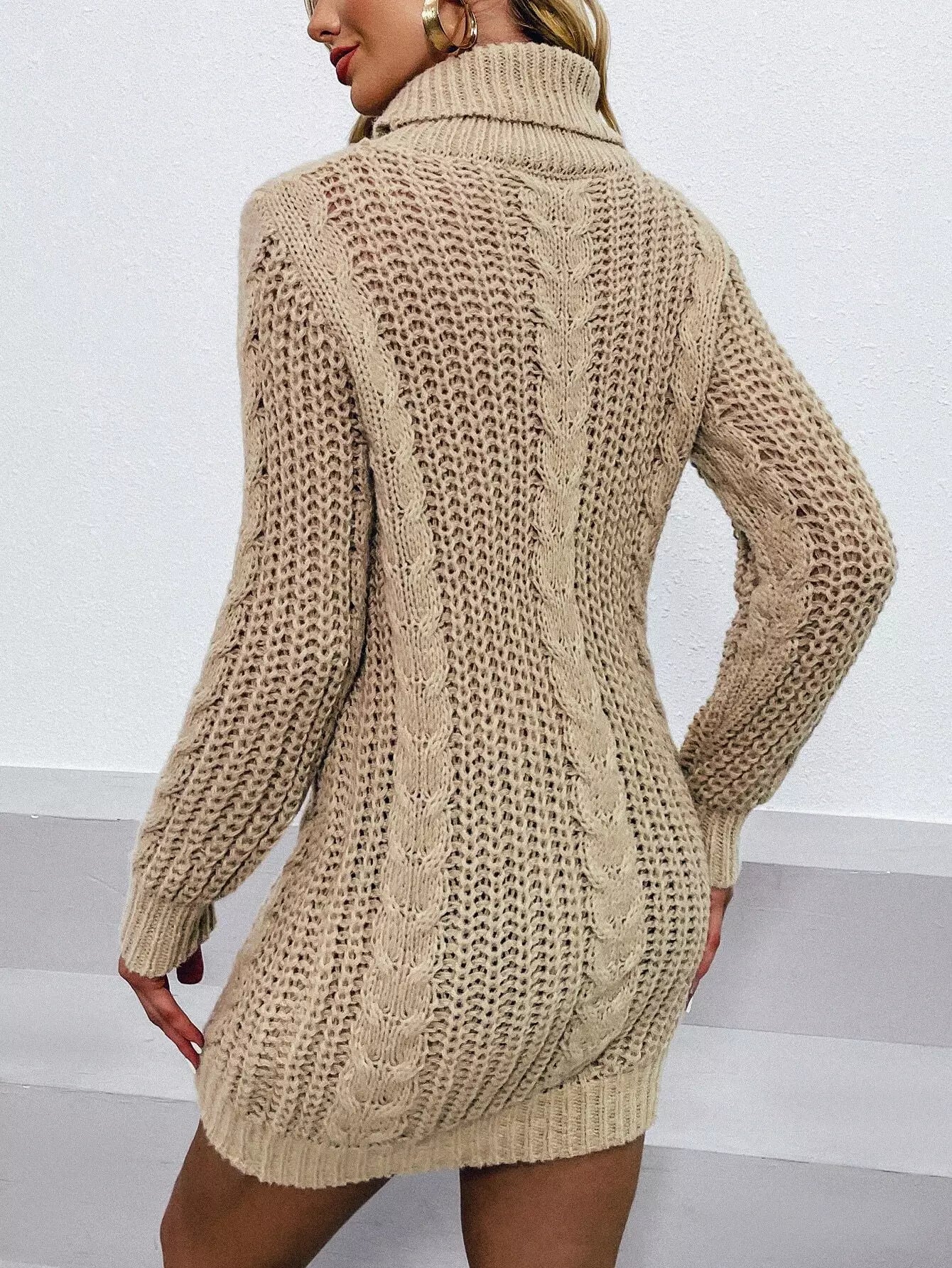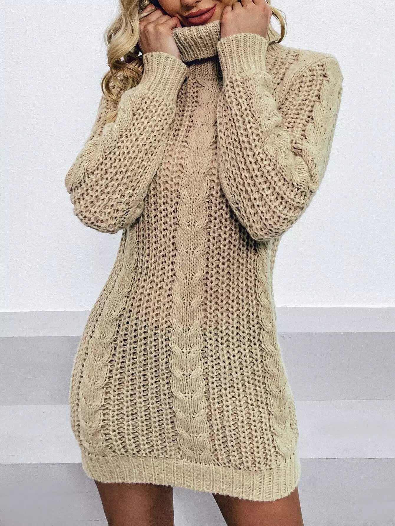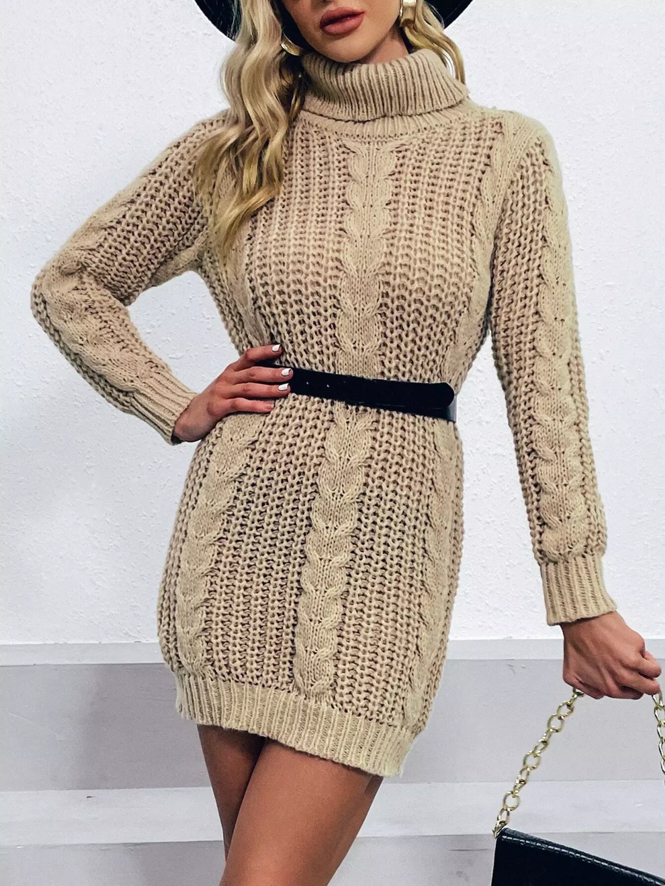 فستان سترة متماسكة بياقة مدورة بدون حزام