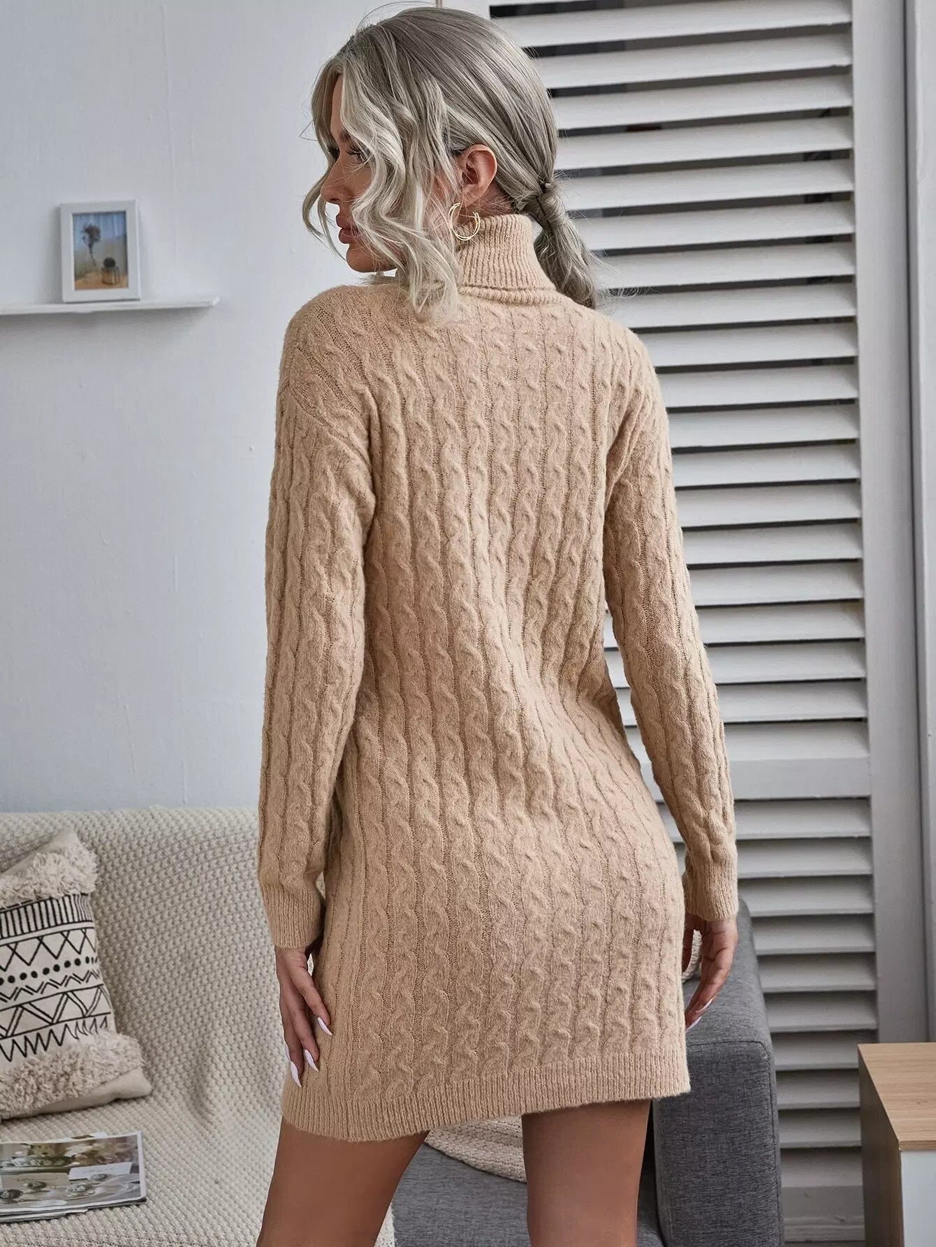 فستان كنزة بياقة كبلية محبوكة بياقة مدورة بدون حزام