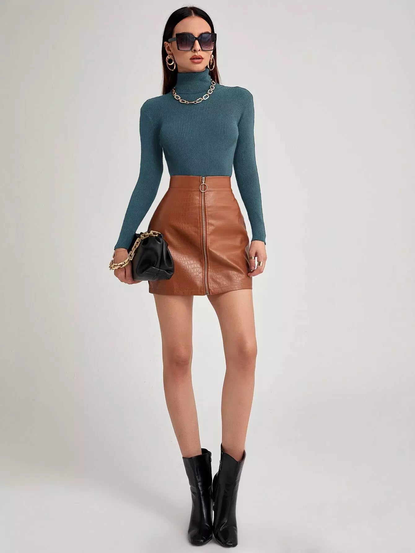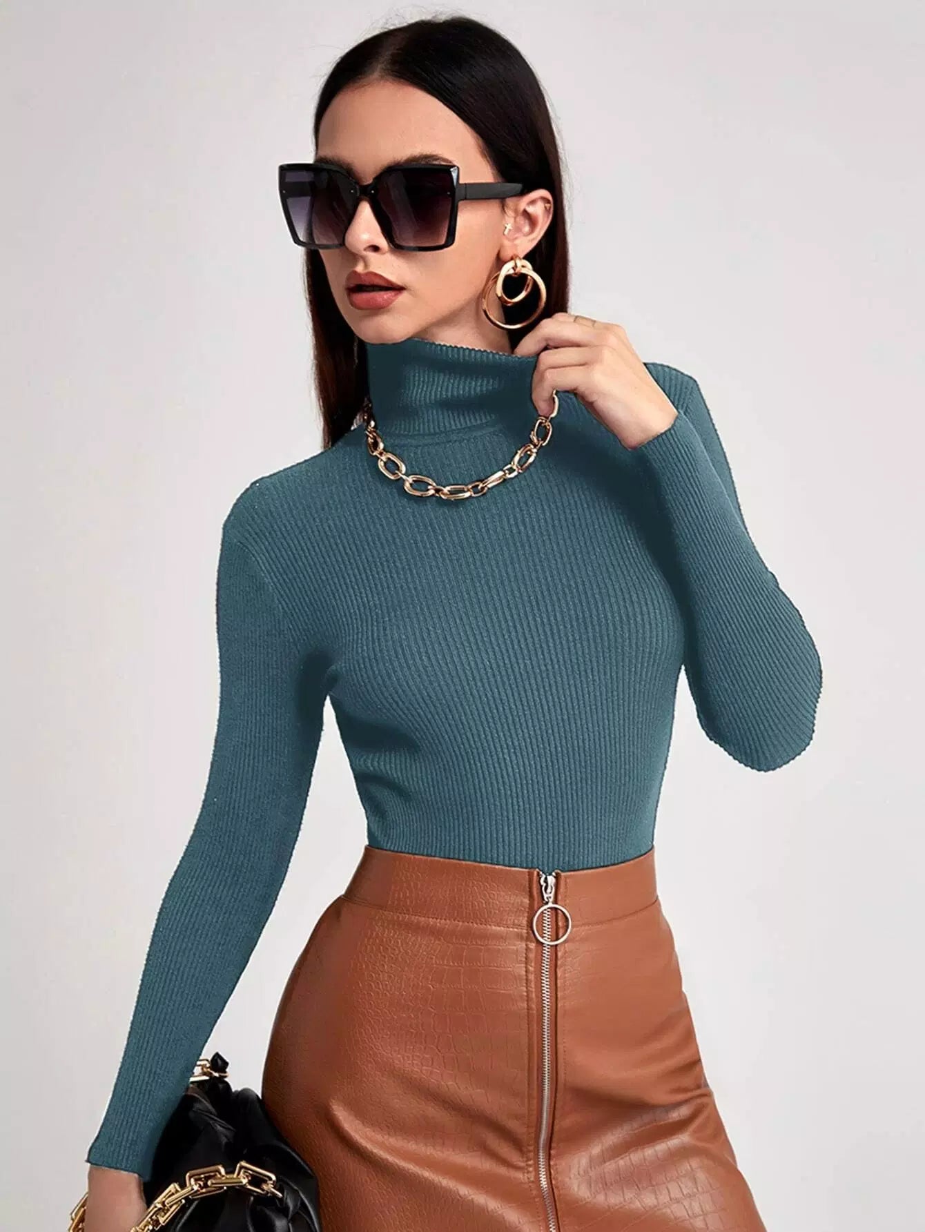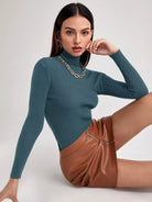 كنزة محبوكة مضلعة ذات ياقة مدورة