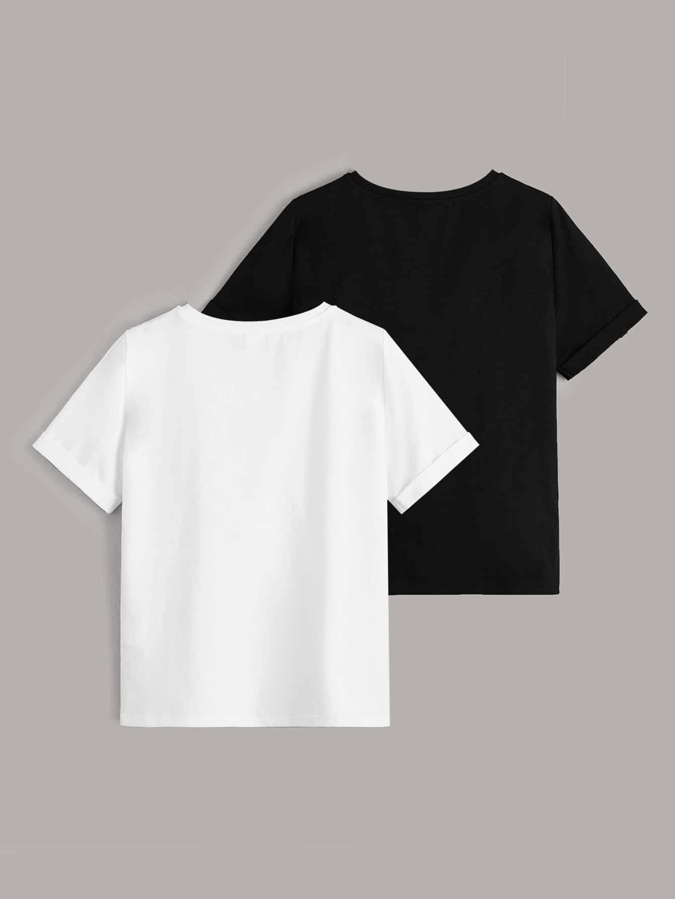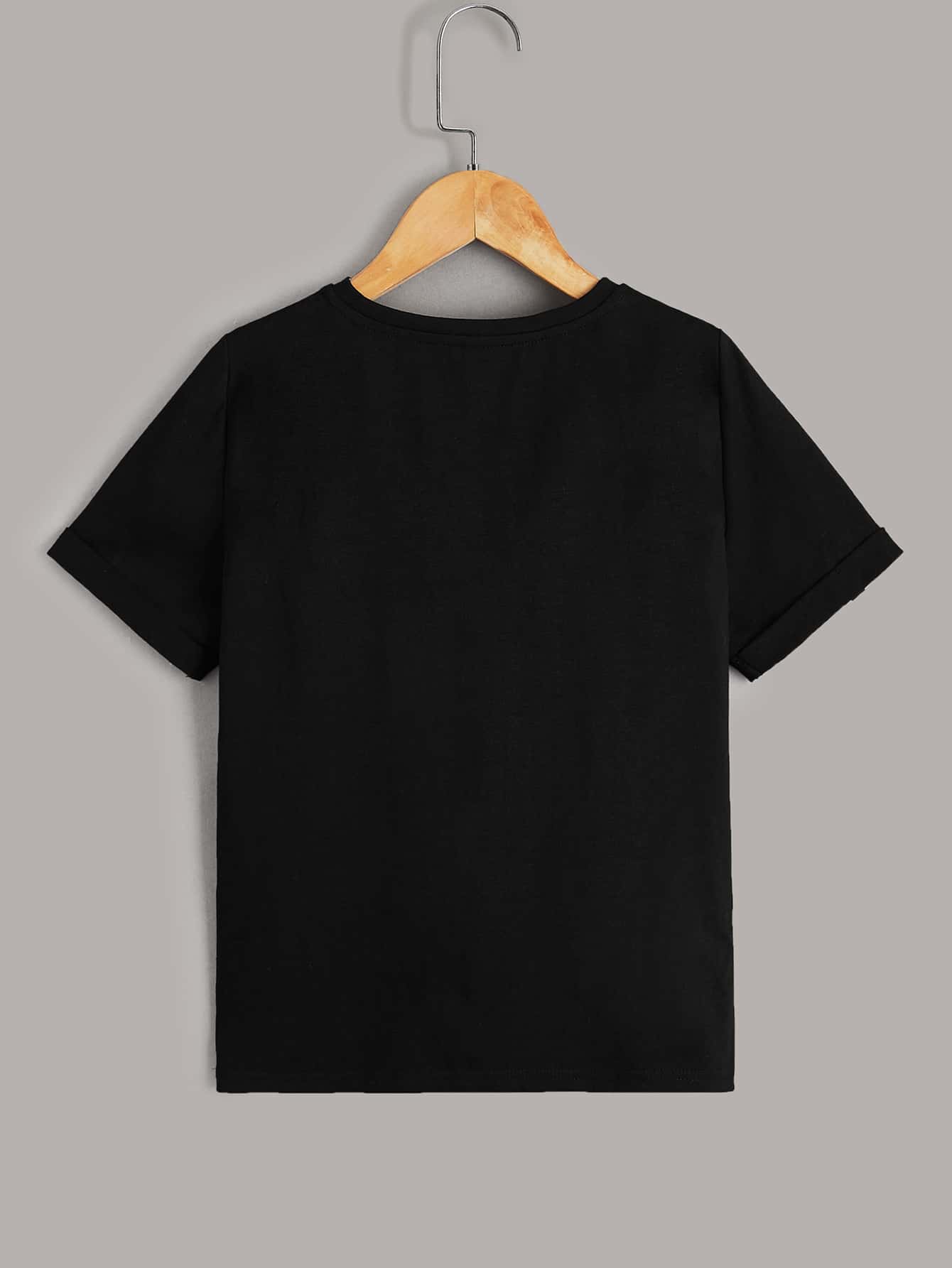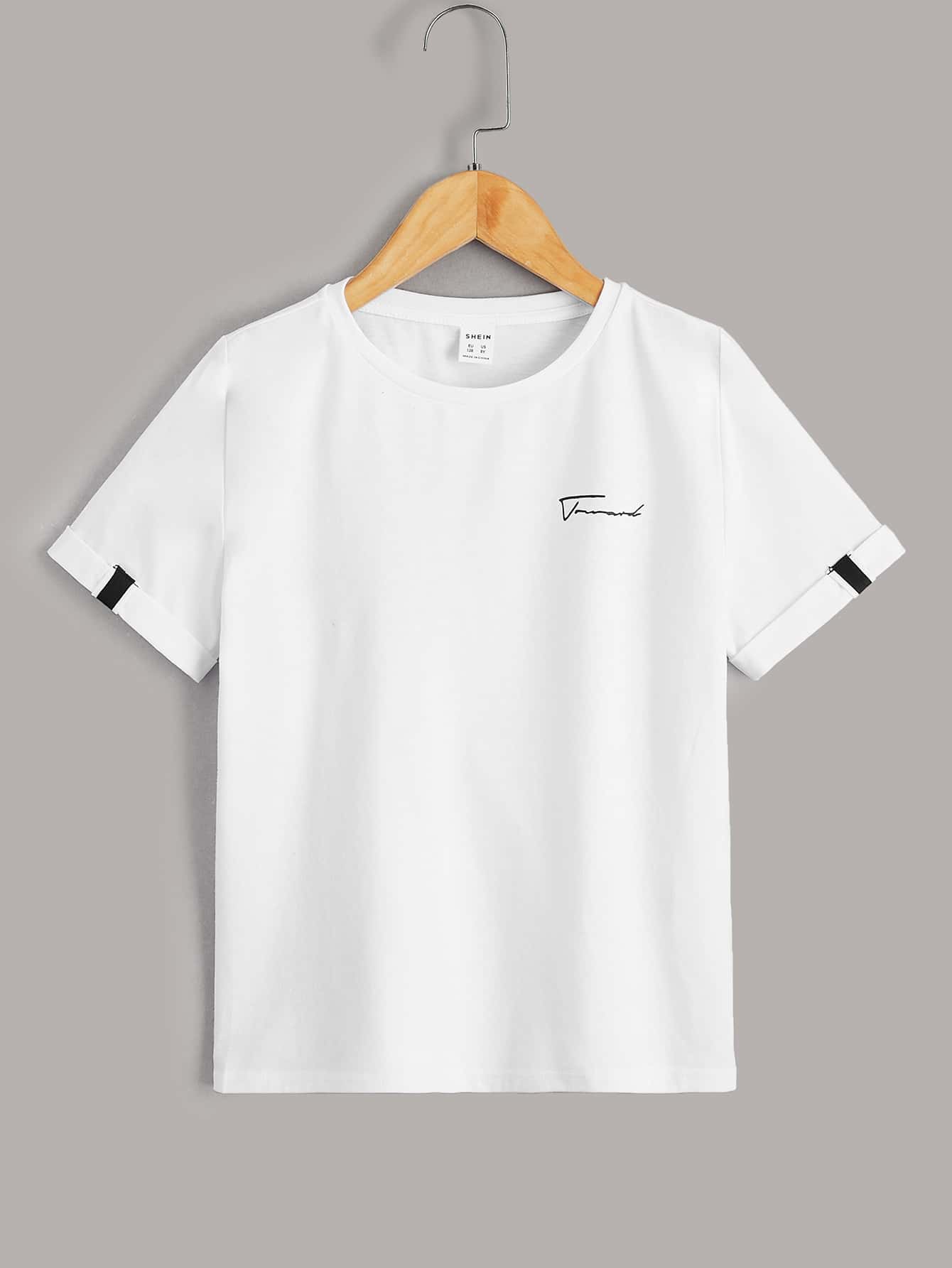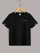 تيشيرت للأولاد المراهقين مكون من قطعتين مزين بشريط لاصق عليه حروف ورسومات.