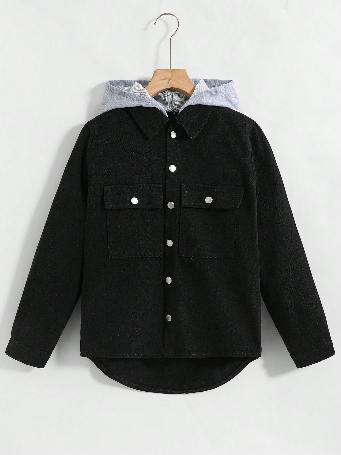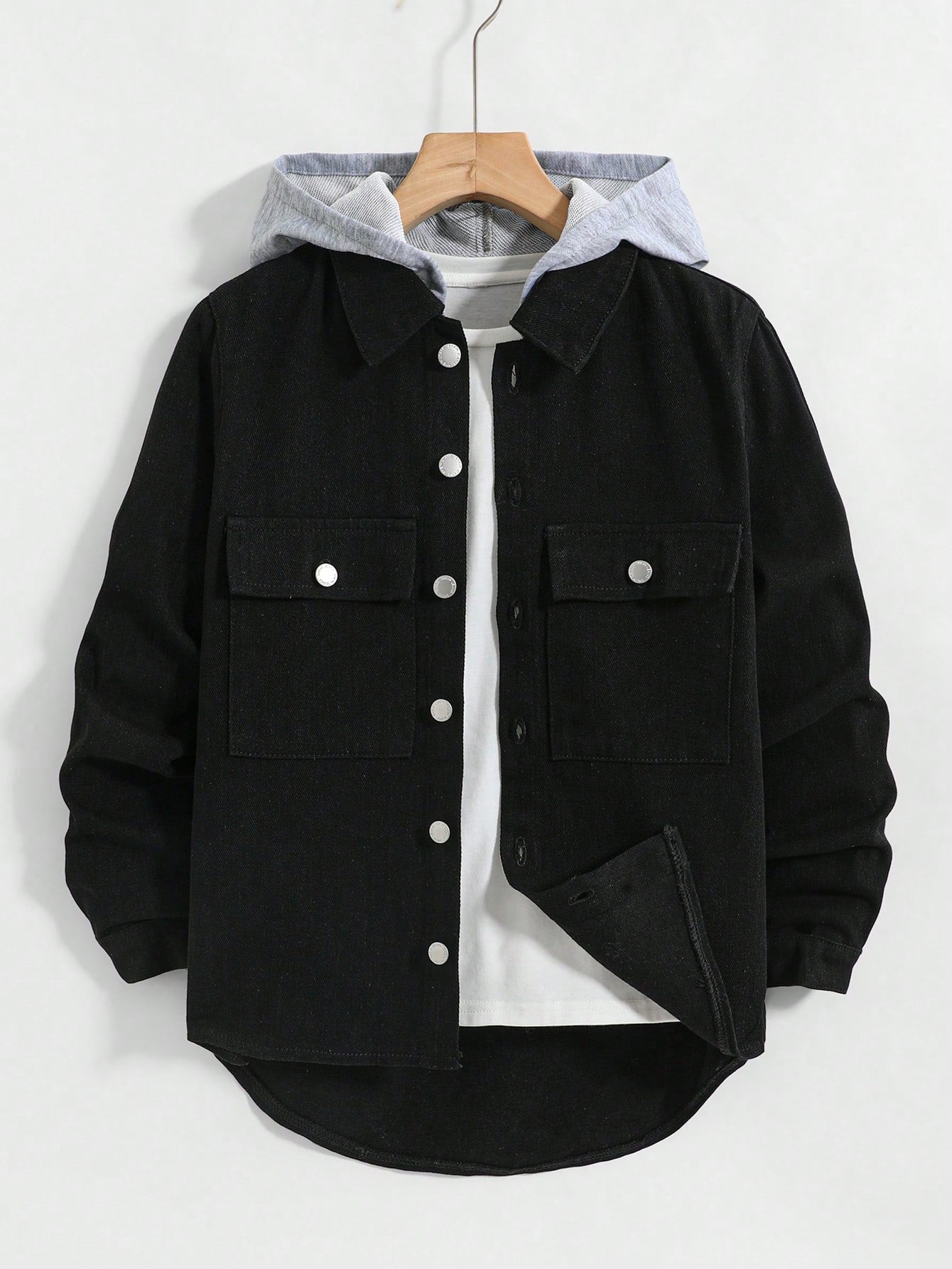 أزياء أولاد مراهقين عصرية، مستوحاة من موضة الألفية الجديدة، بنمط كلاسيكي، رمادي محبوك، بغطاء رأس، مرقع، وبنطال جينز أسود.