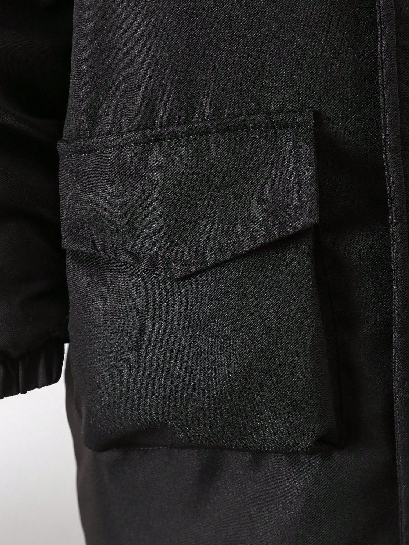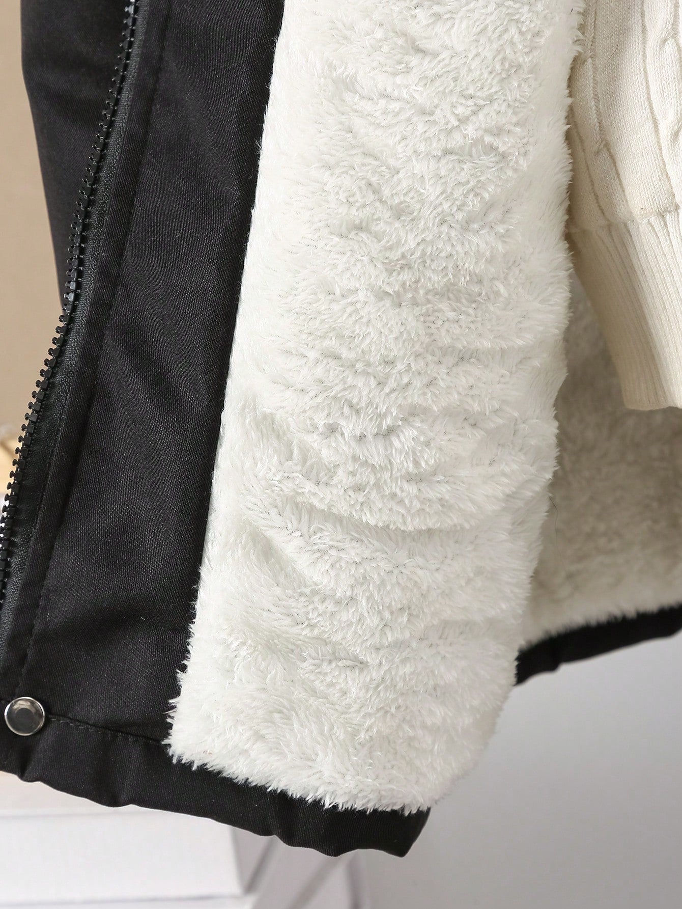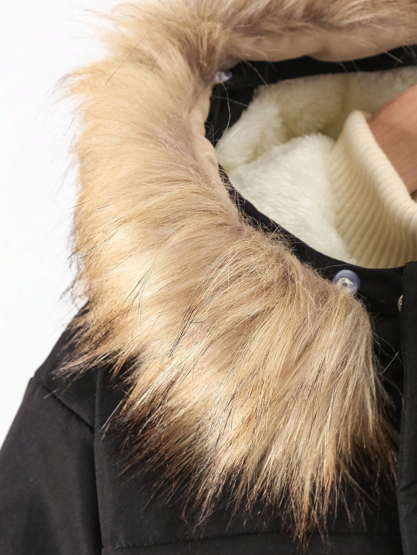 Tween Boy Winter Warm Casual Thermal Lined Zip-Up Patchwork Fluffy Hood Padded Coat