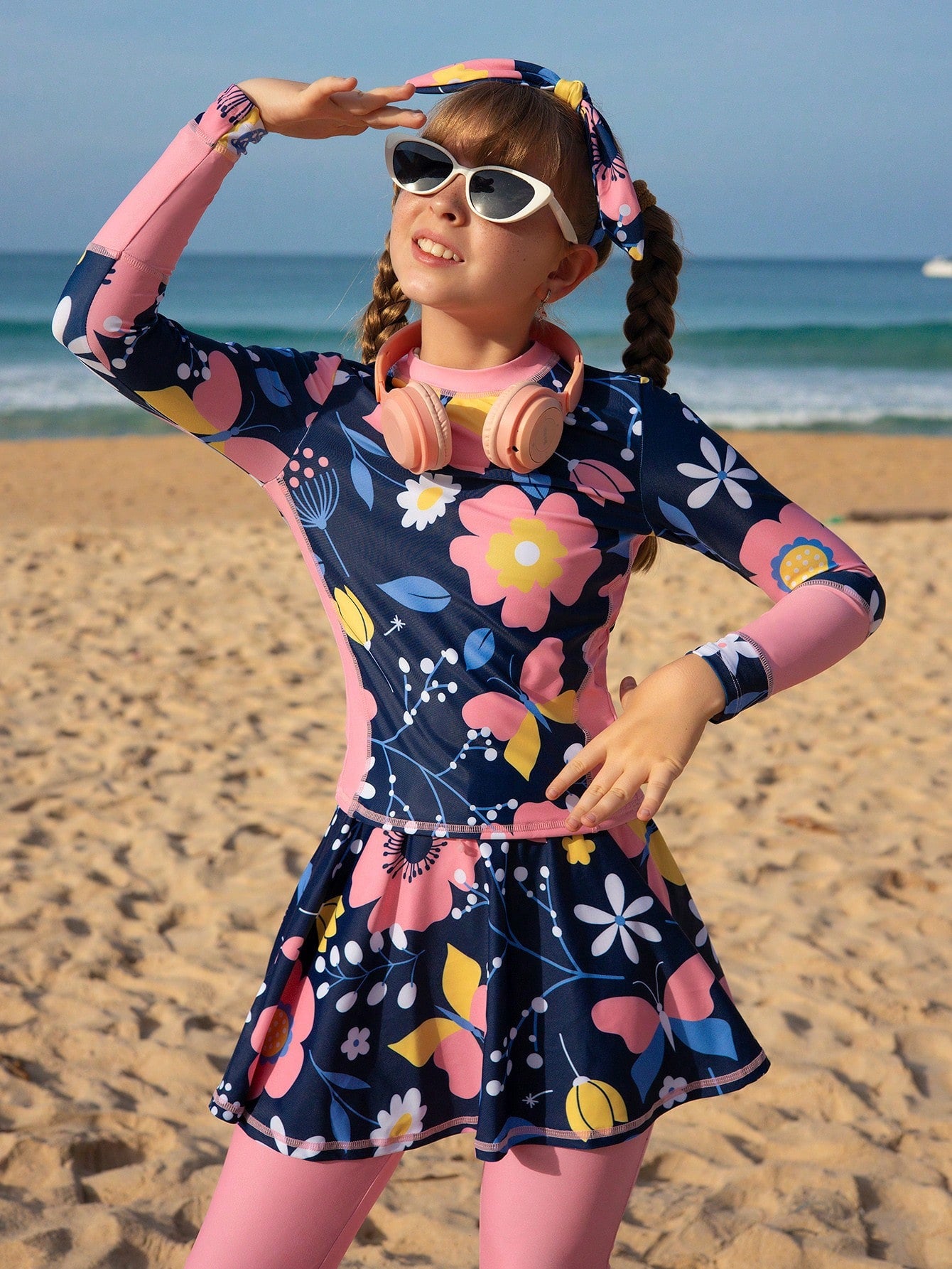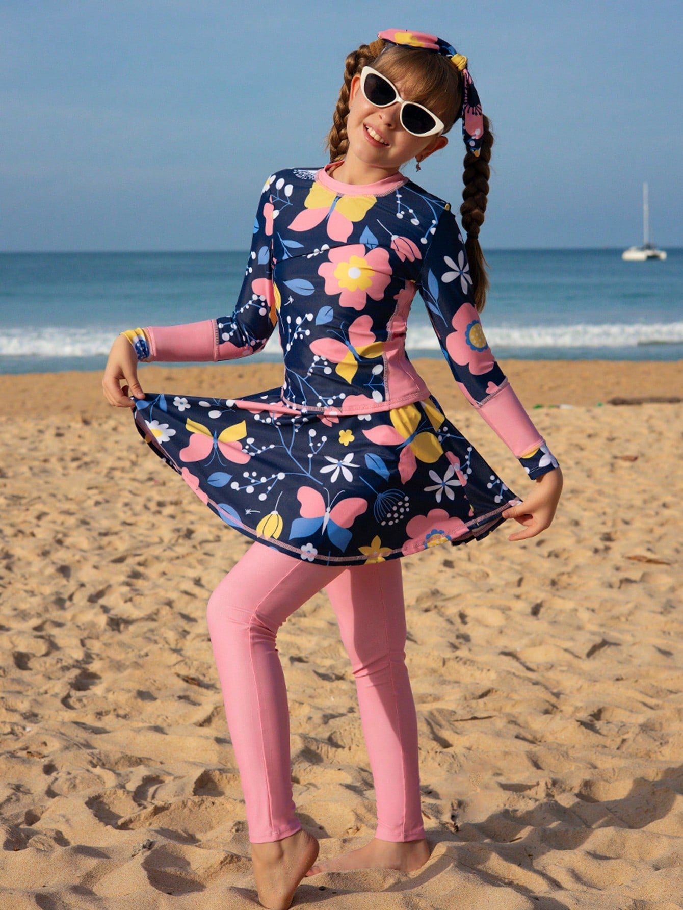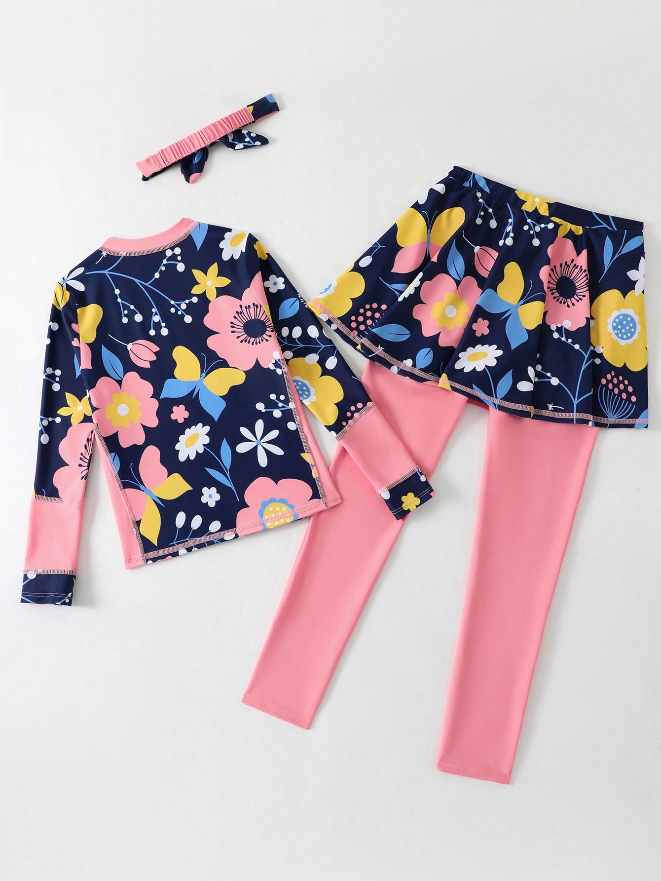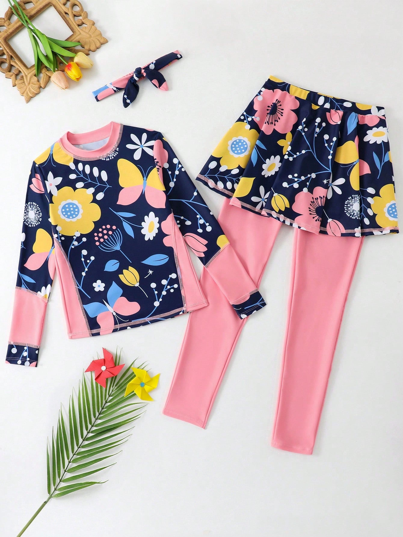 kids Tween Girl Adjustable Suspender Bikini Top With Headband