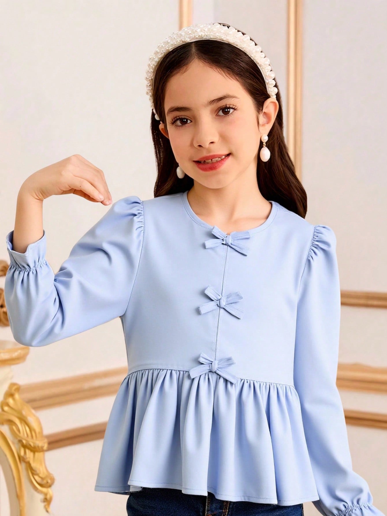 Tween Girl' Blue & White Striped Casual Versatile Shirt