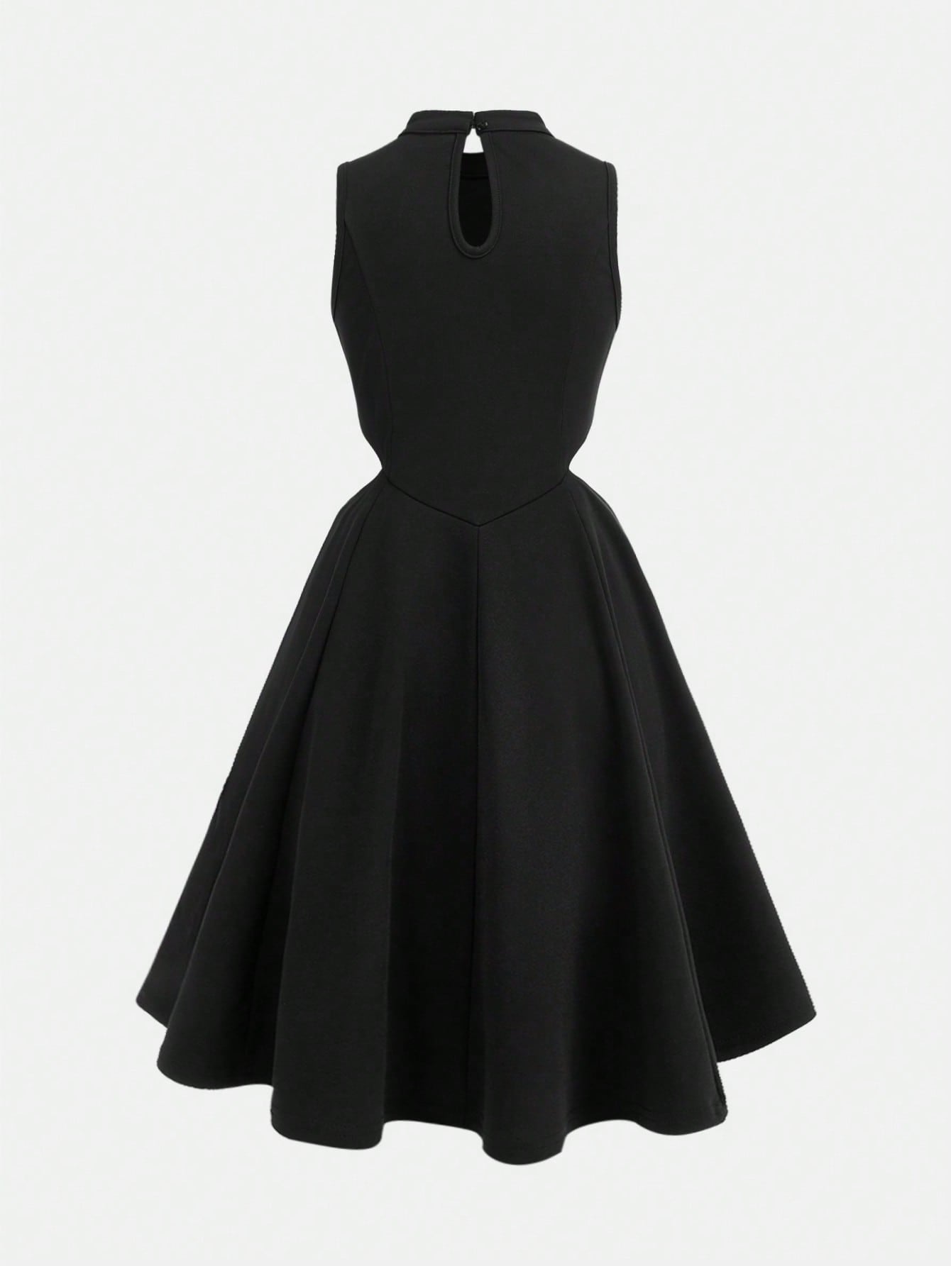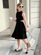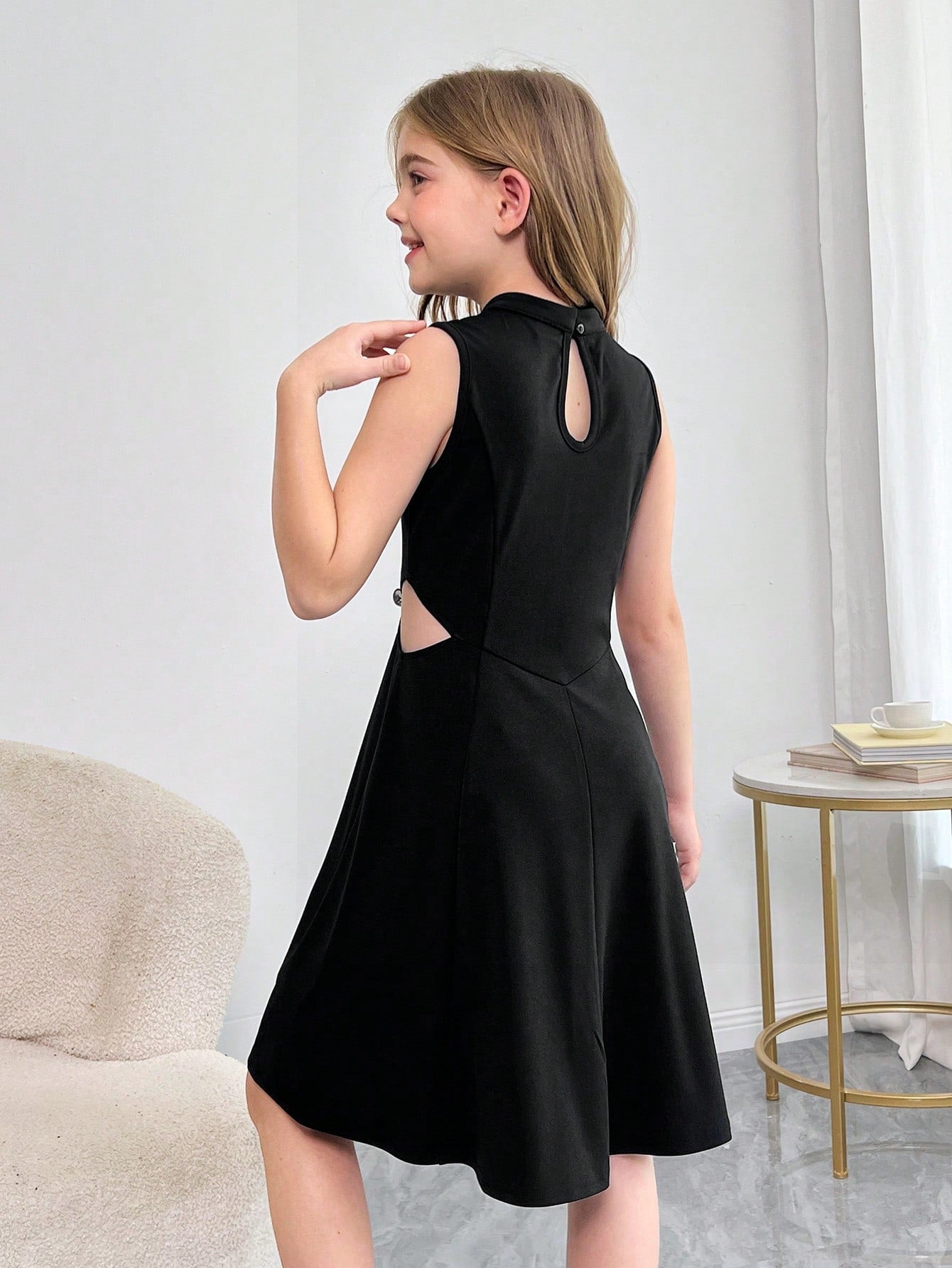 Tween Girl Casual Elegant Split Waist Sleeveless Dress With Stand Collar, Mommy And Me Matching Outfit