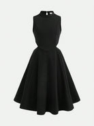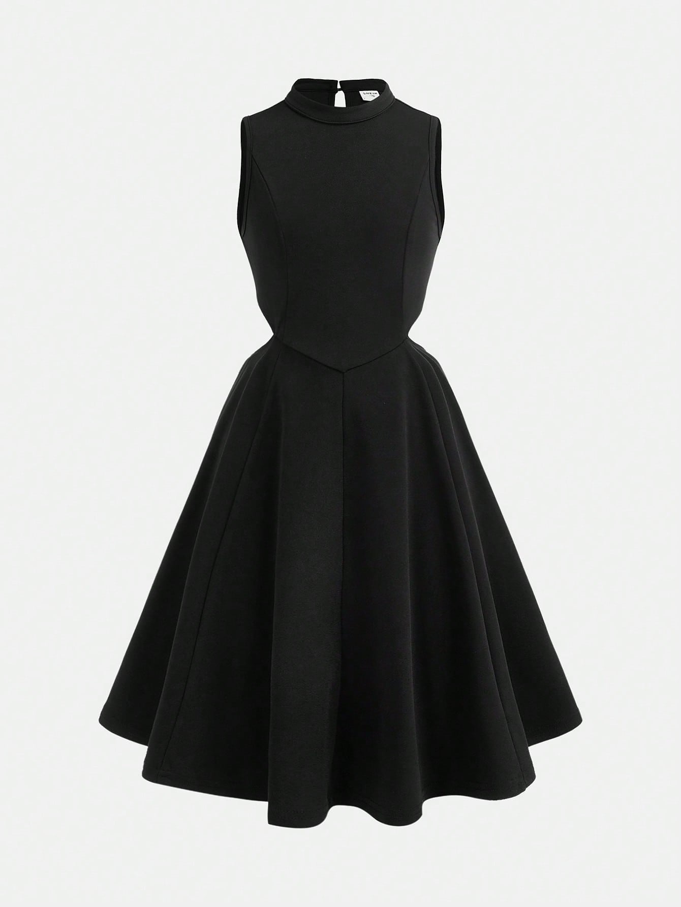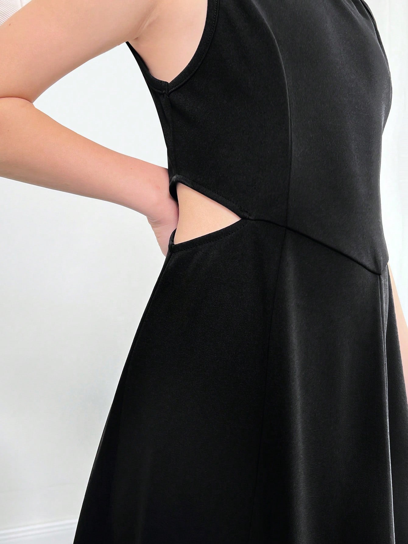 فستان أنيق كاجوال بدون أكمام بخصر منقسم وقبة قائمة للفتيات المراهقات، ملابس متناسقة للأمهات