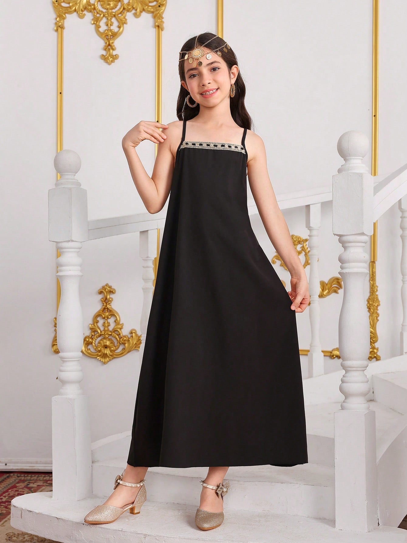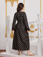 Tween Girls' Fashionable Gold Foil Print Jacket And Long Skirt Set