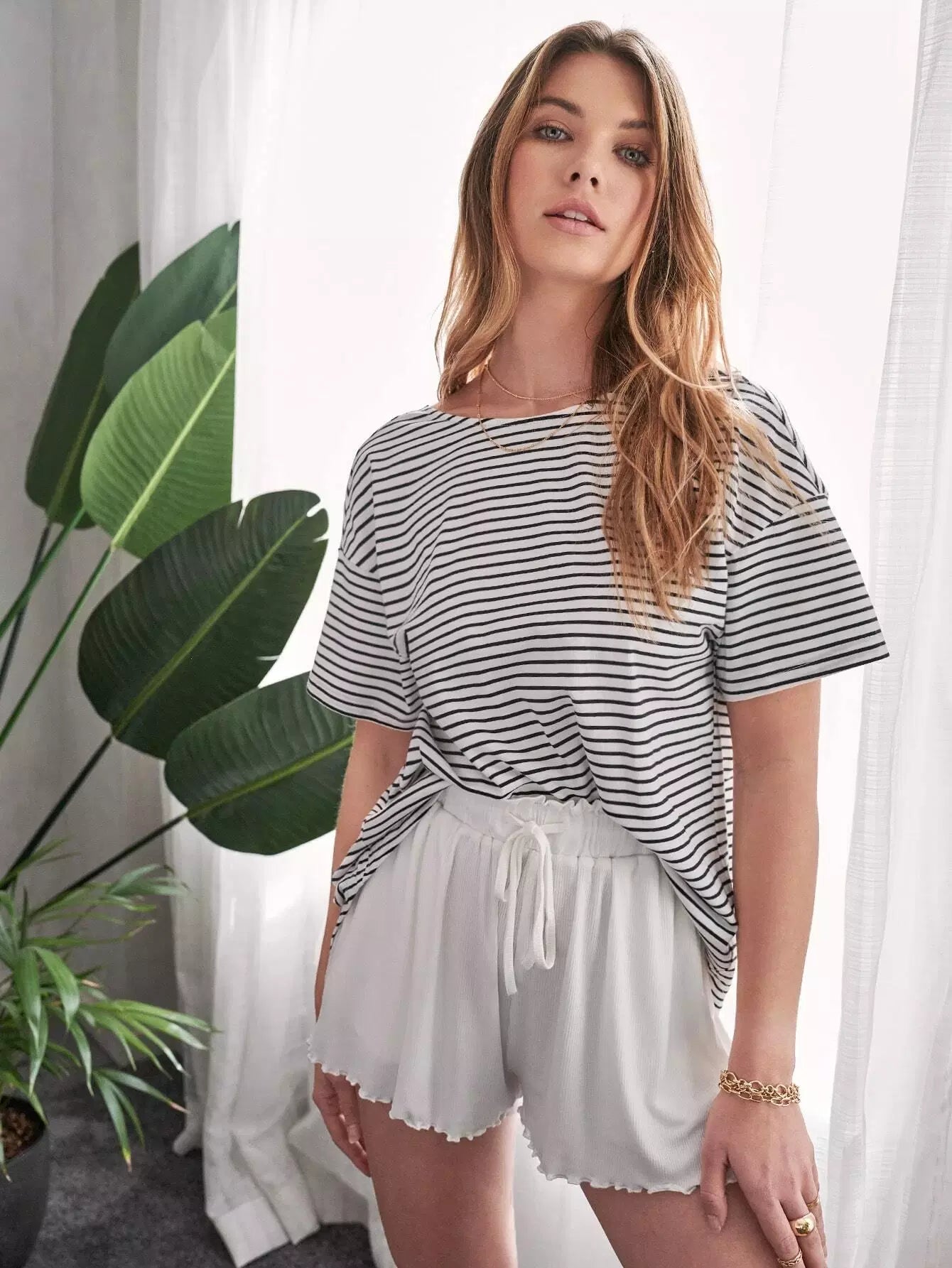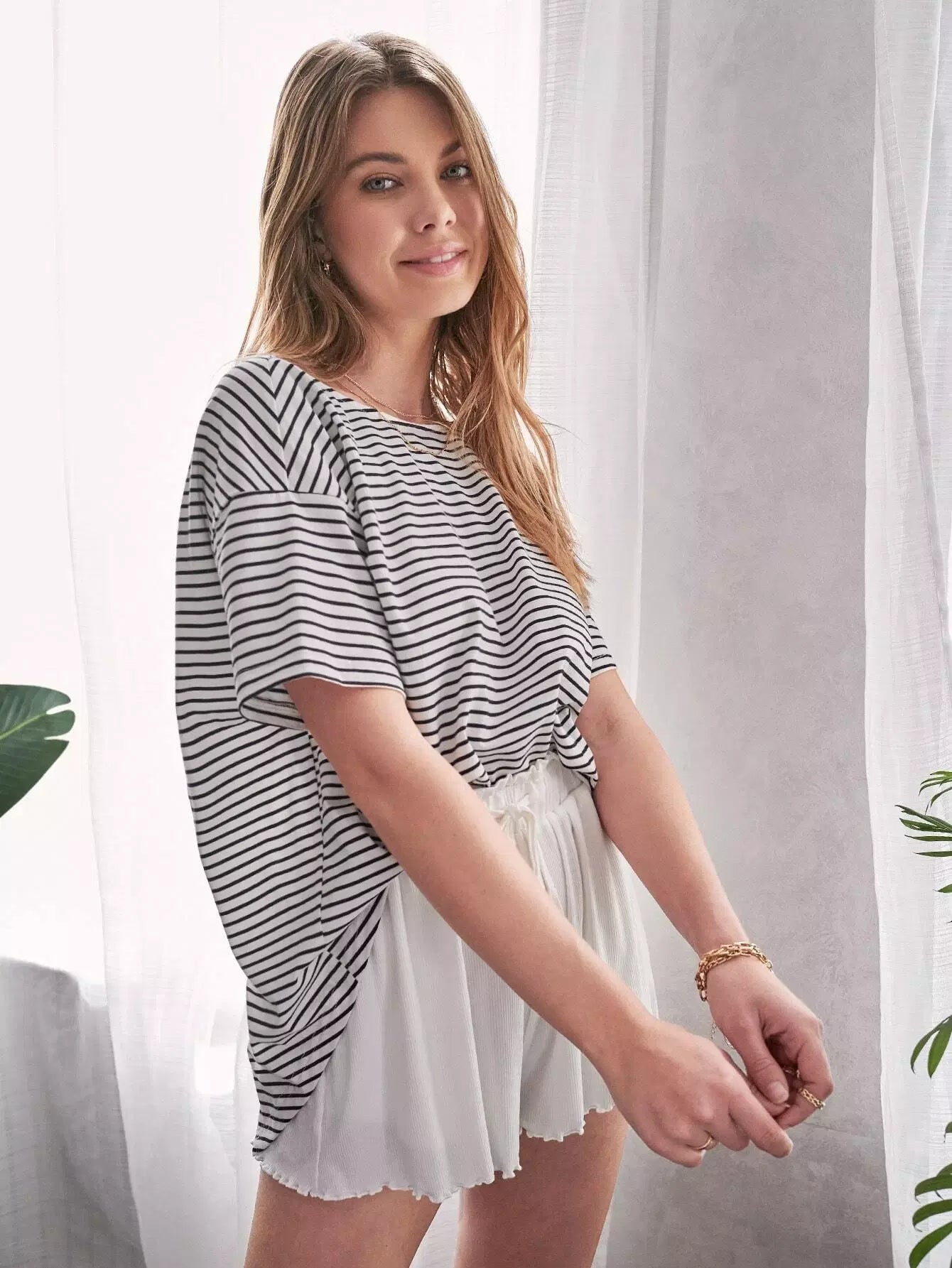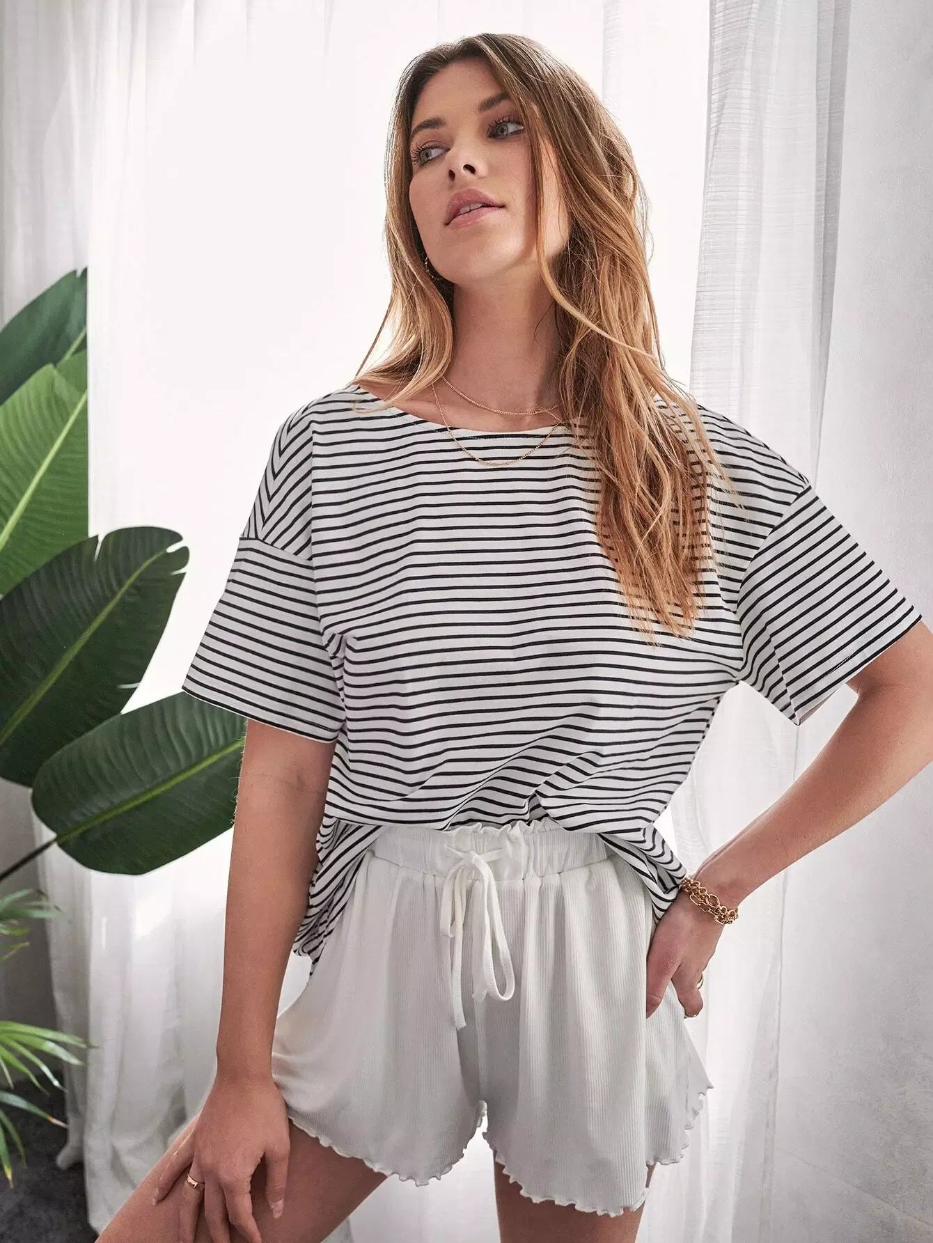 بلوزة مخططة بلا أكمام ملتوية الظهر
