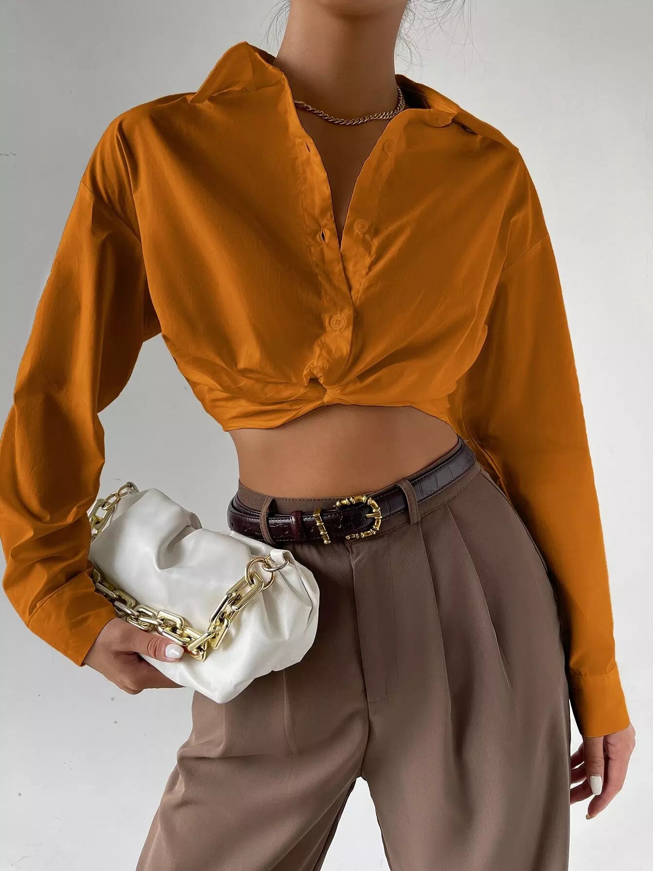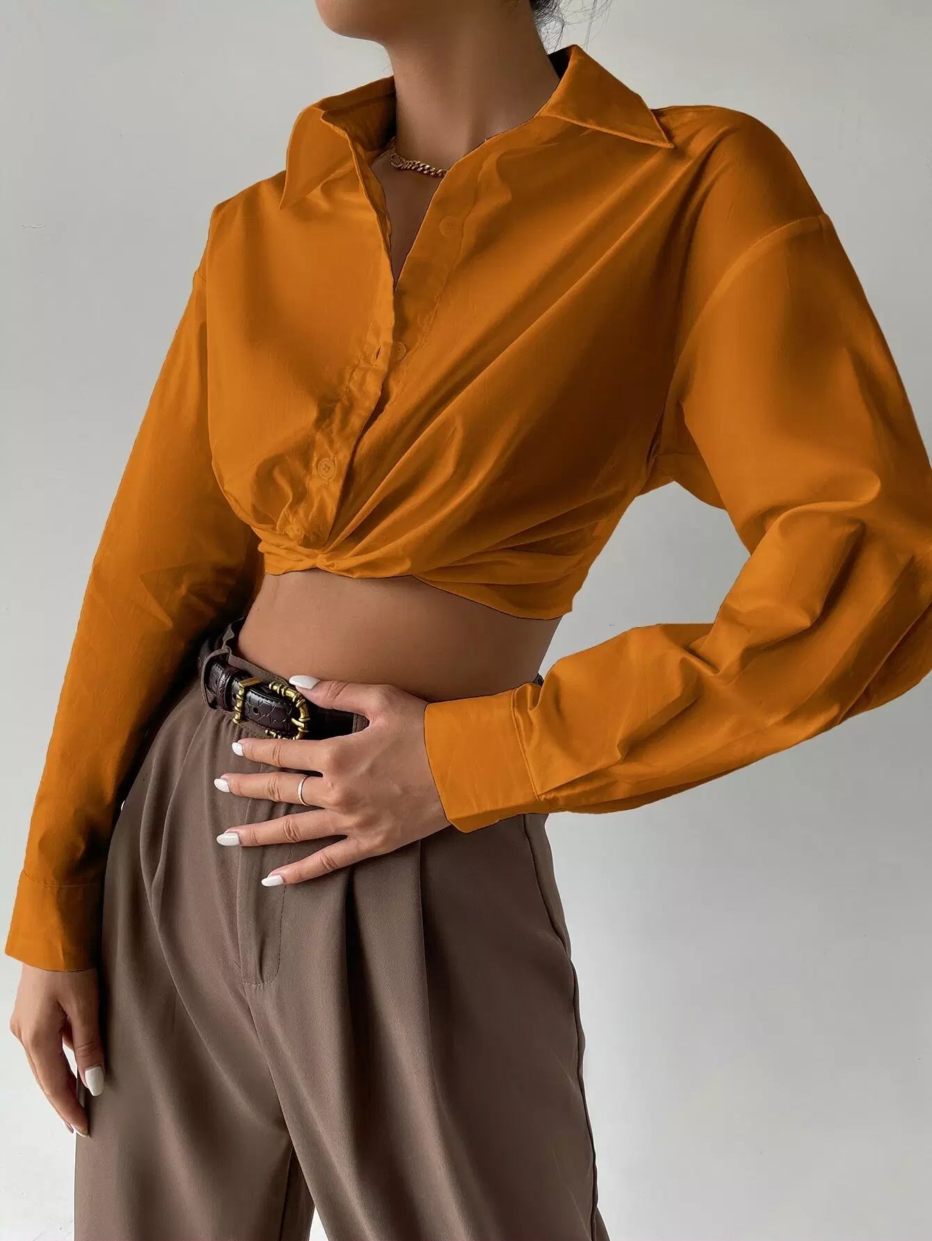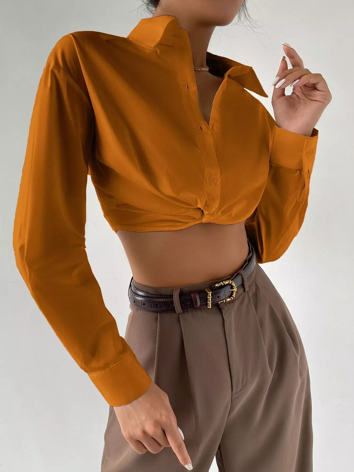 قميص قصير ذو حافة ملتوية بأزرار فوق الزر